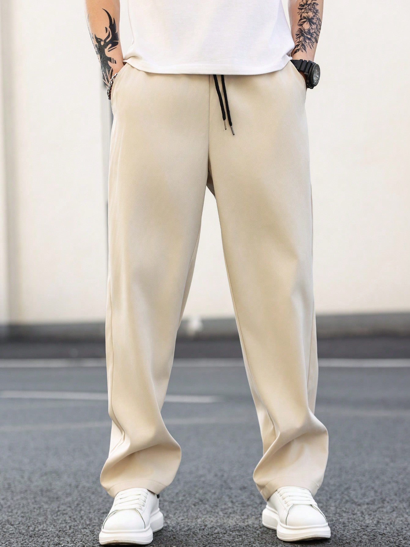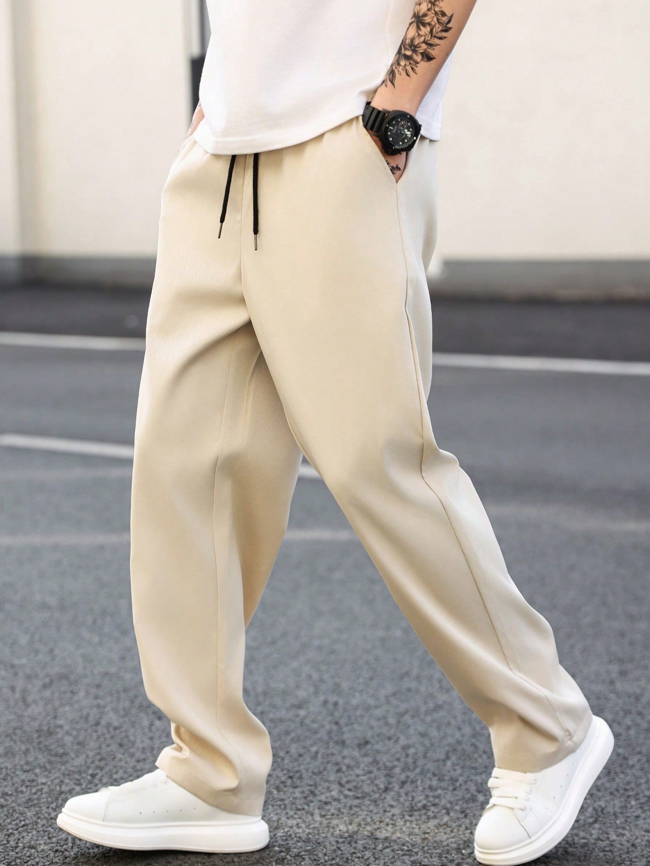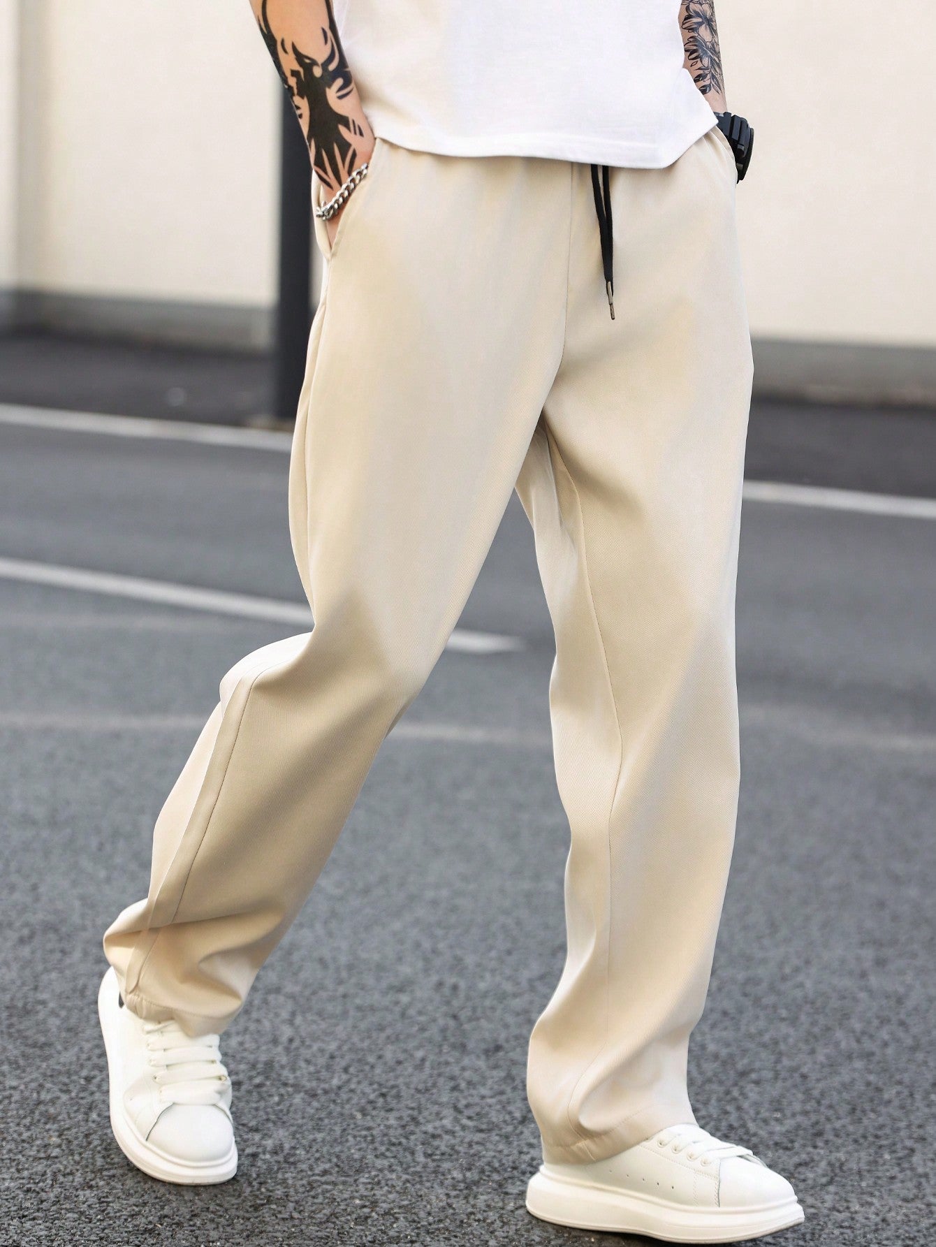 Manfinity Homme Men's Solid Color Straight Leg Pants