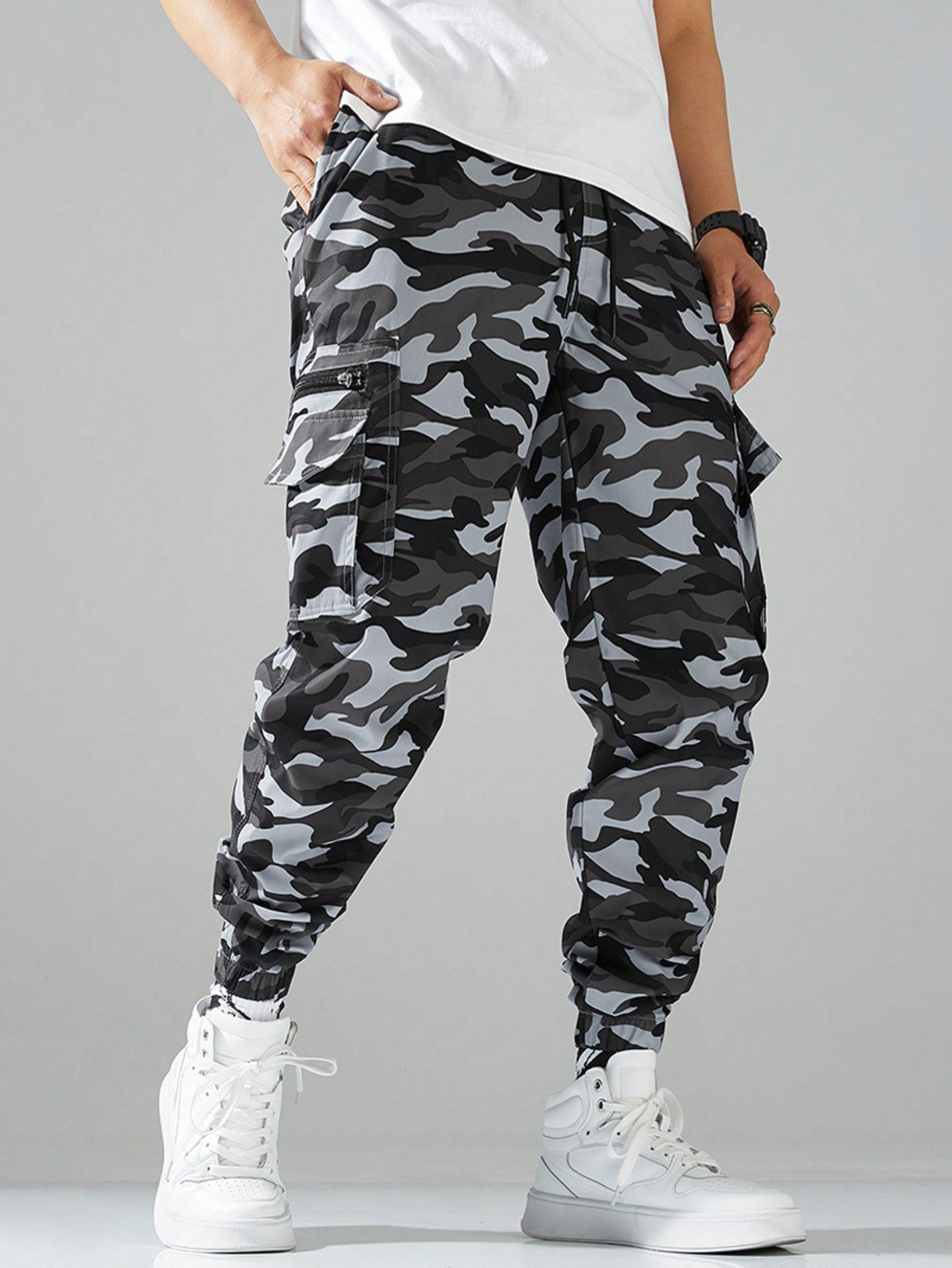 Manfinity Hypemode Loose Fit Men's Camouflage Print Cargo Jogger Pants