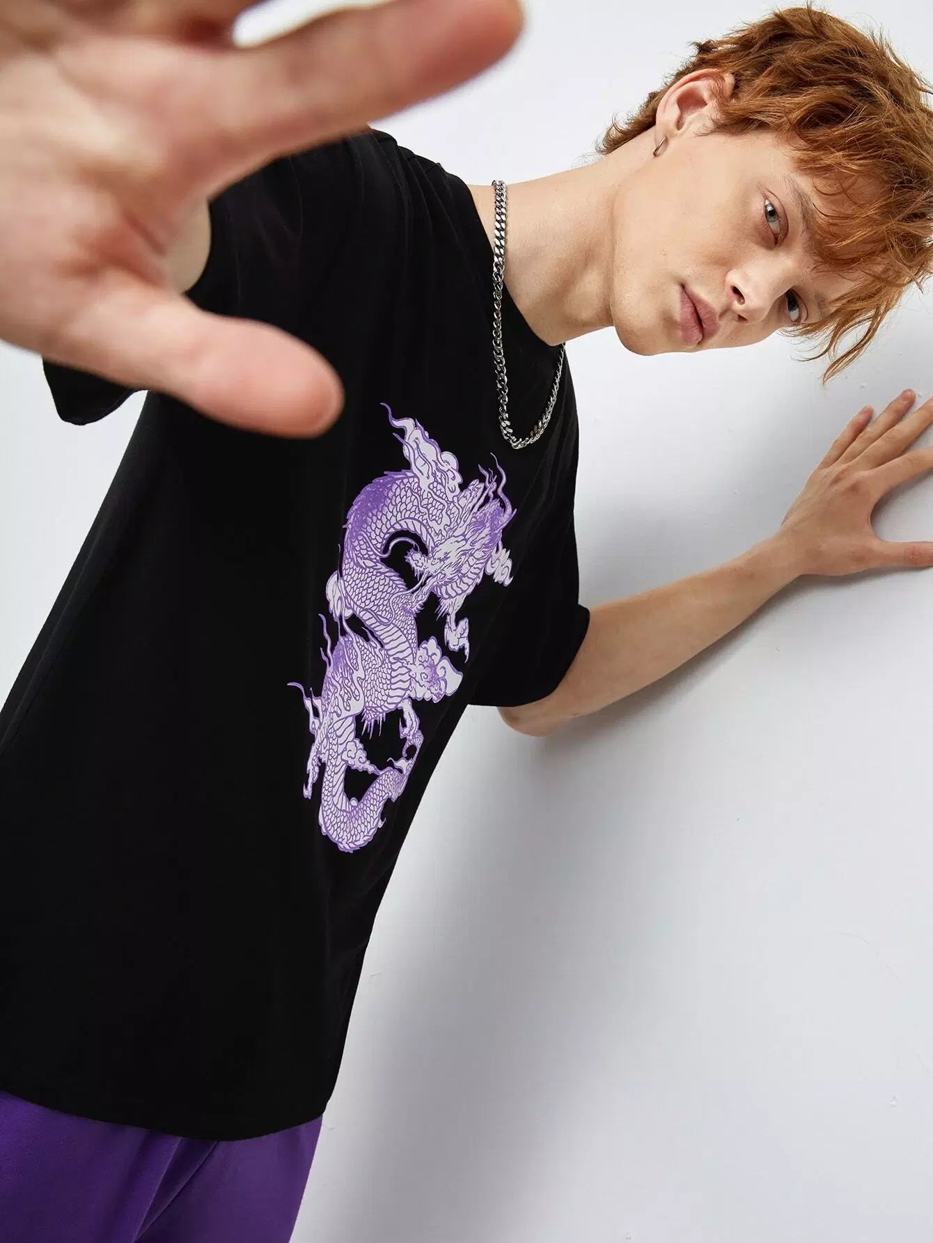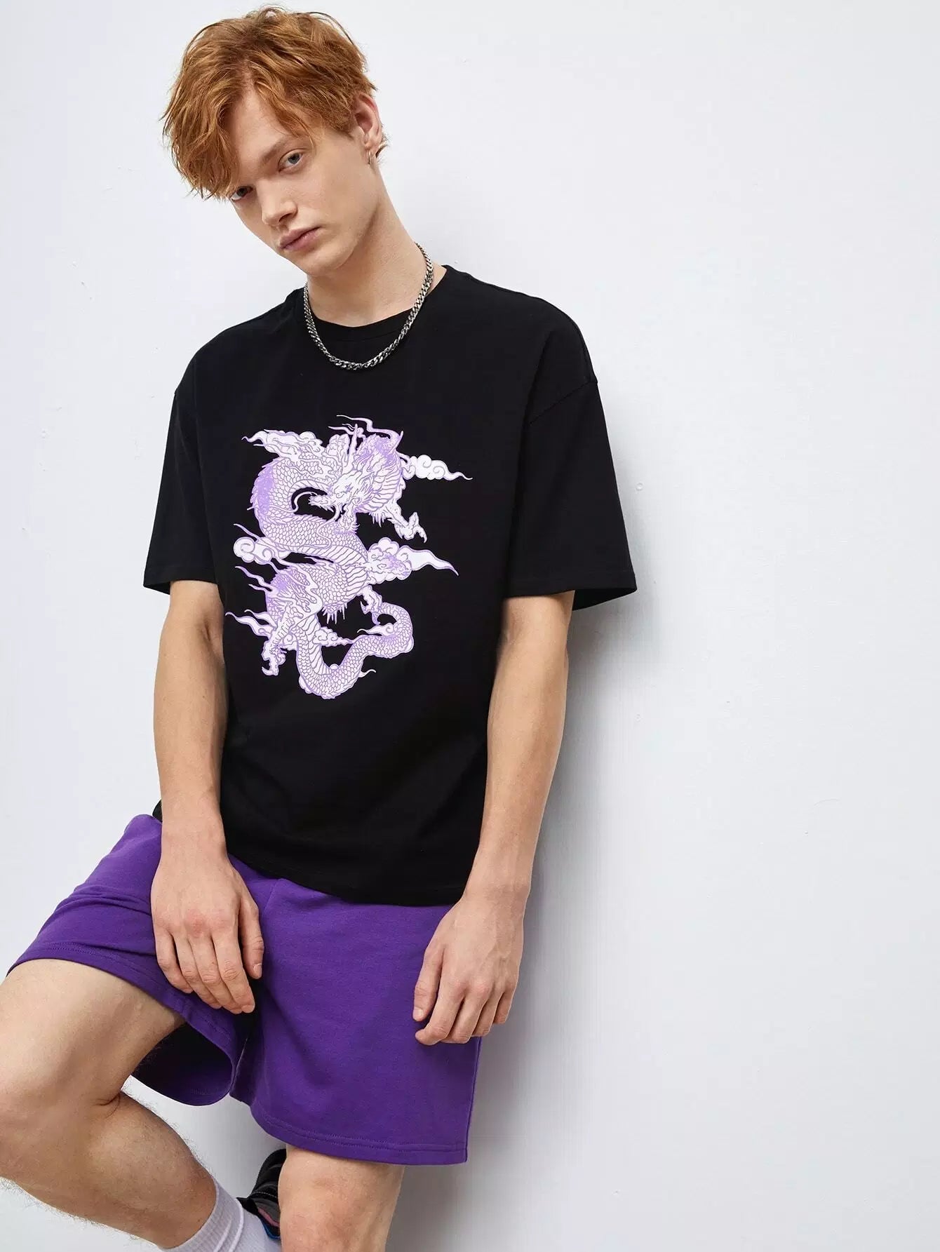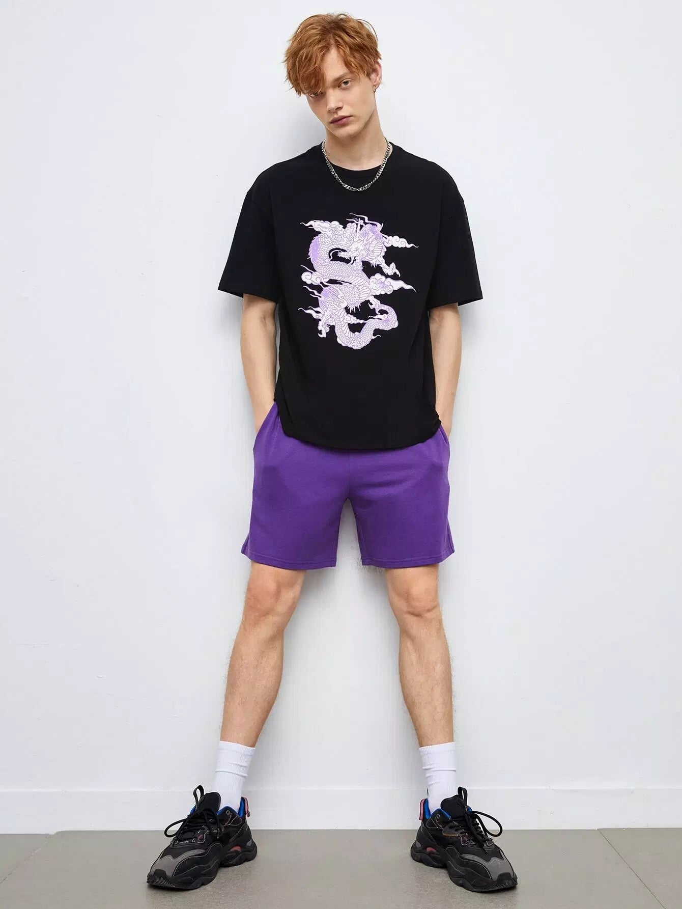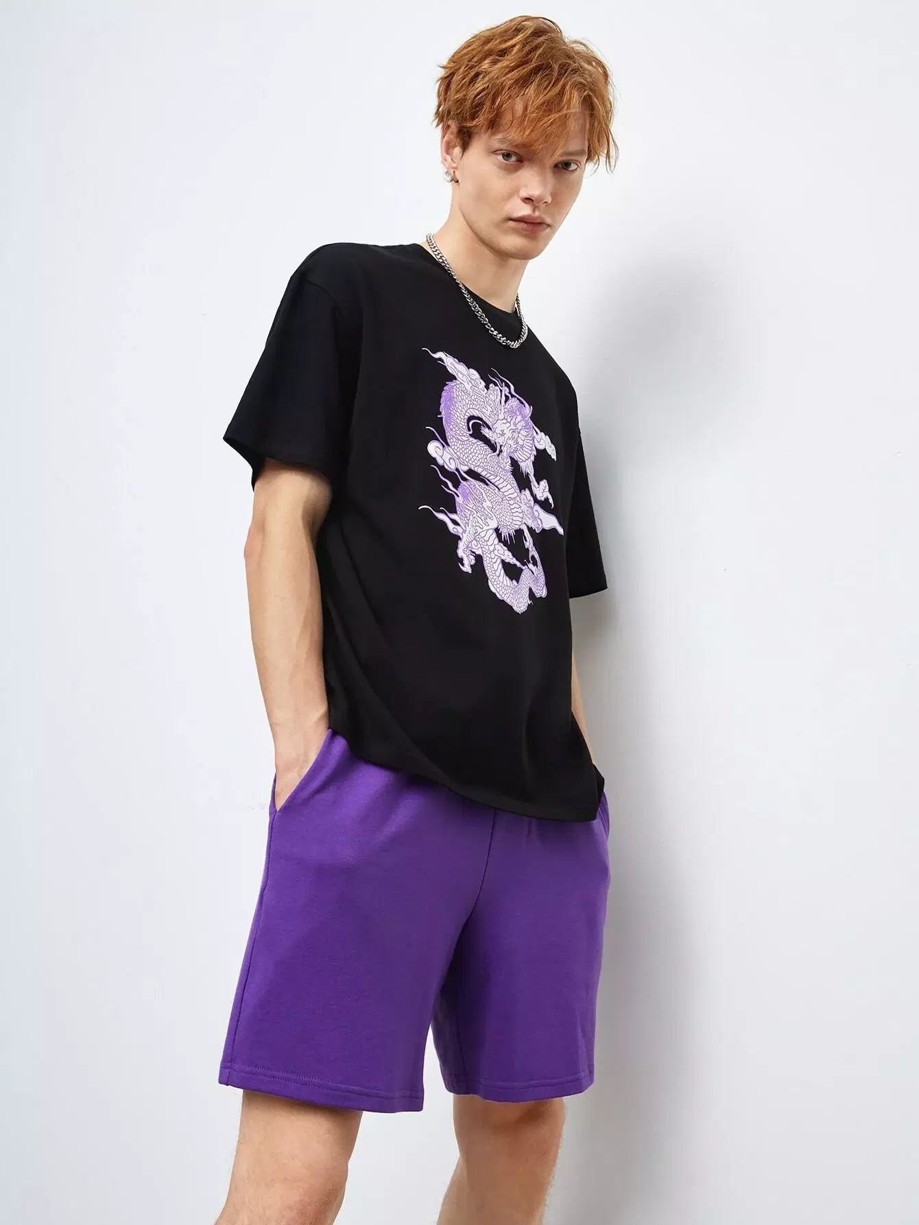 Men Chinese Dragon Graphic Tee & Slant Pocket Shorts