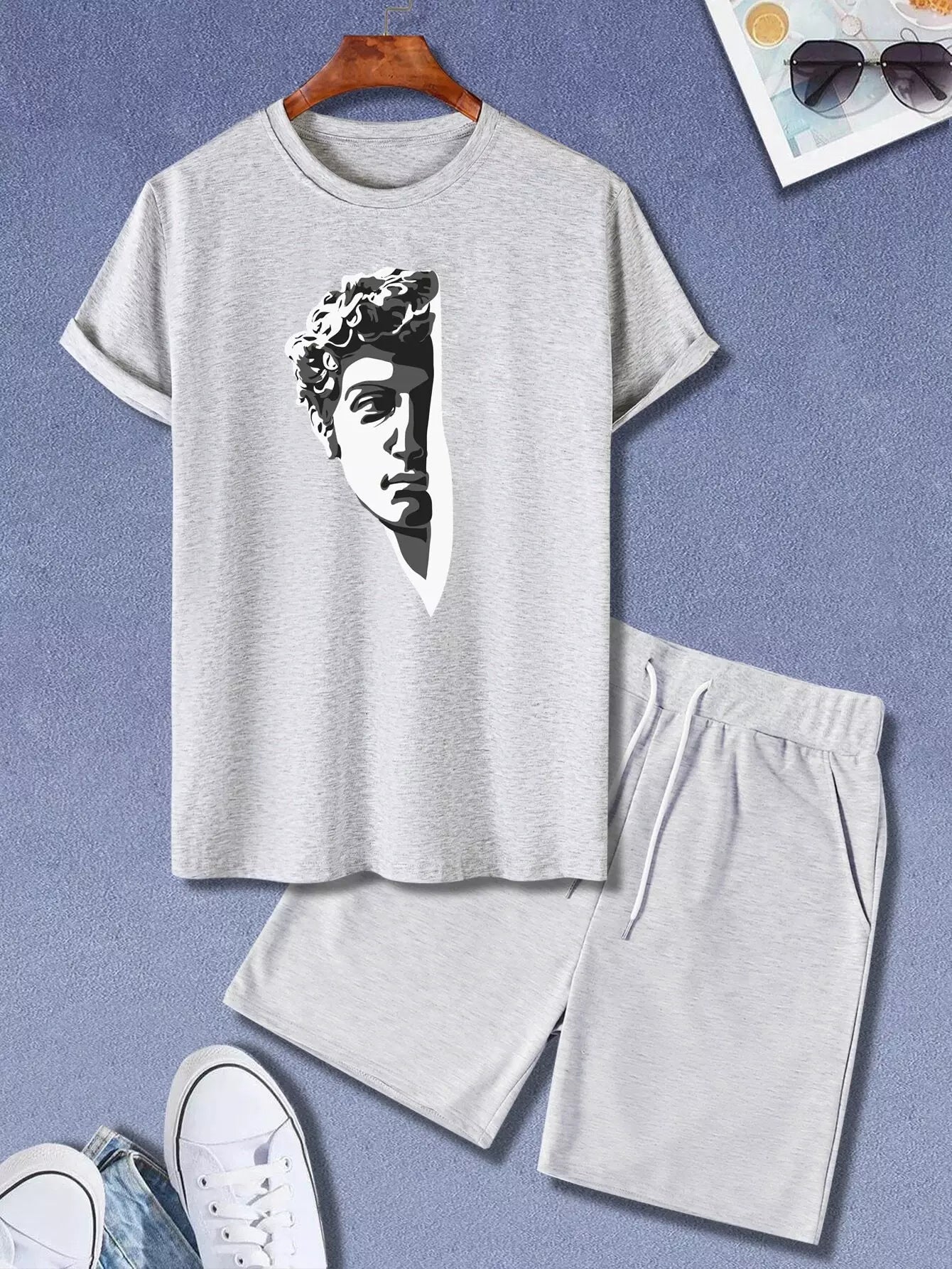 Men Sculpture Print Tee & Track Shorts