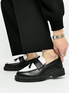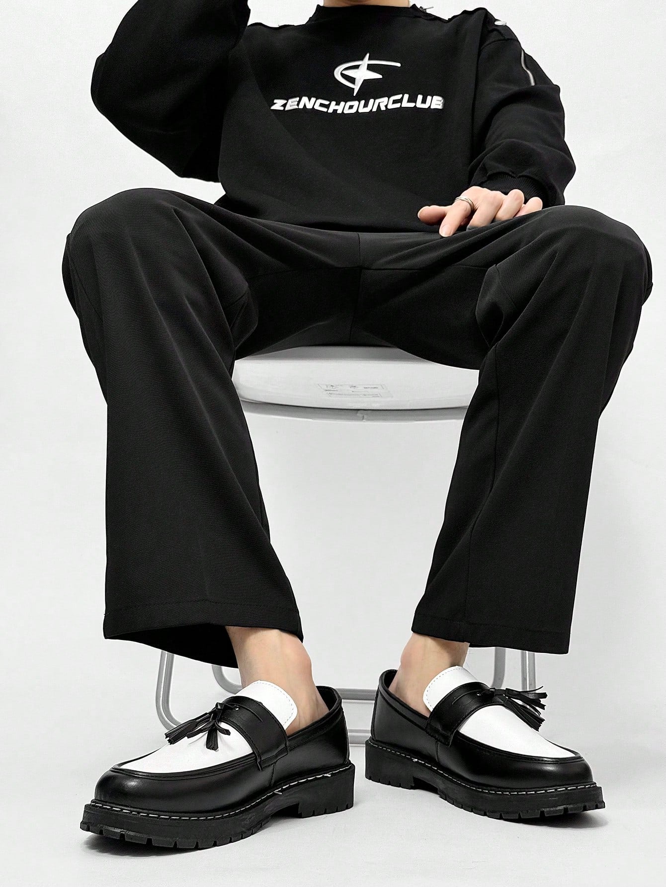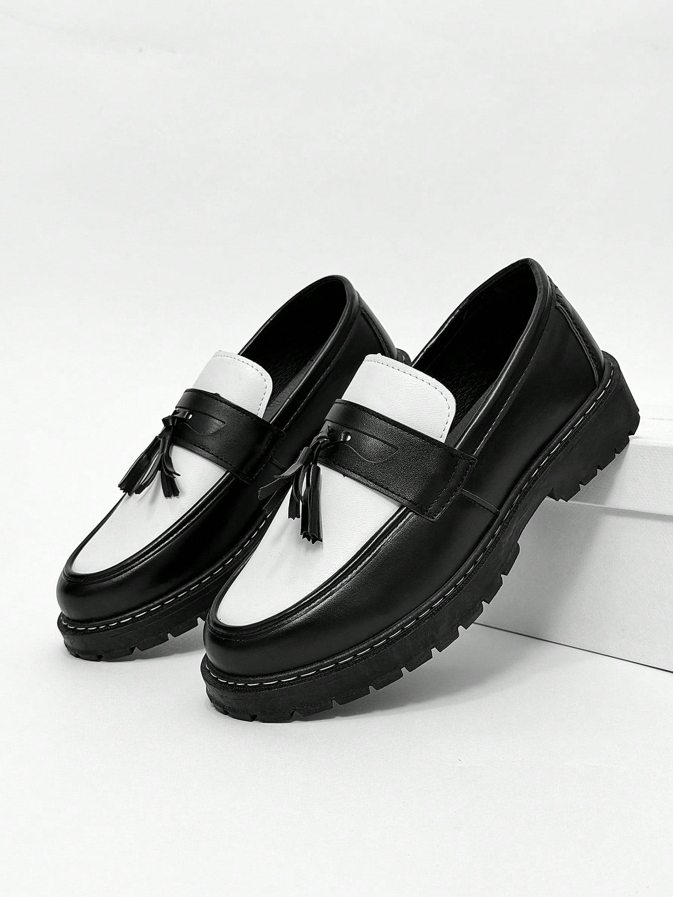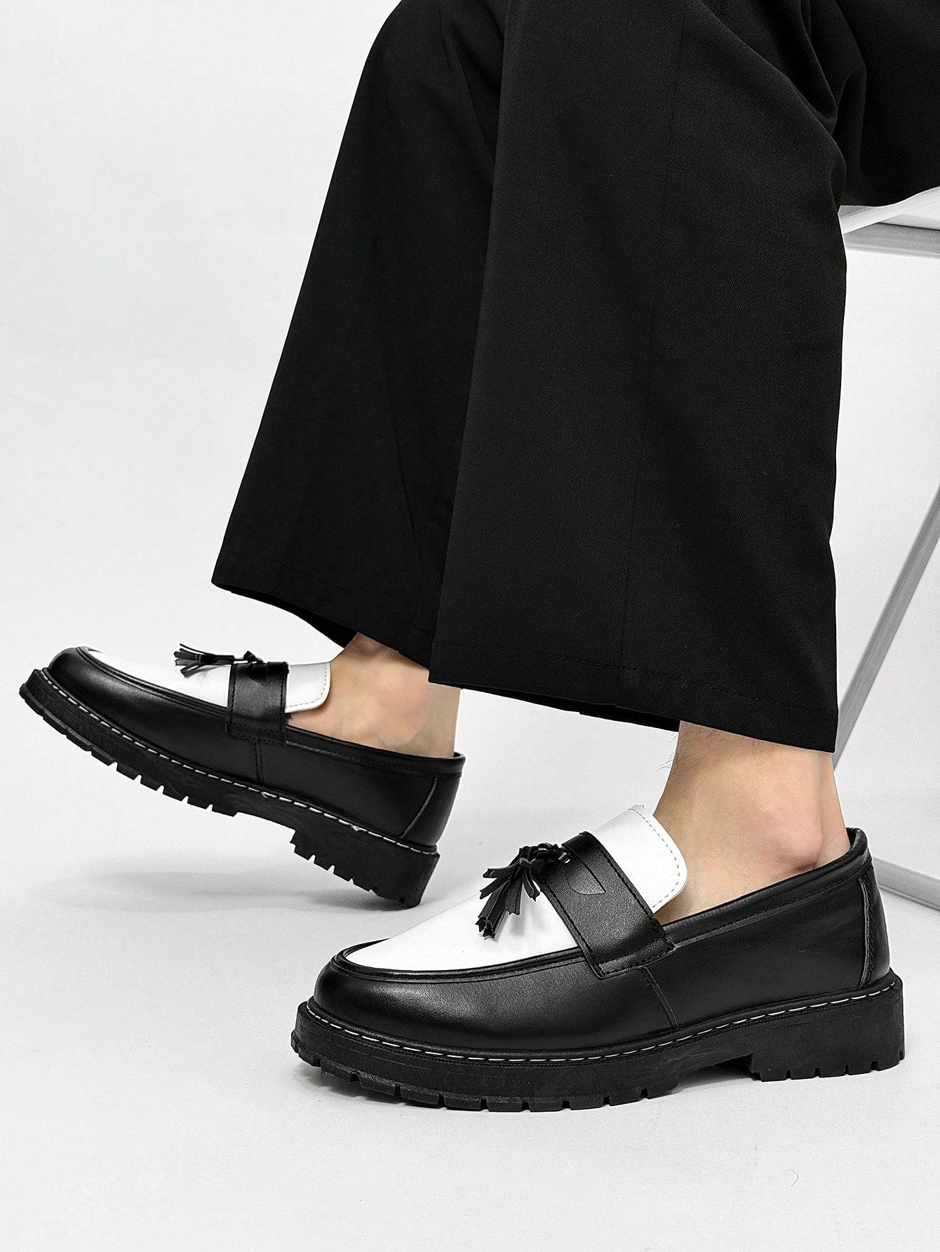 Men's Casual Thick Sole Slip-On Increased Height Plain Black Leather Shoes