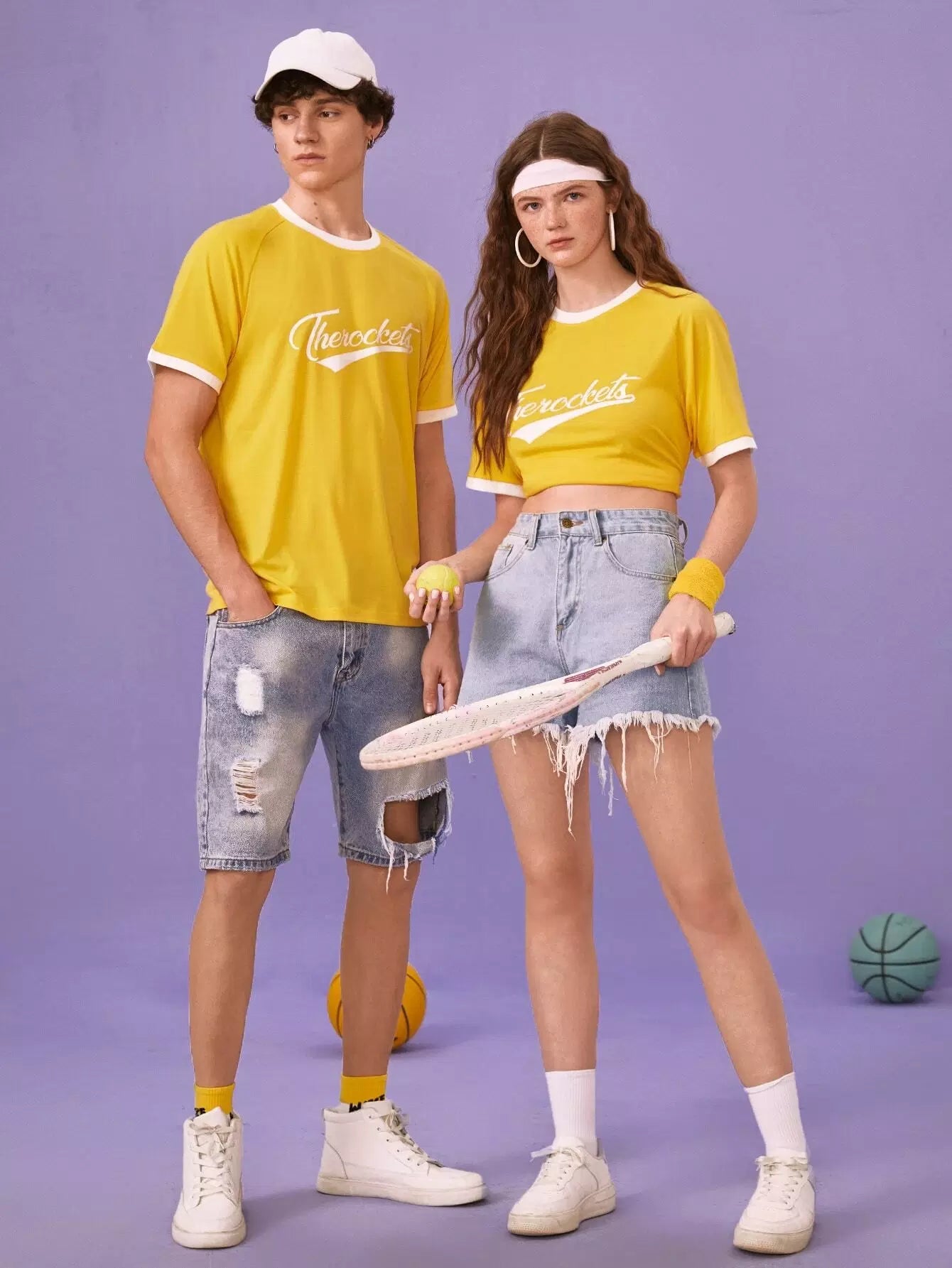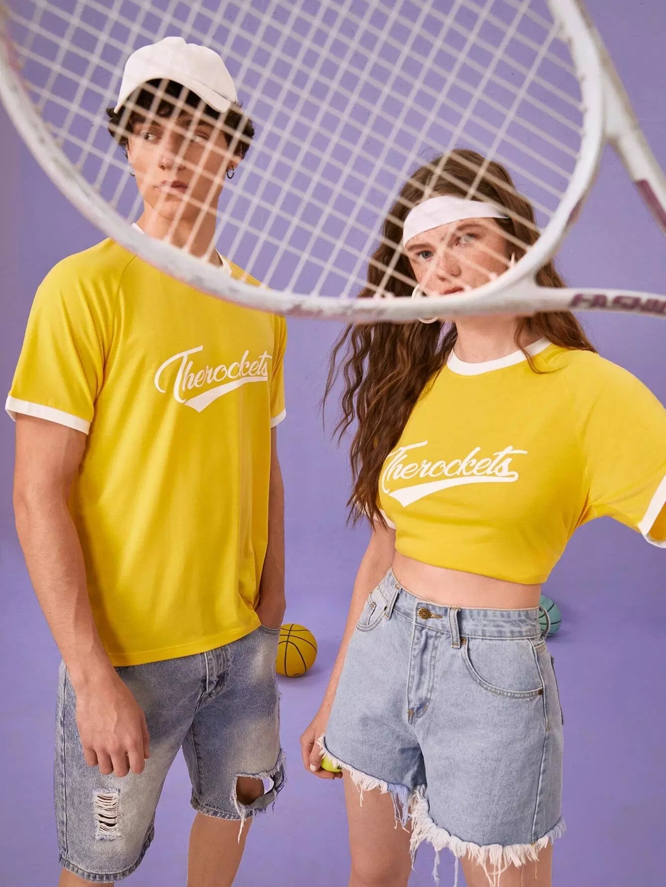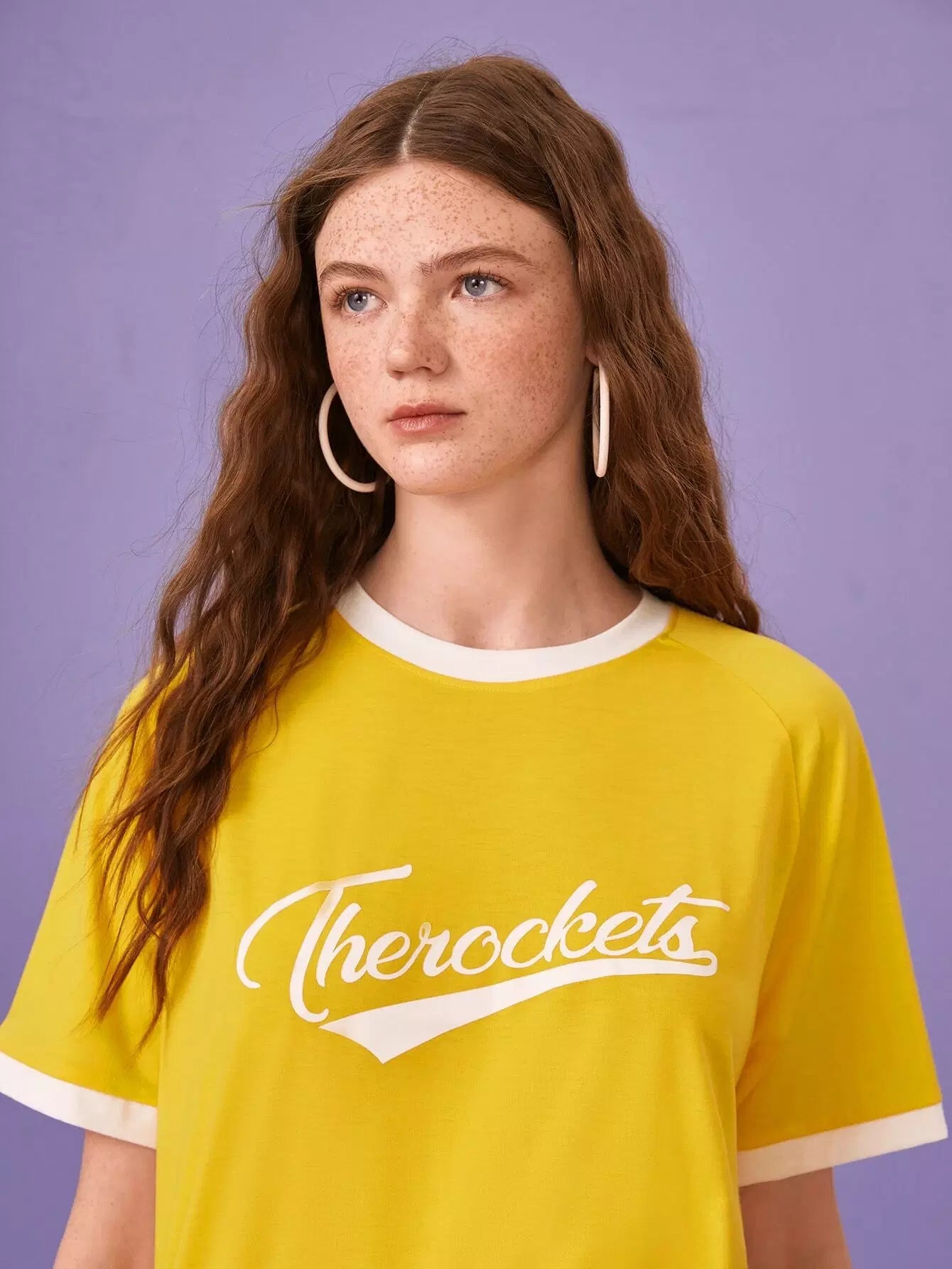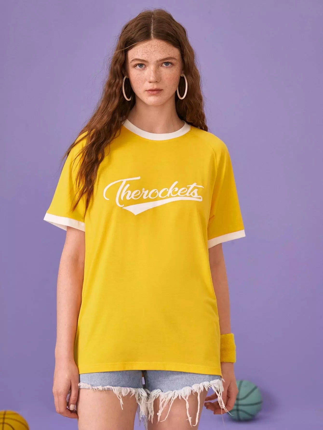 1pc Letter Graphic Contrast Trim Raglan Sleeve Tee