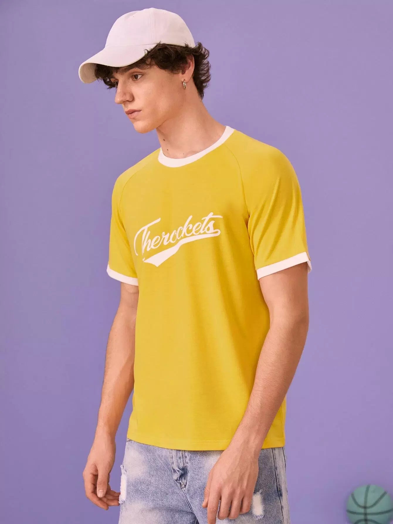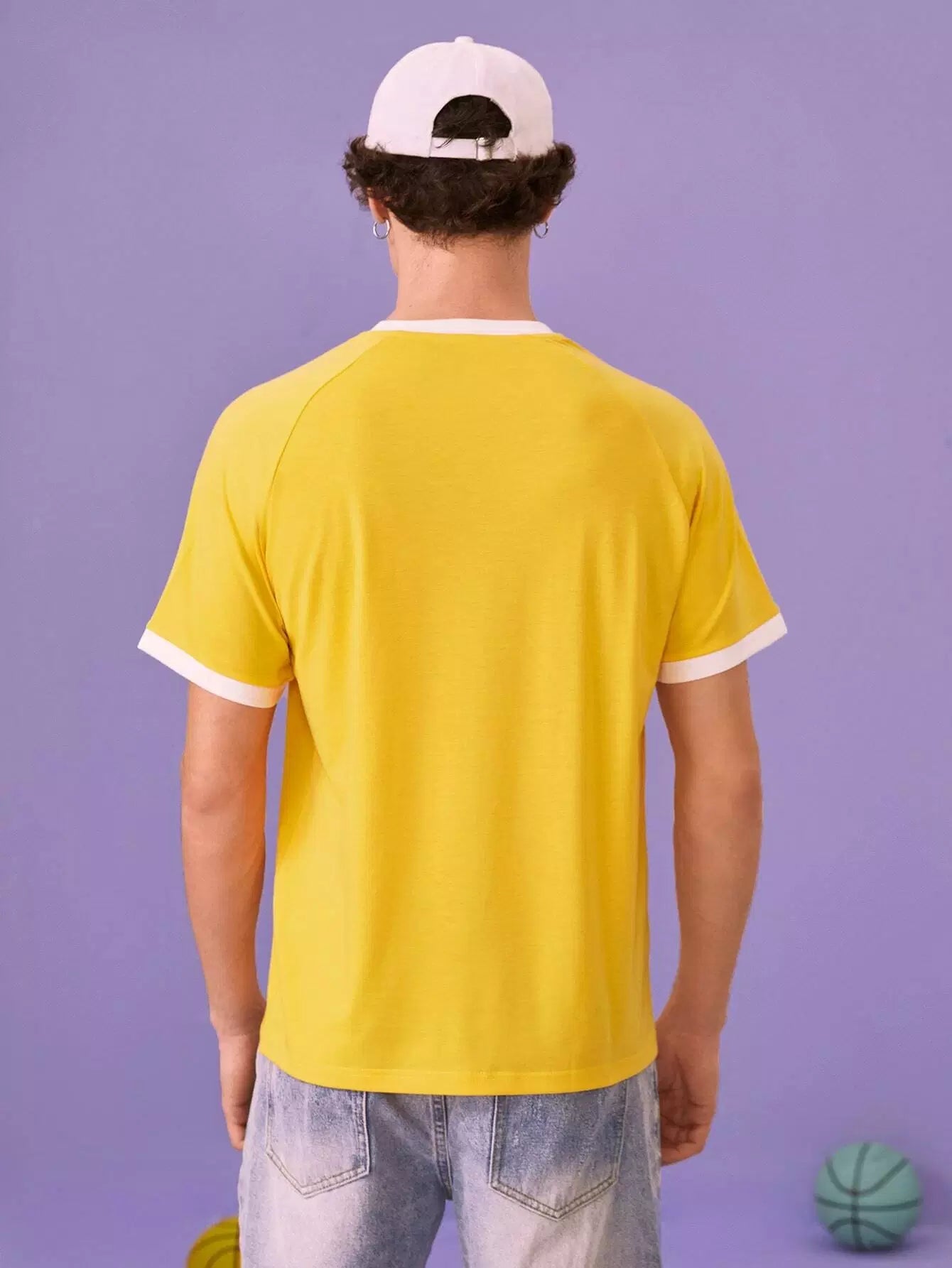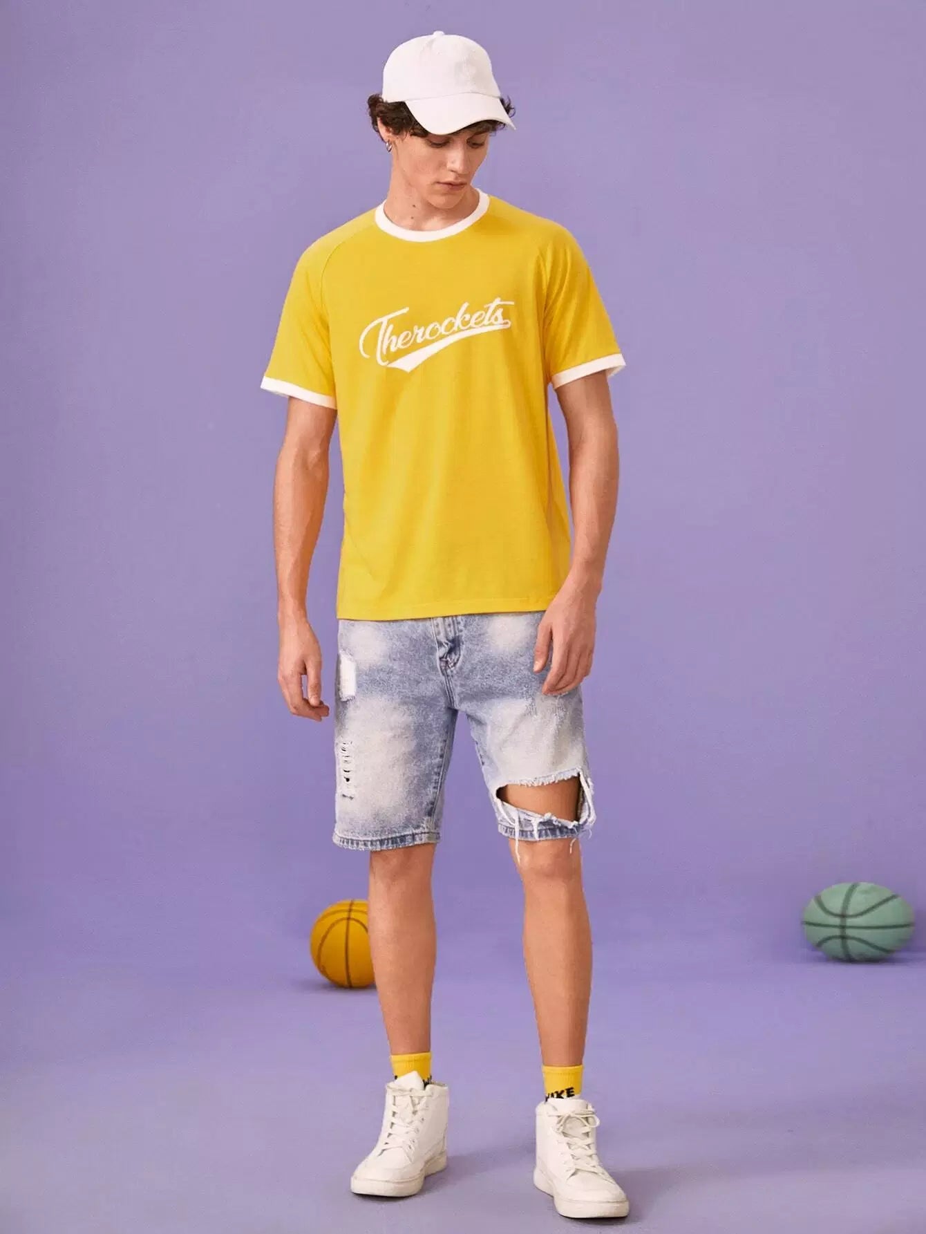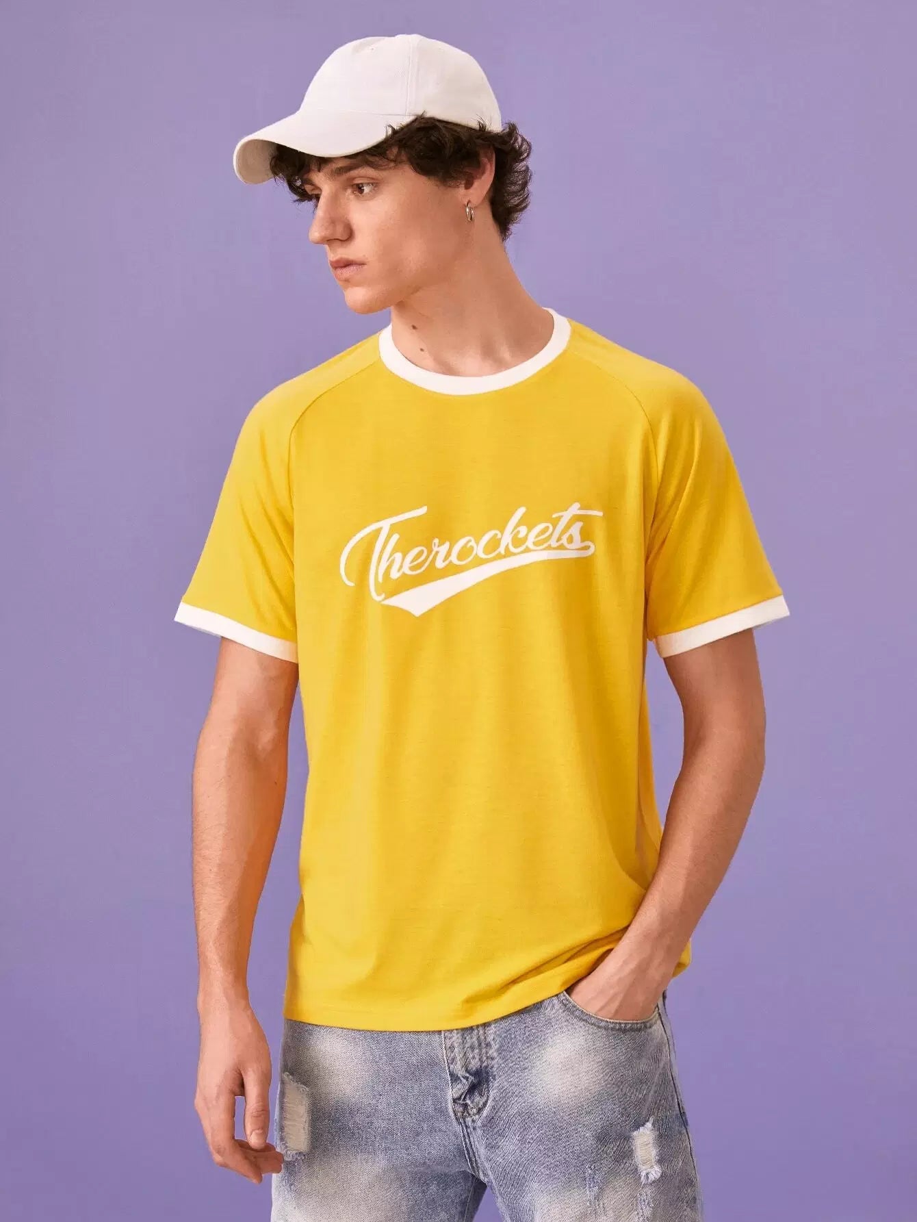 Men - 1pc Letter Graphic Contrast Trim Raglan Sleeve Tee
