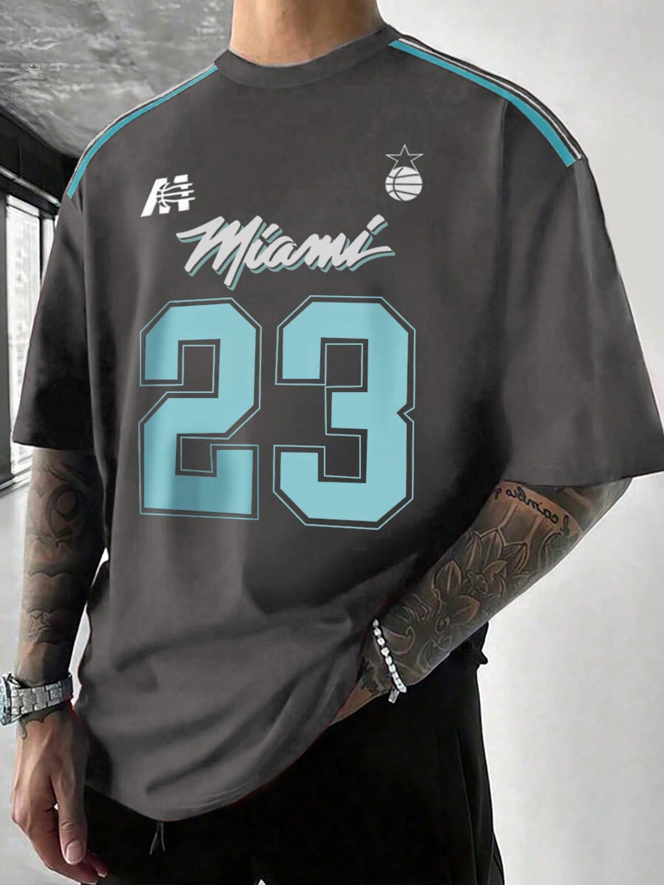 2025 Men's Lightweight High Street Miami Element Basketball Themed Short Sleeve Tee Spring/Summer
