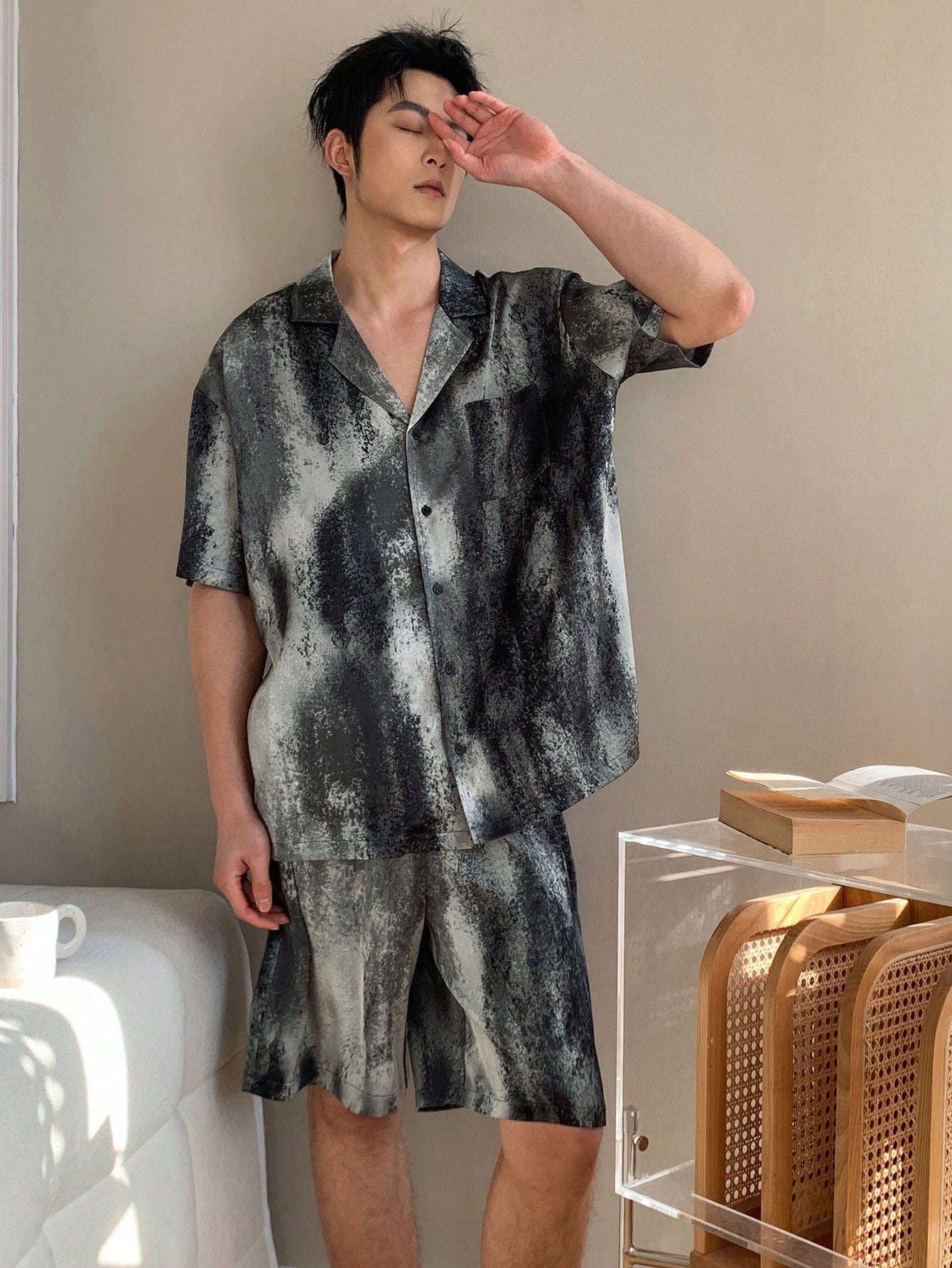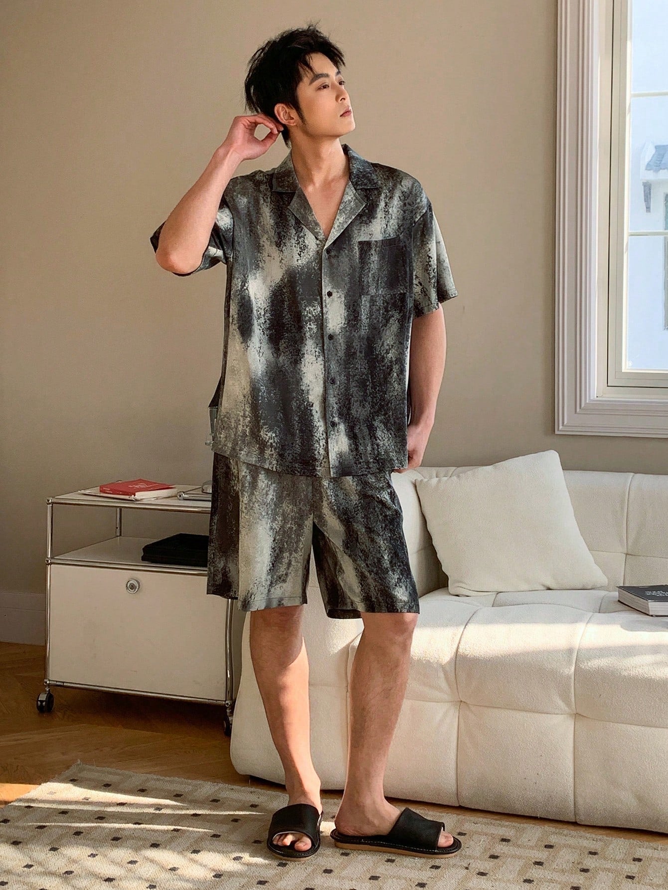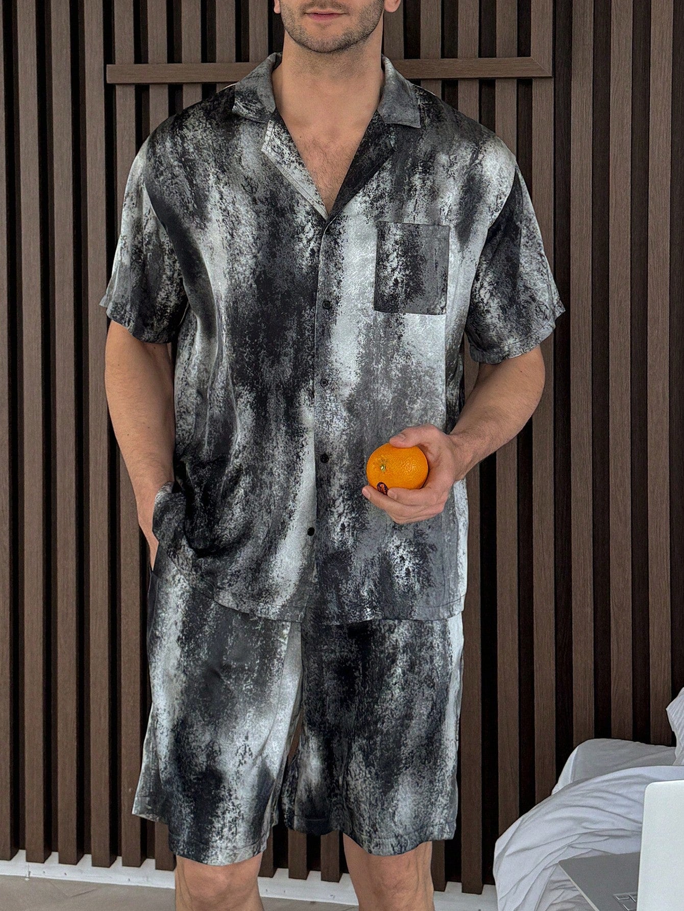 DAZY Tie-Dye Pattern Shirt And Shorts Pajama Set For Men, Summer