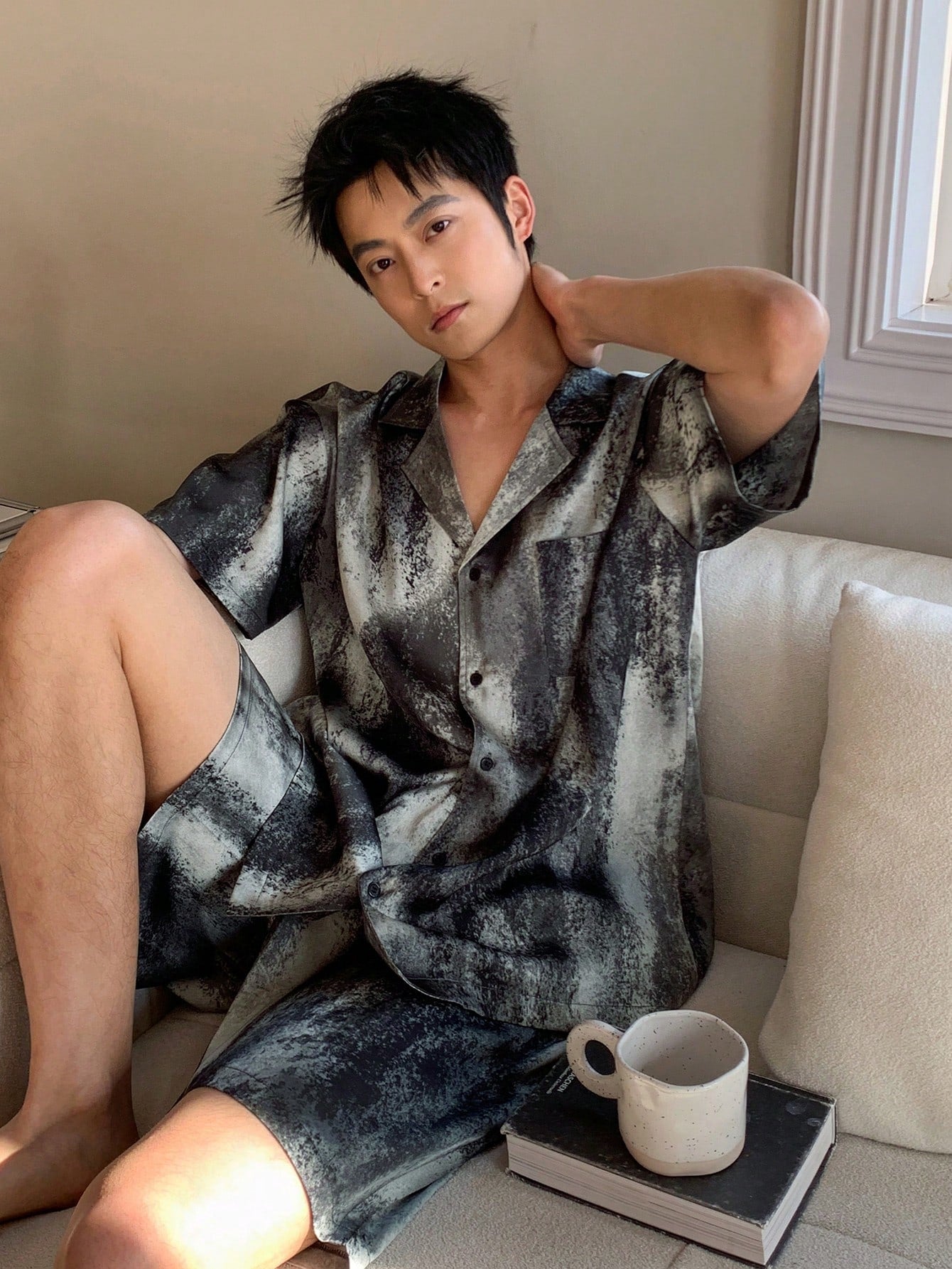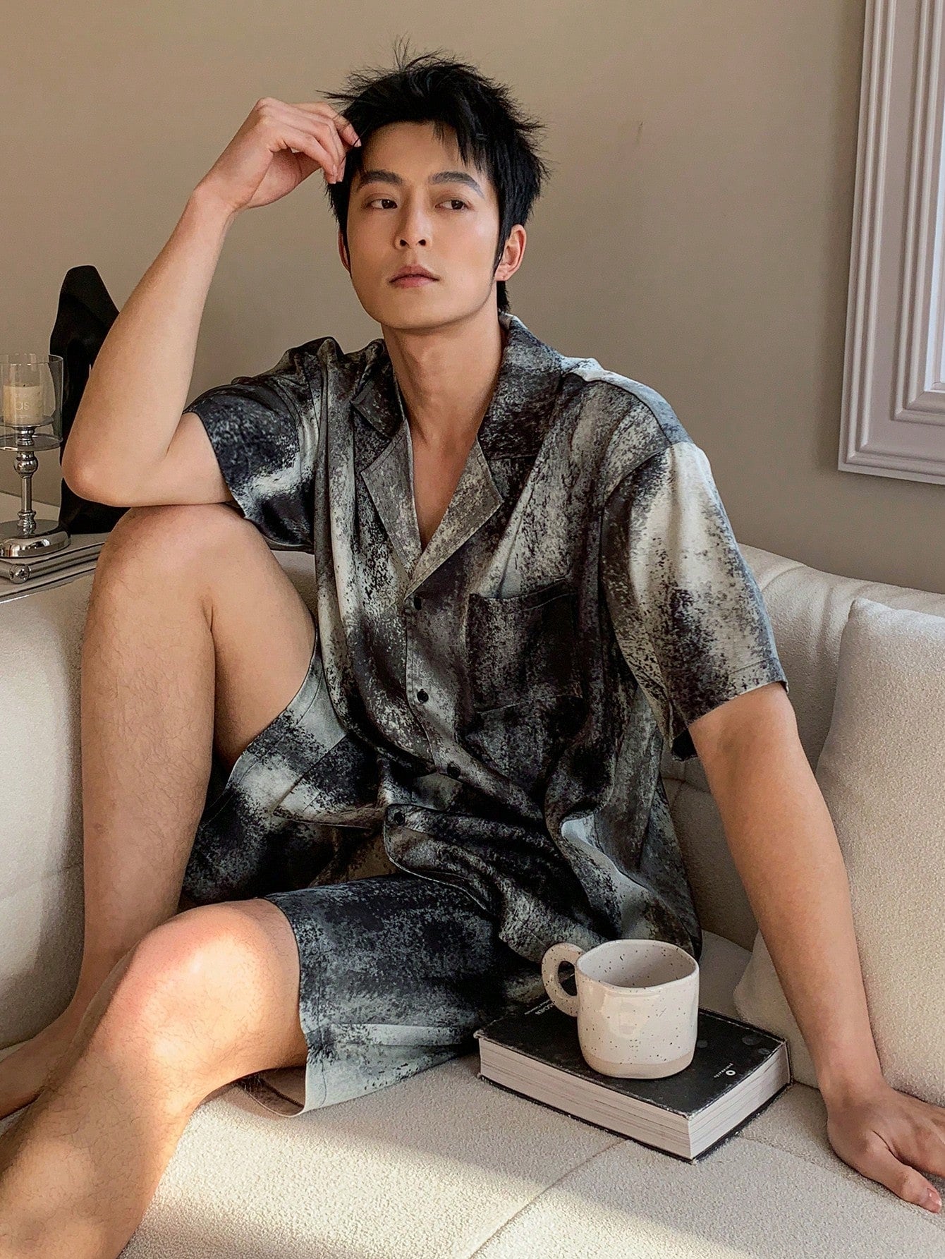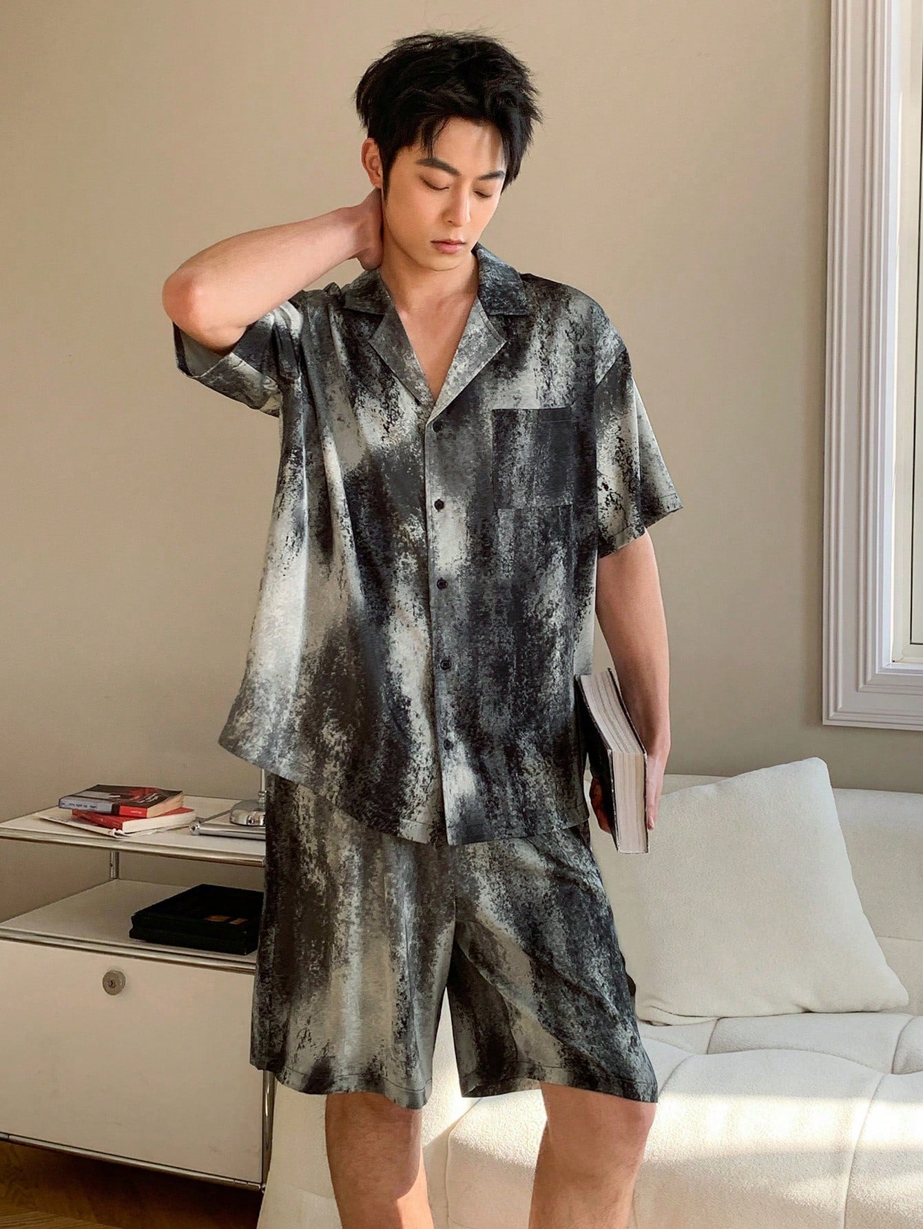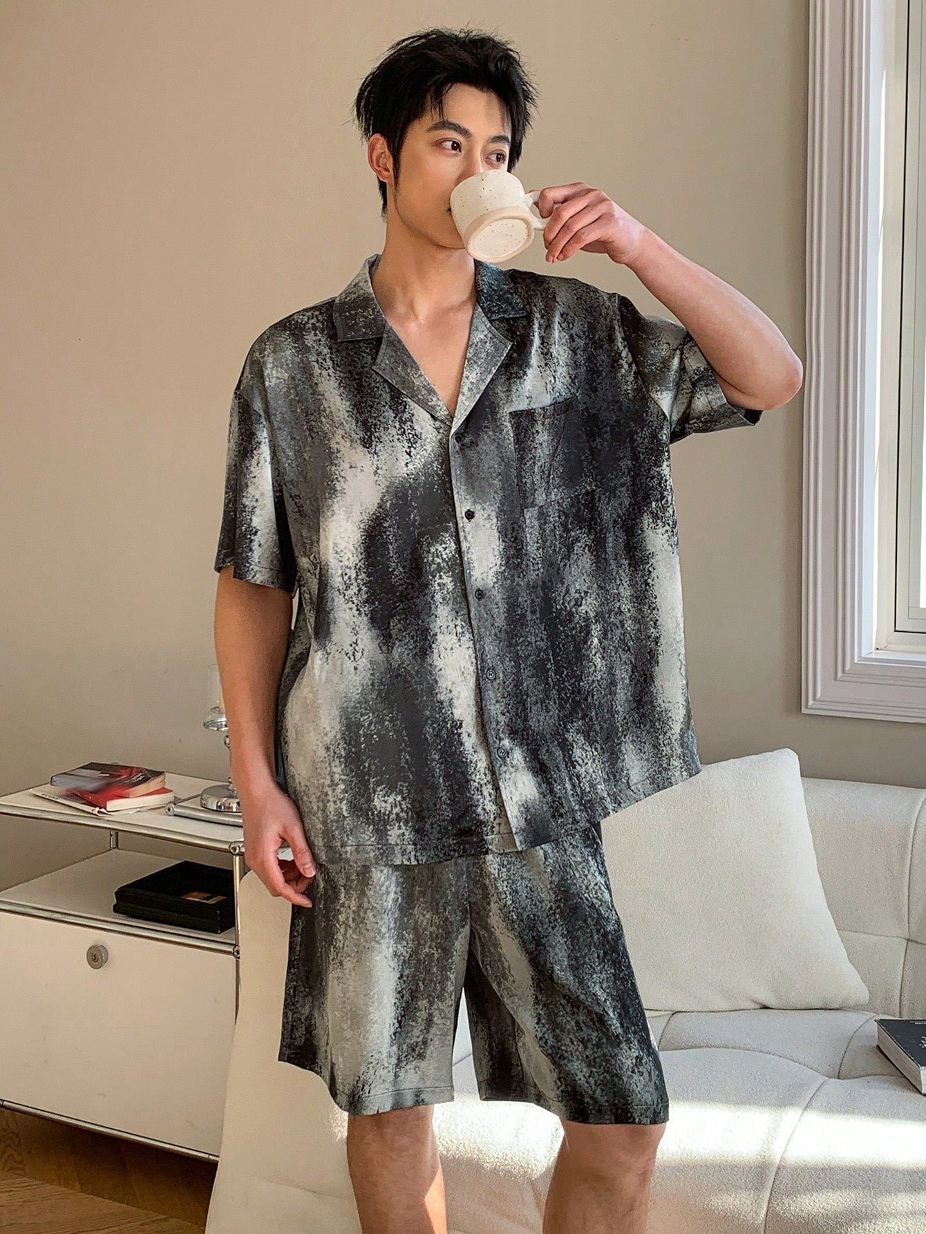 DAZY Tie-Dye Pattern Shirt And Shorts Pajama Set For Men, Summer