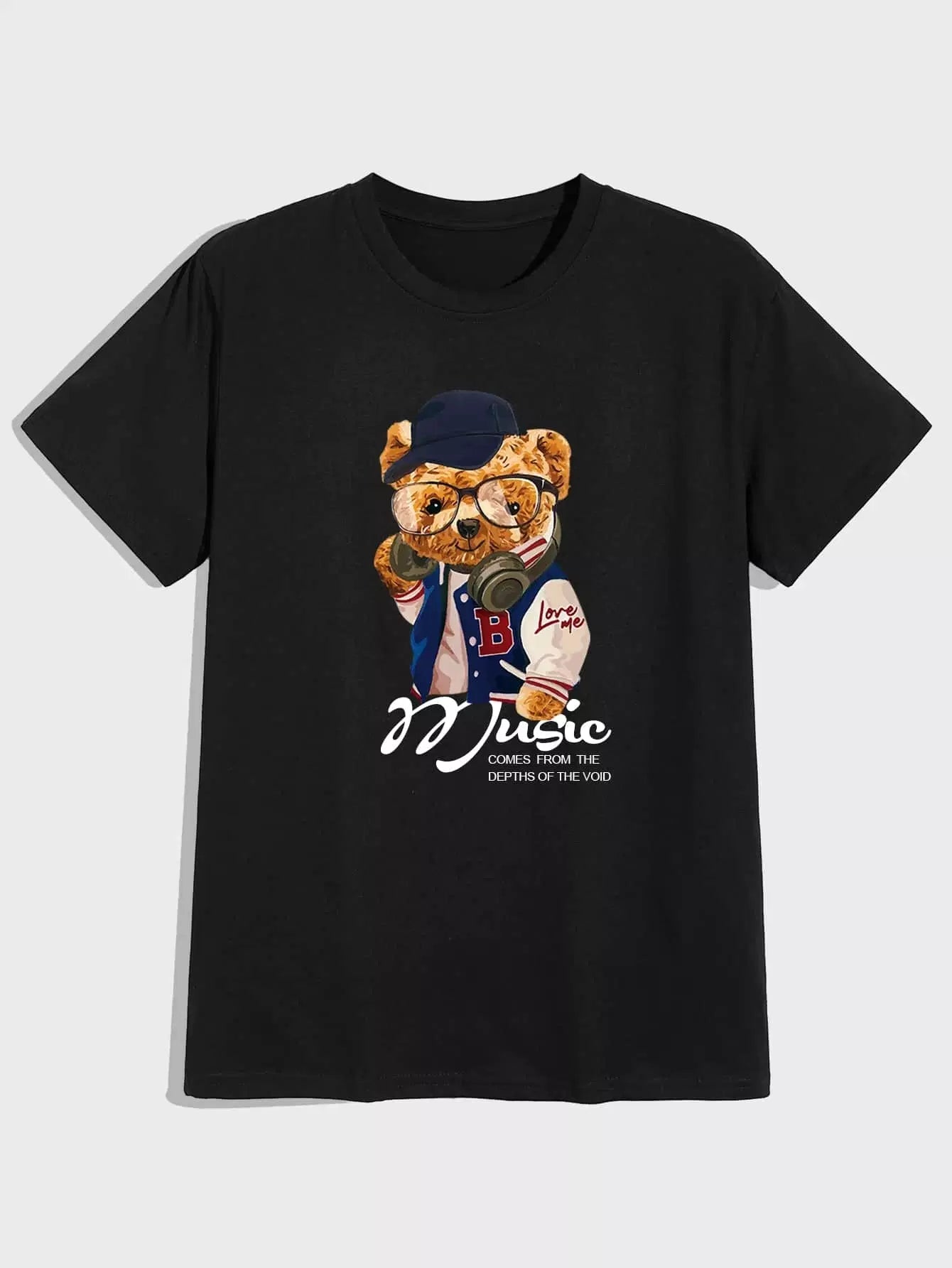 Guys Cartoon Bear Pattern Tee
