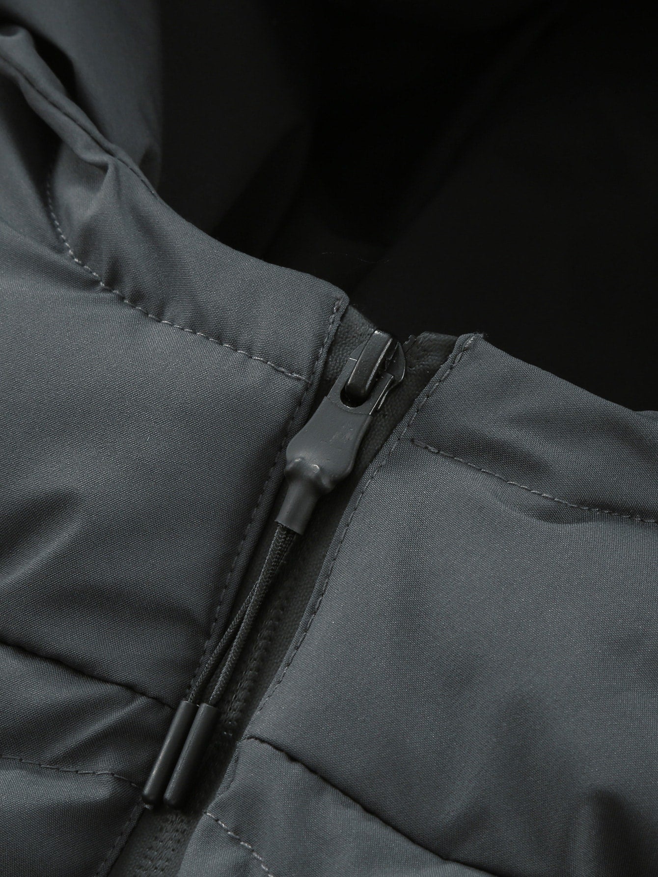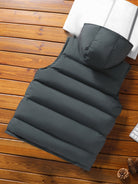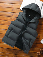 Manfinity Homme Men Zip Up Sleeveless Hooded Padded Coat, Going Out Black Casual Bubble Winter Vest ,