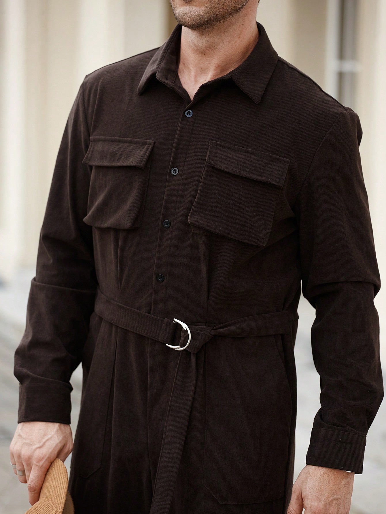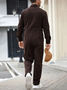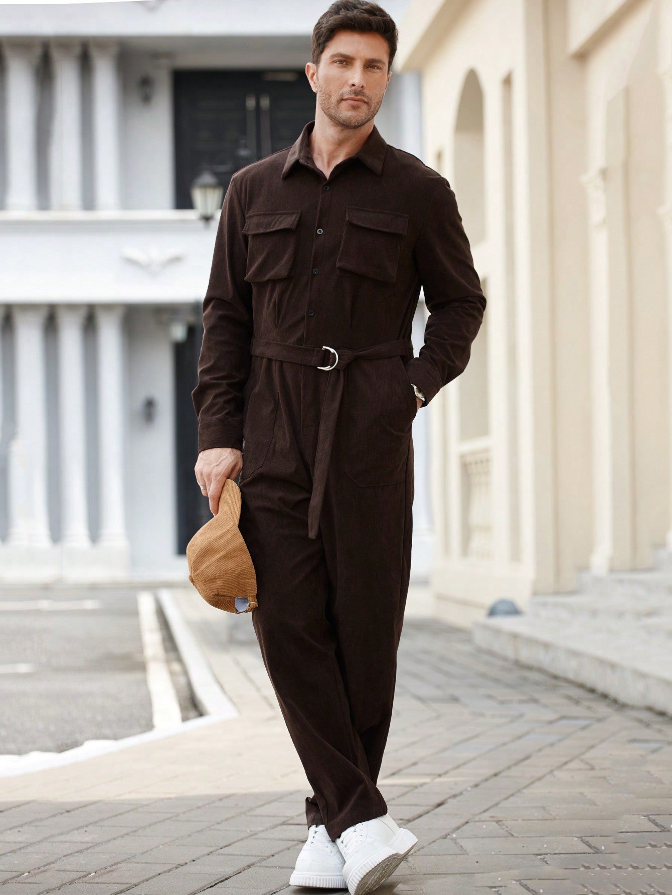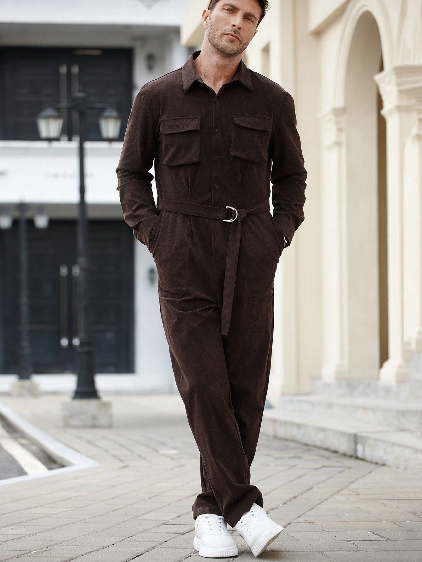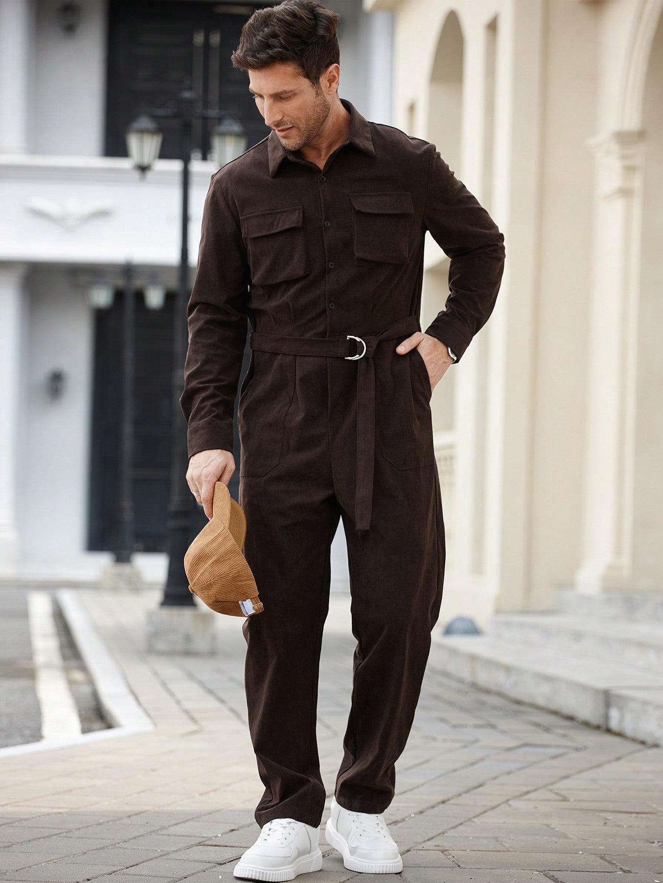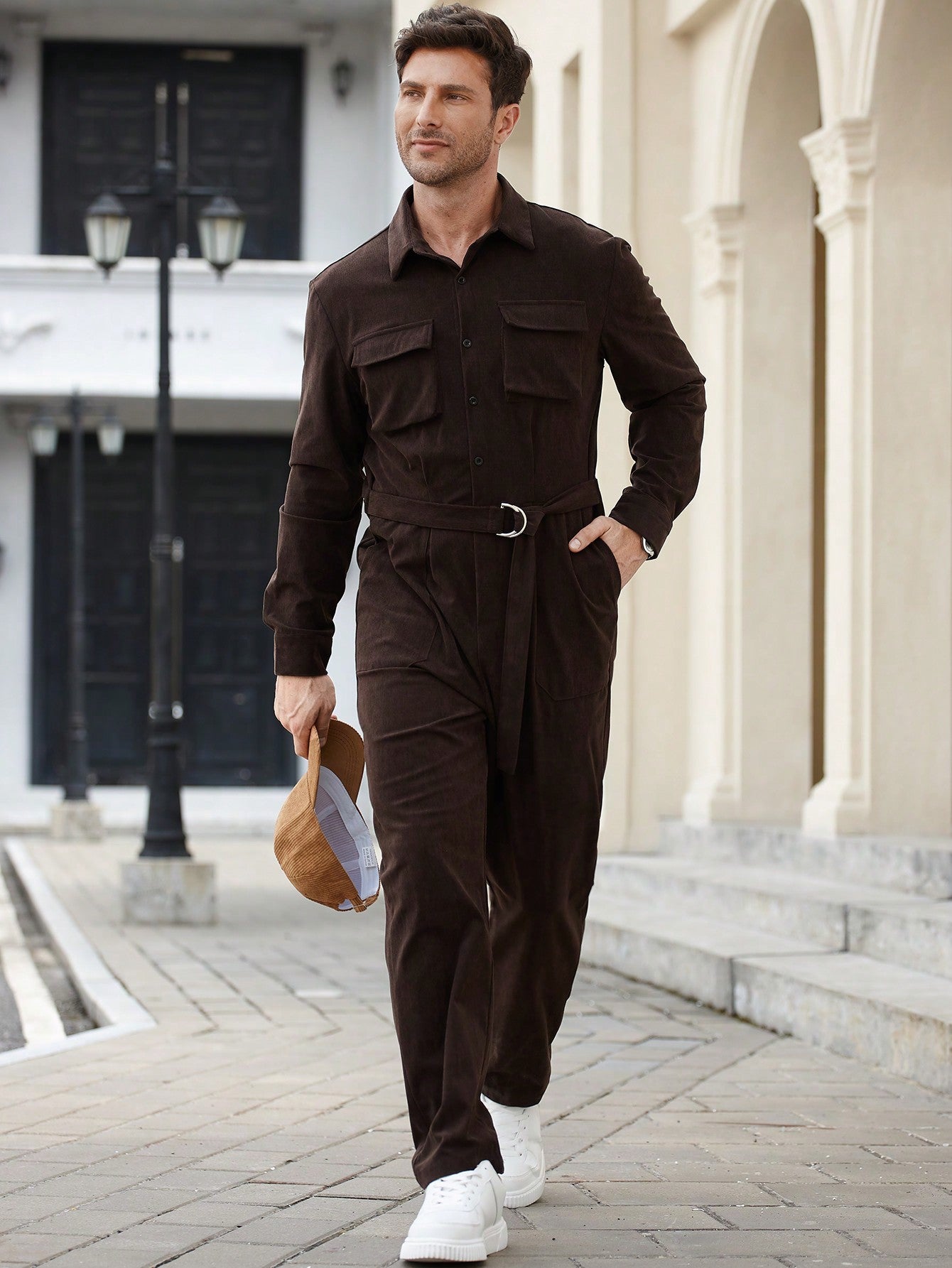 Manfinity Homme Men's Solid Color Casual Cargo Jumpsuit, Autumn