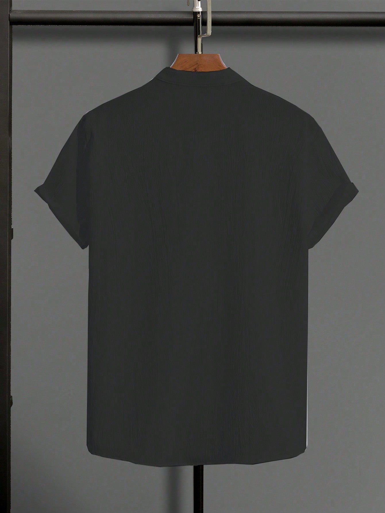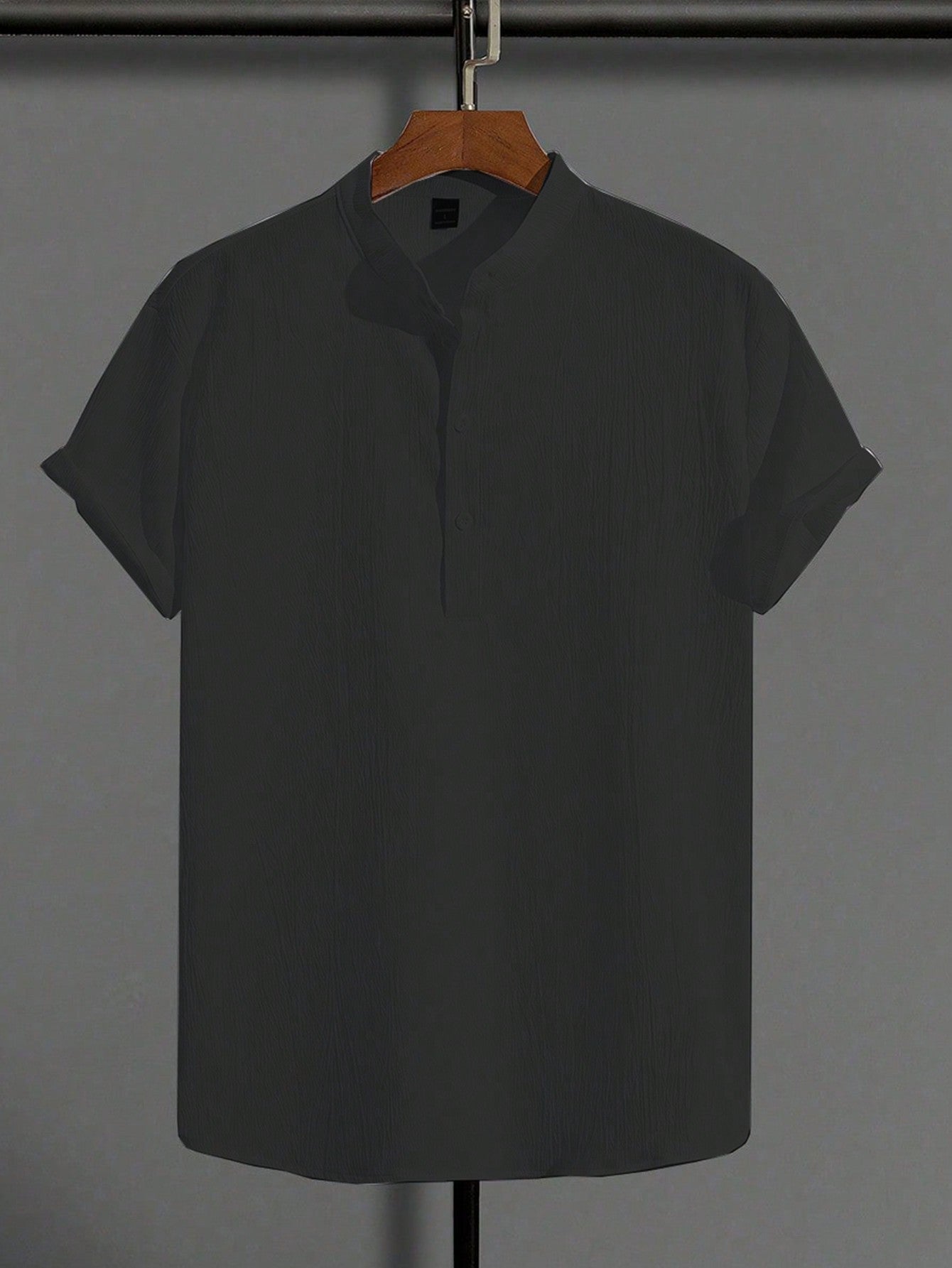 Manfinity Homme Men's Summer Solid Color Short Sleeve Casual Henley Shirt