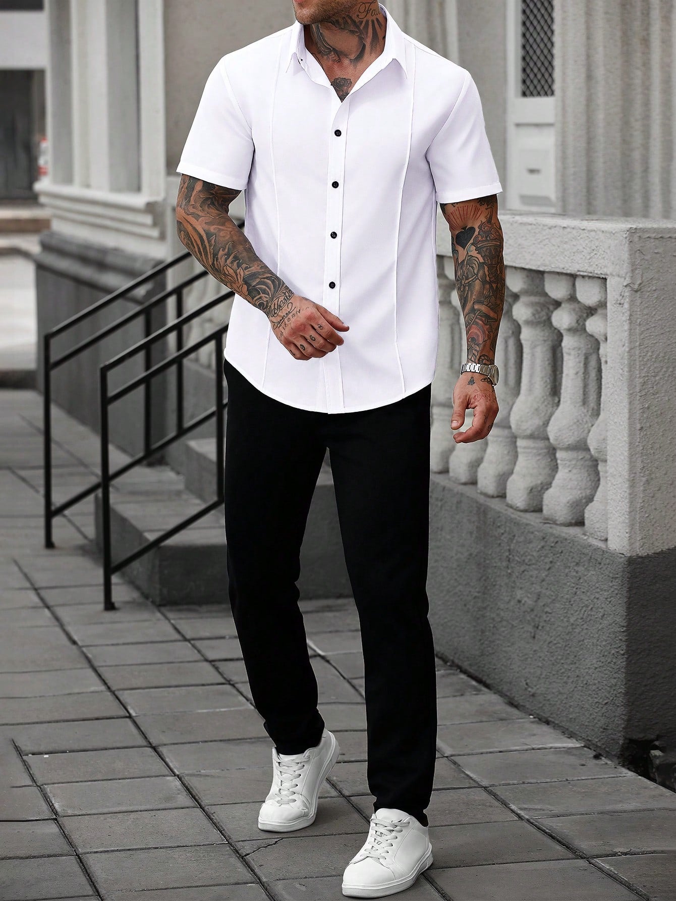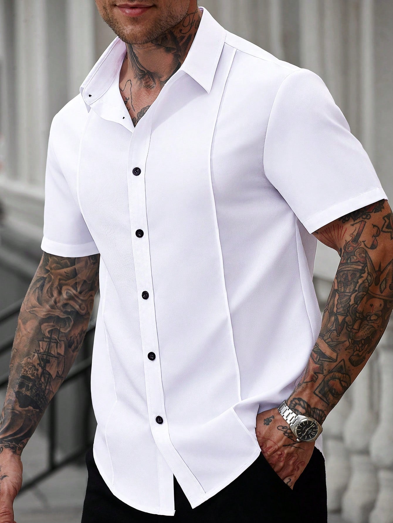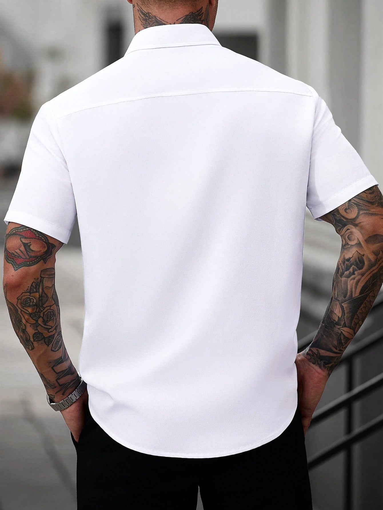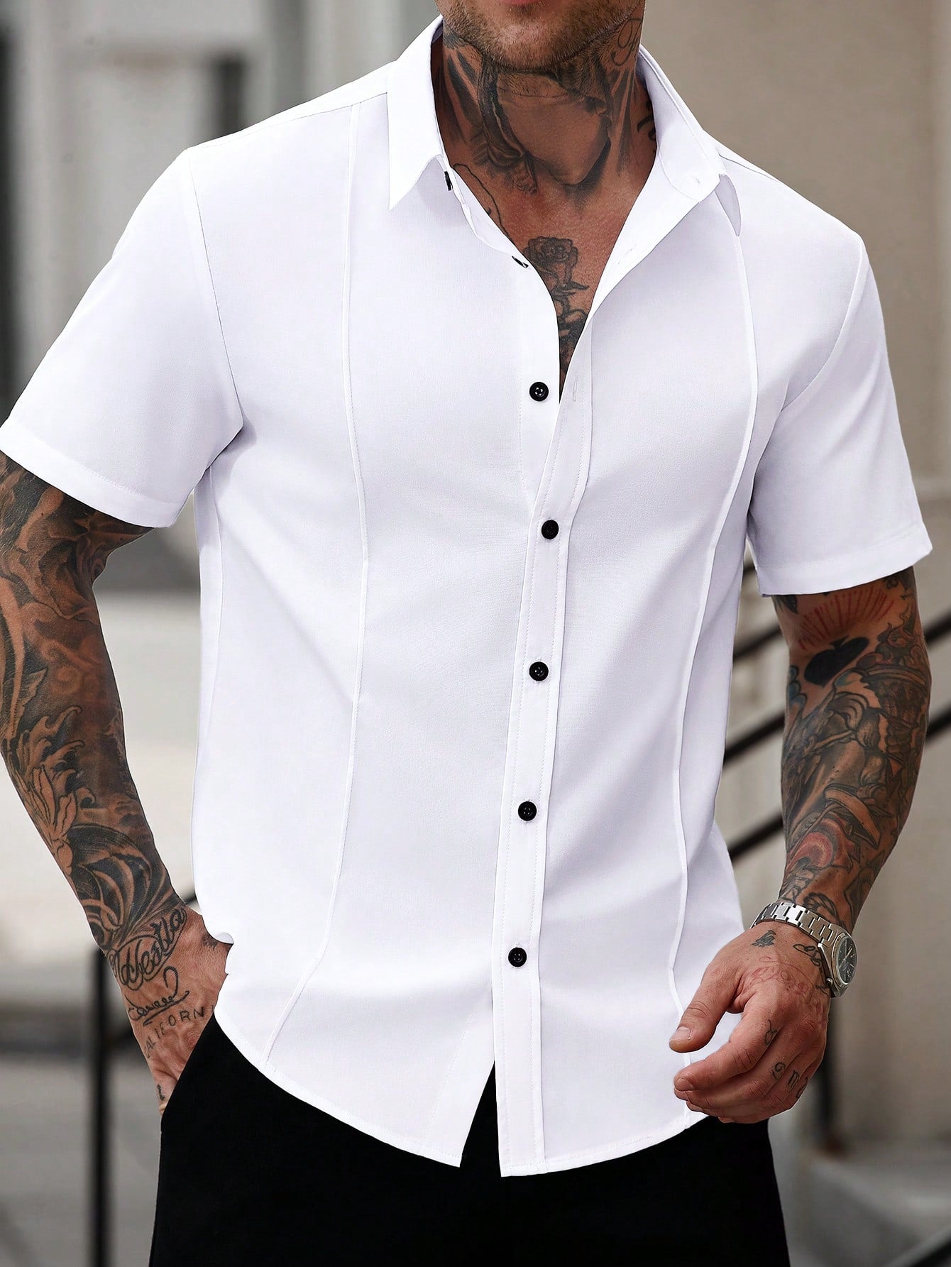 Manfinity Homme White Men's Business Casual Short Sleeve Shirt