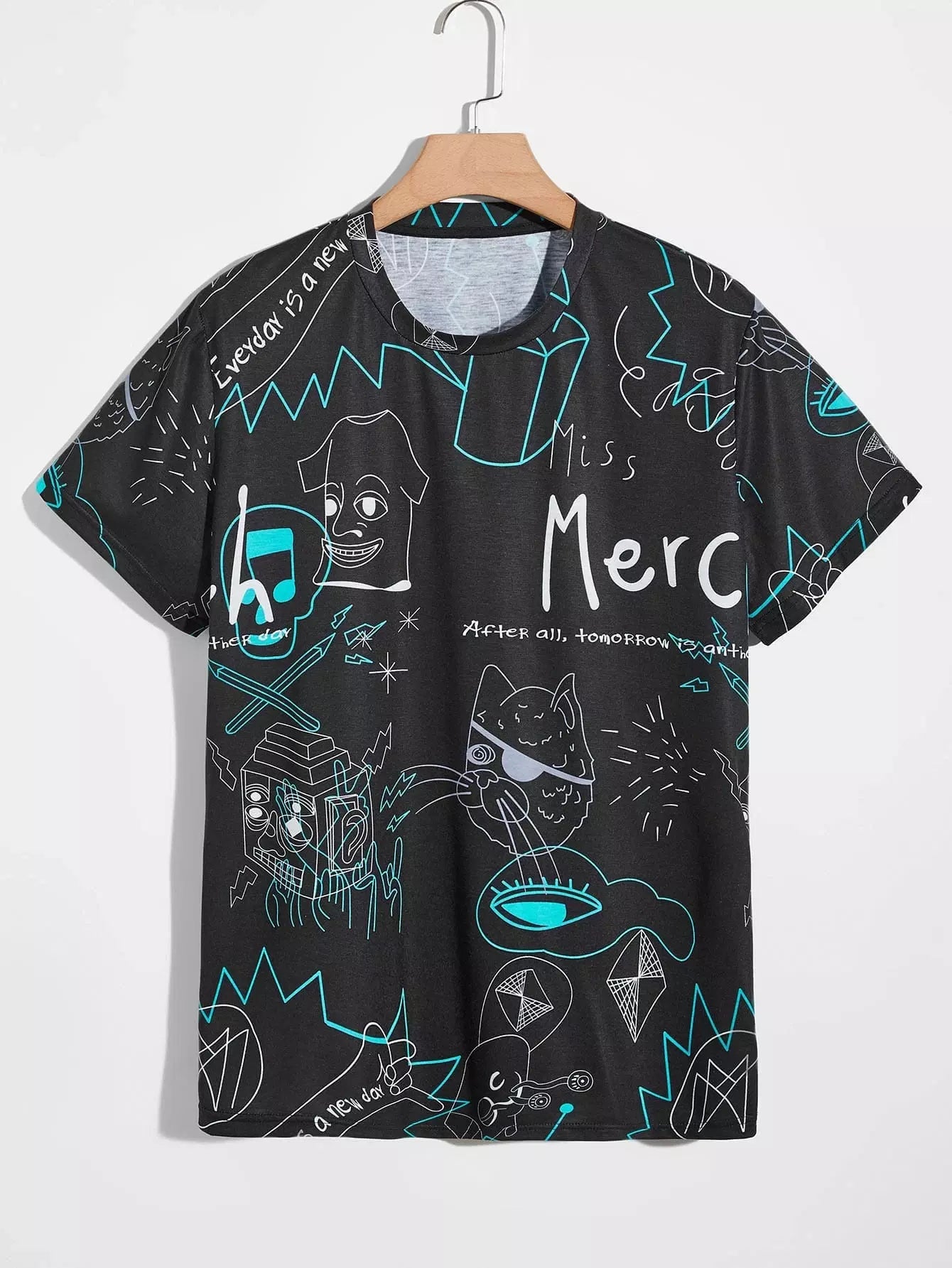 Men Cartoon And Letter Graphic Tee