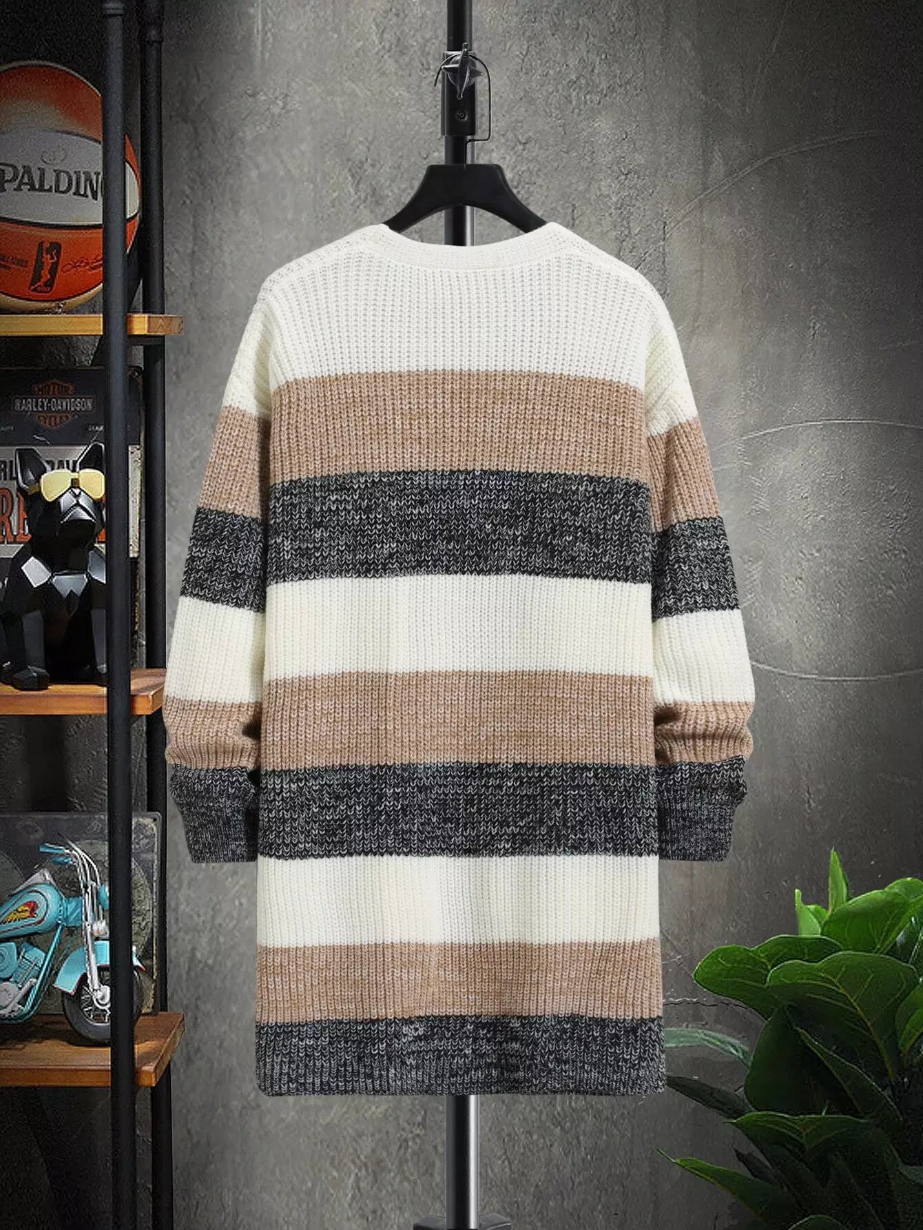 Men Color Block Drop Shoulder Open Front Cardigan