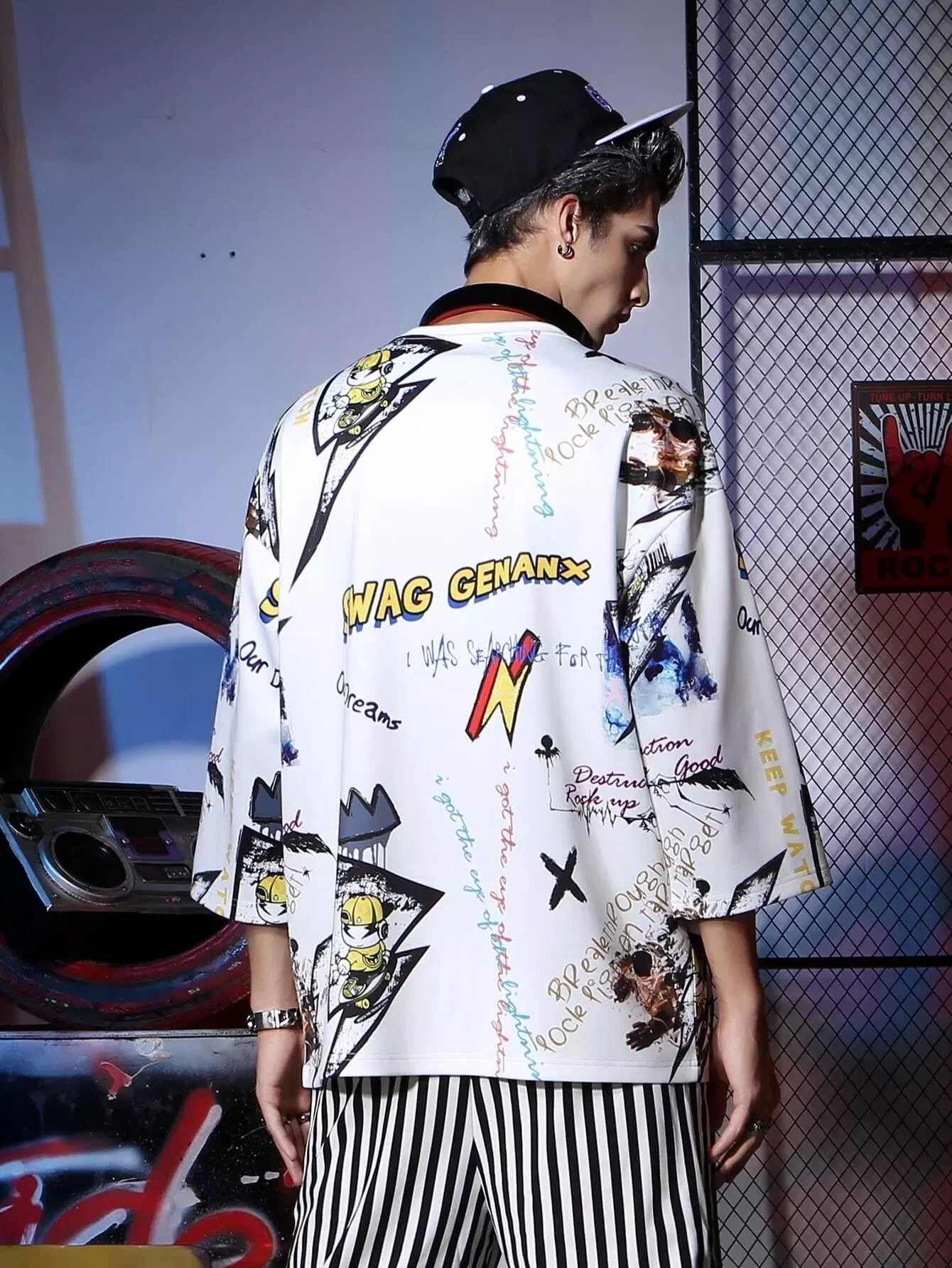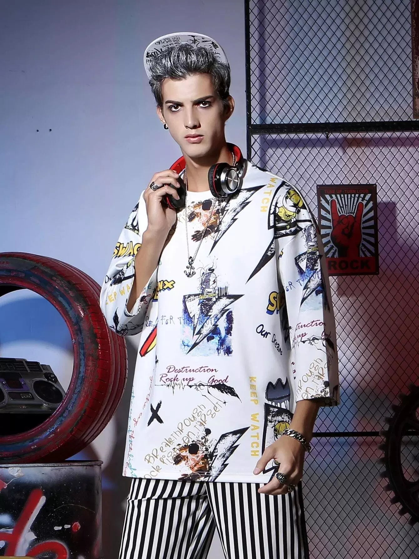Men Drop Shoulder Letter & Cartoon Graphic Tee
