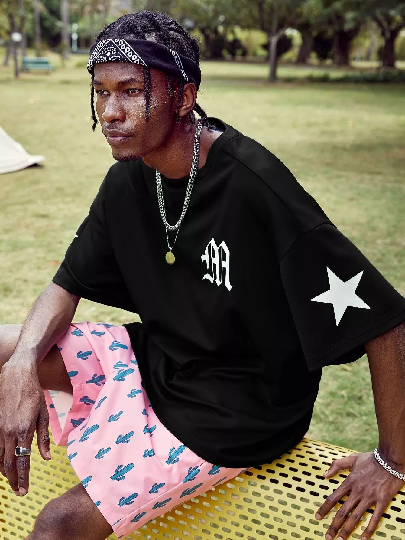 Men Drop Shoulder Letter Graphic Tee