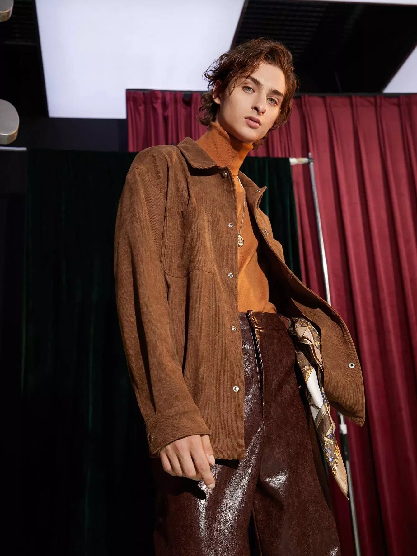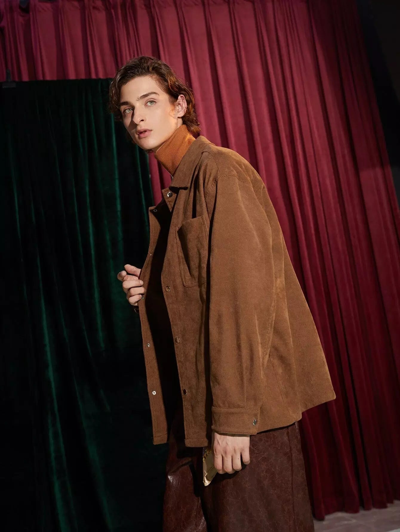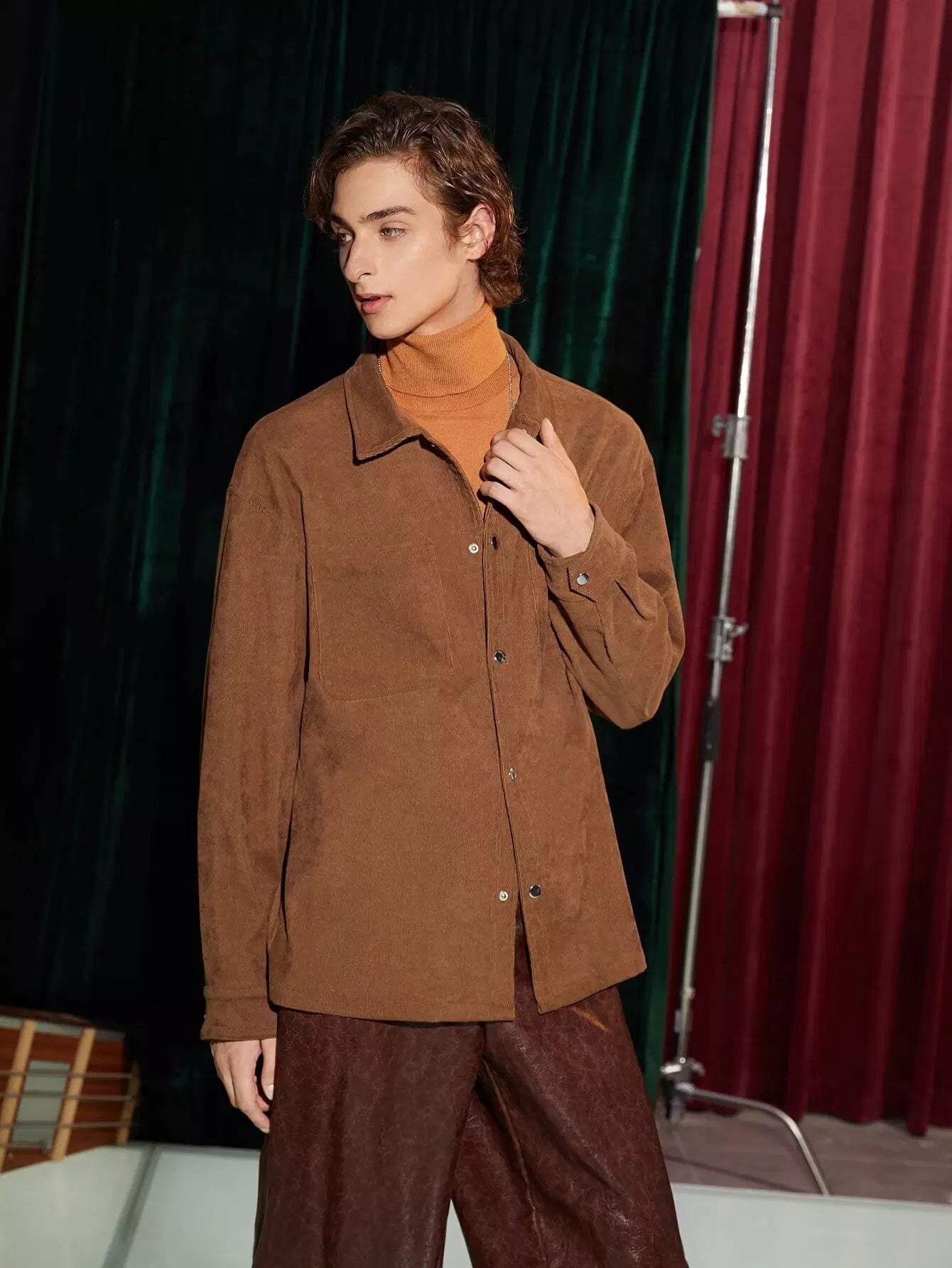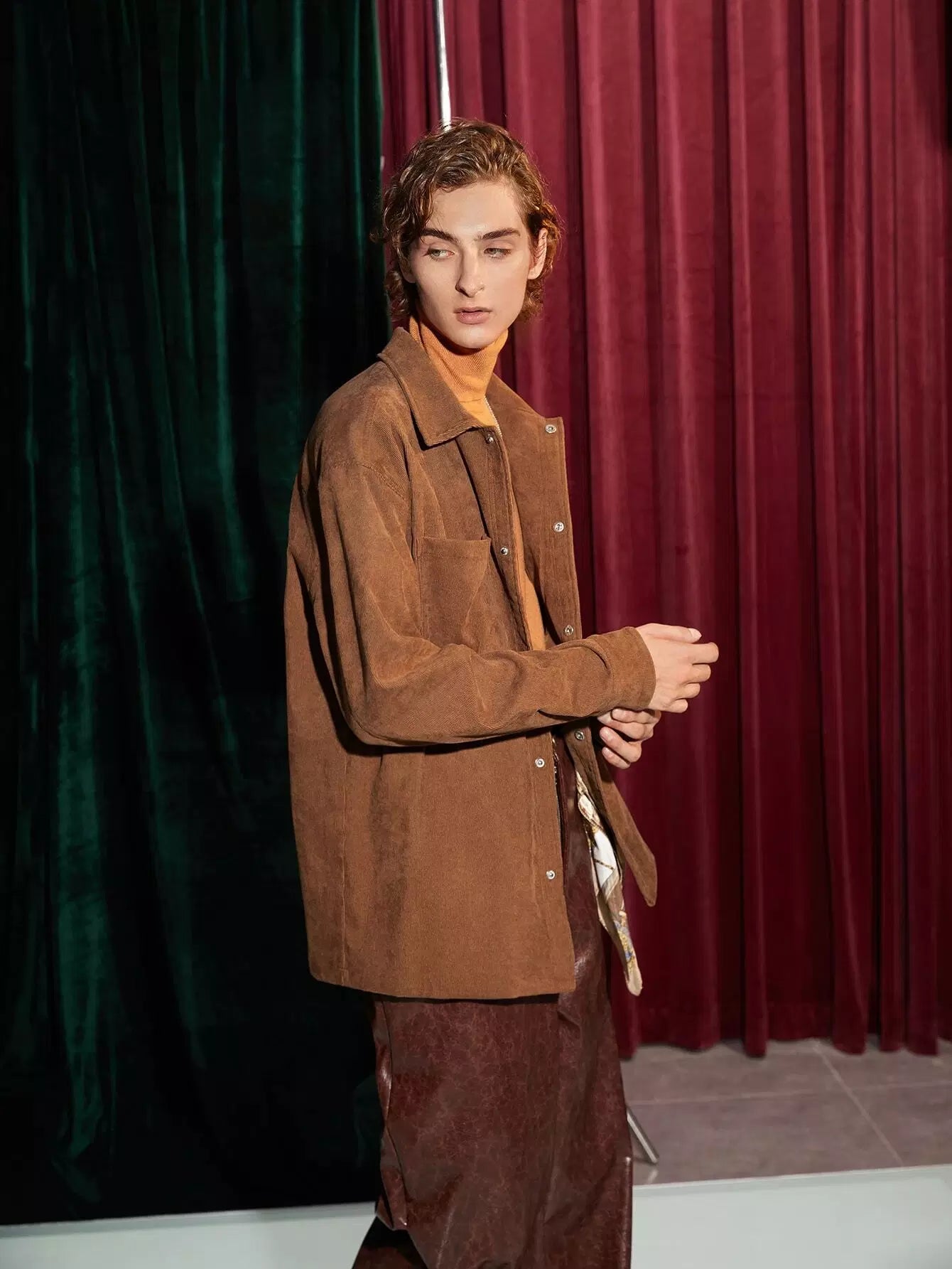 Men Drop Shoulder Pocket Patched Corduroy Jacket