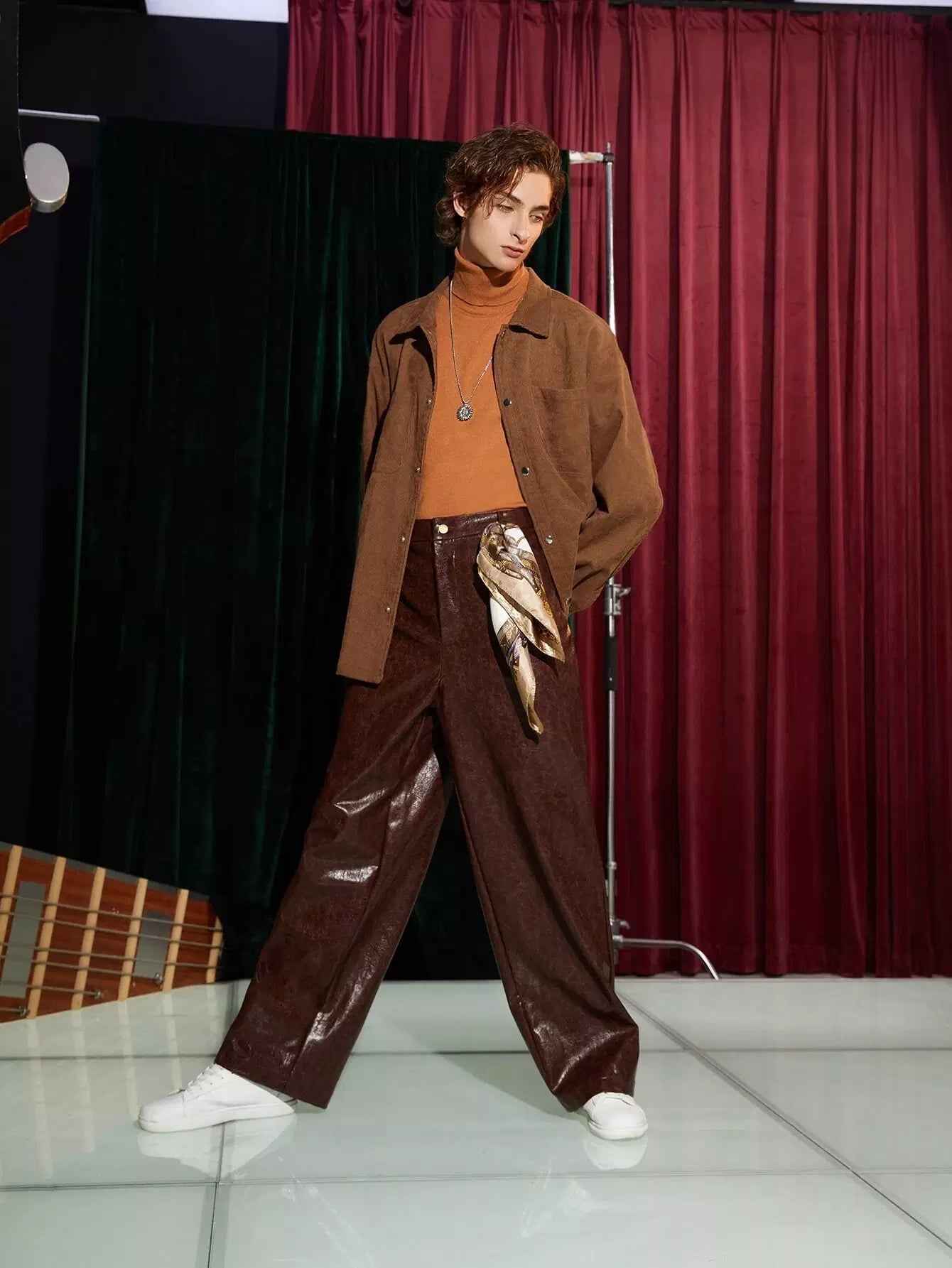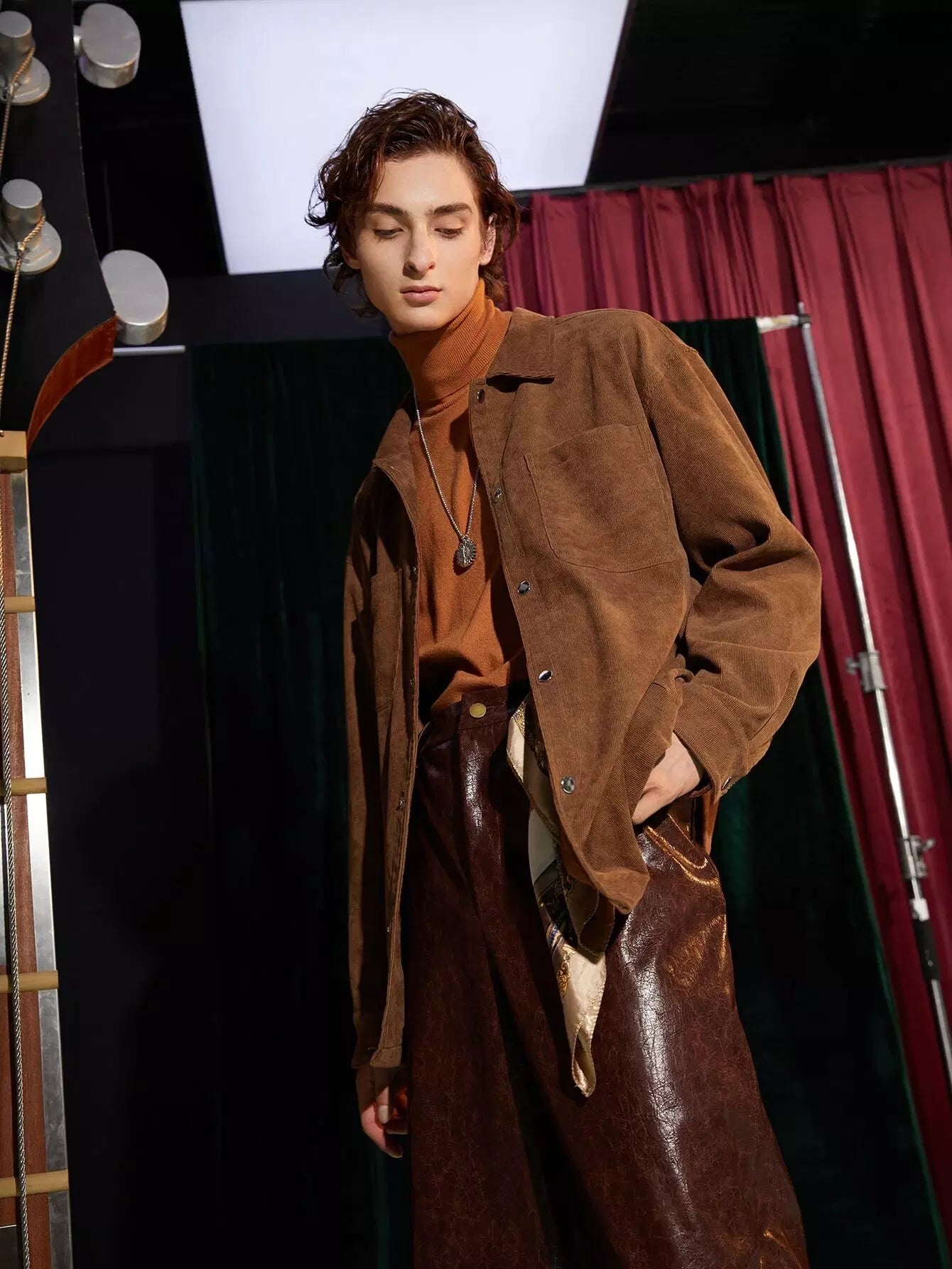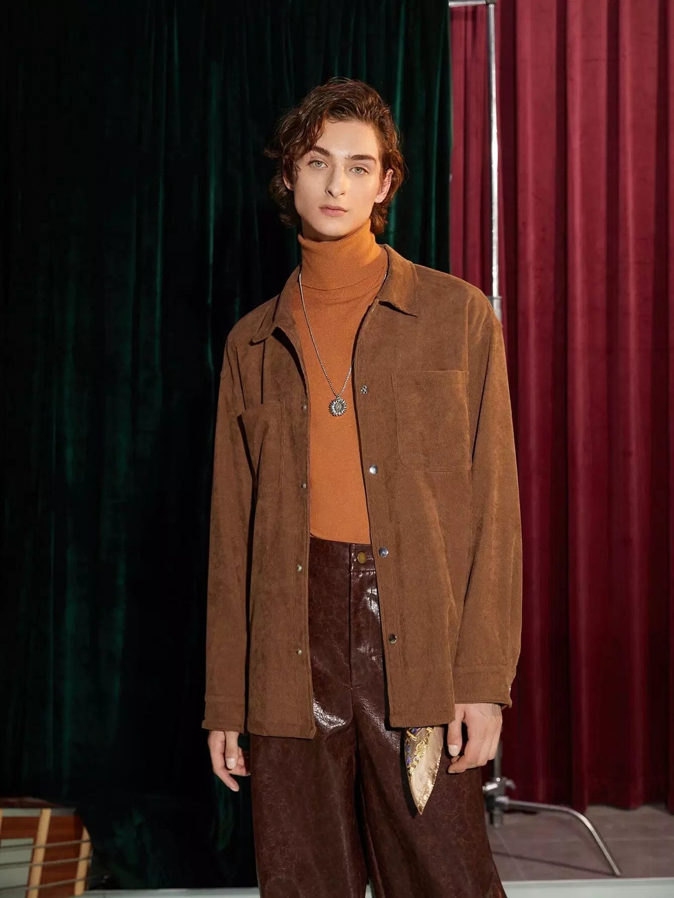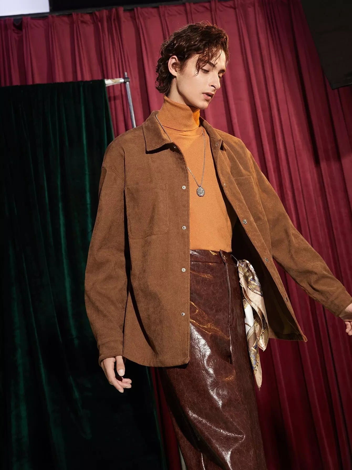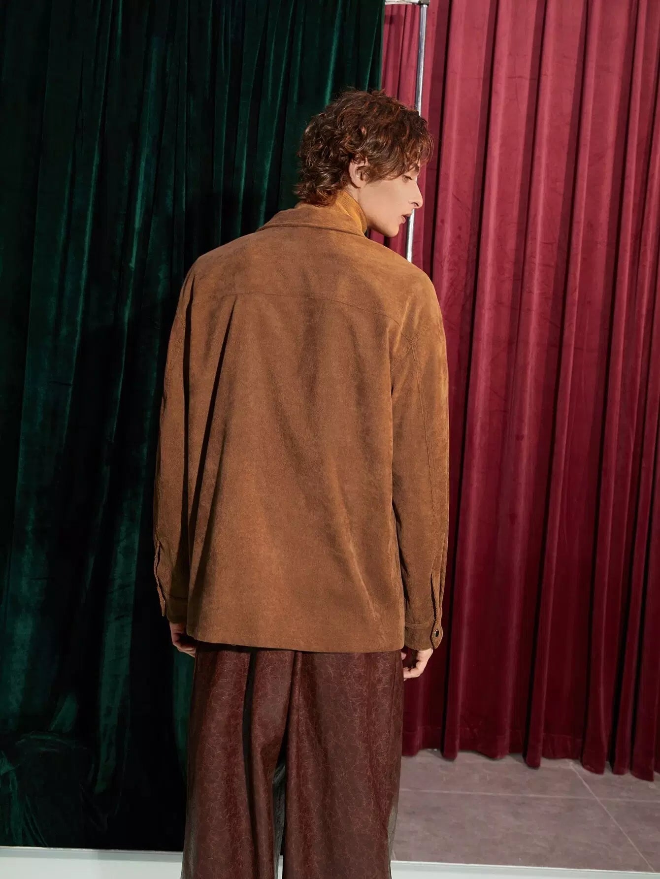 Men Drop Shoulder Pocket Patched Corduroy Jacket