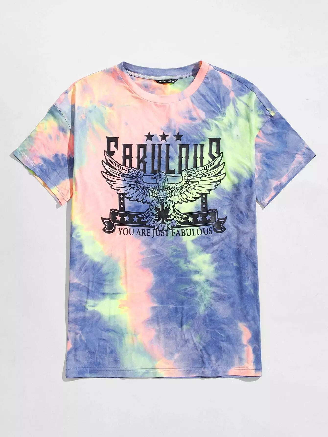 Men Eagle & Letter Graphic Tie Dye Tee