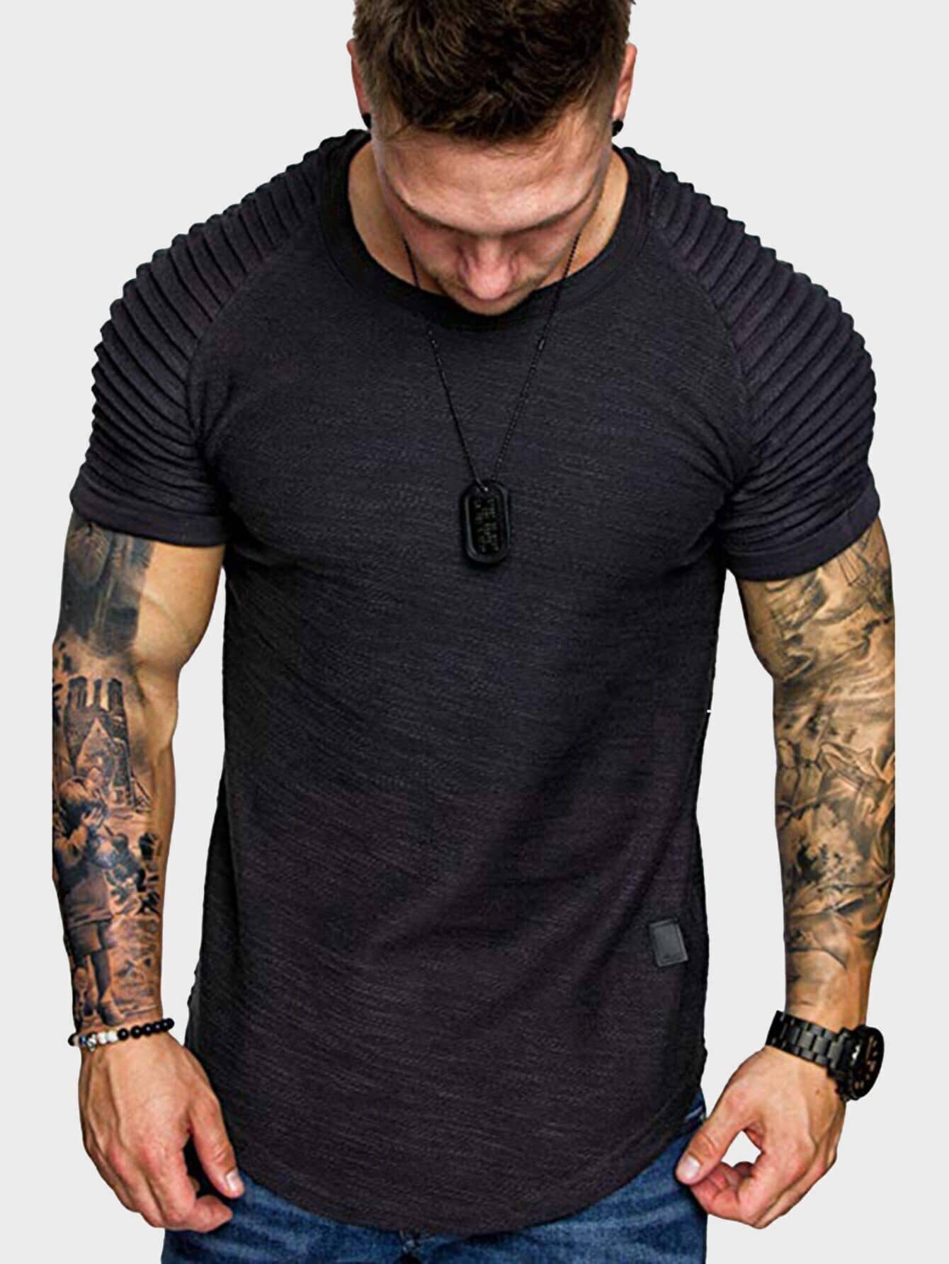 Men Solid Raglan Sleeve Tee