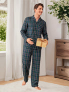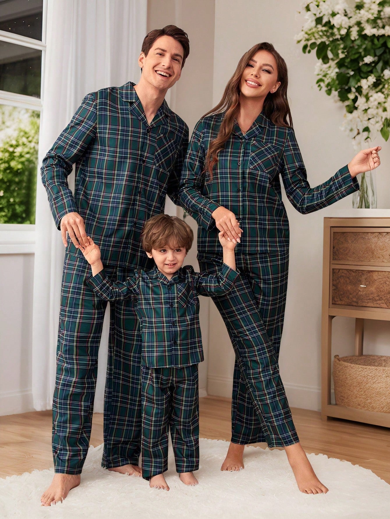 men SHEIN Men's Plaid Long Sleeve Top And Pants 2 Pieces Pajama Set