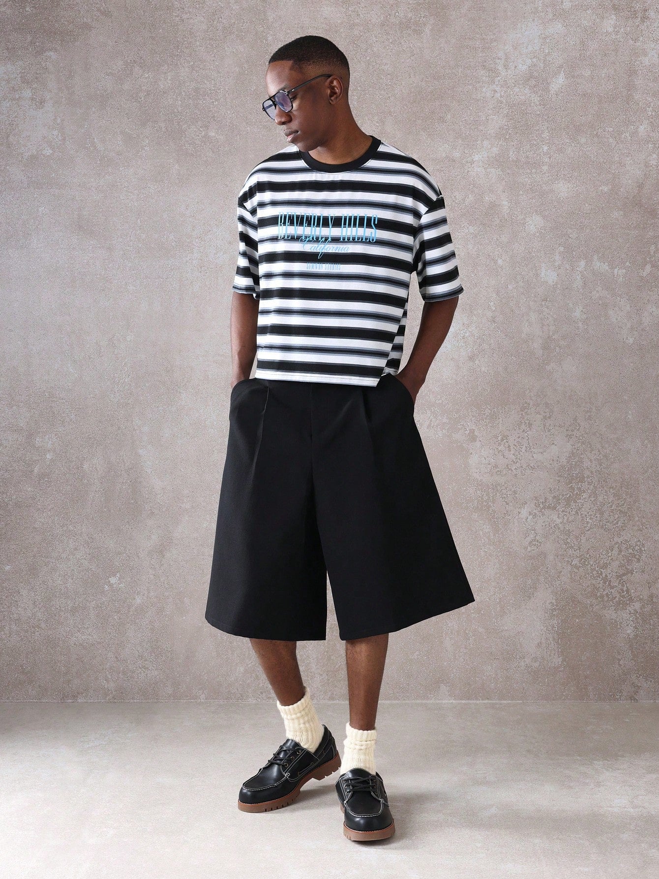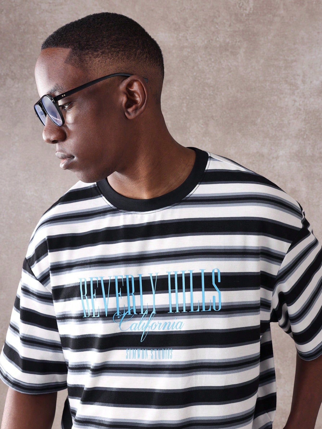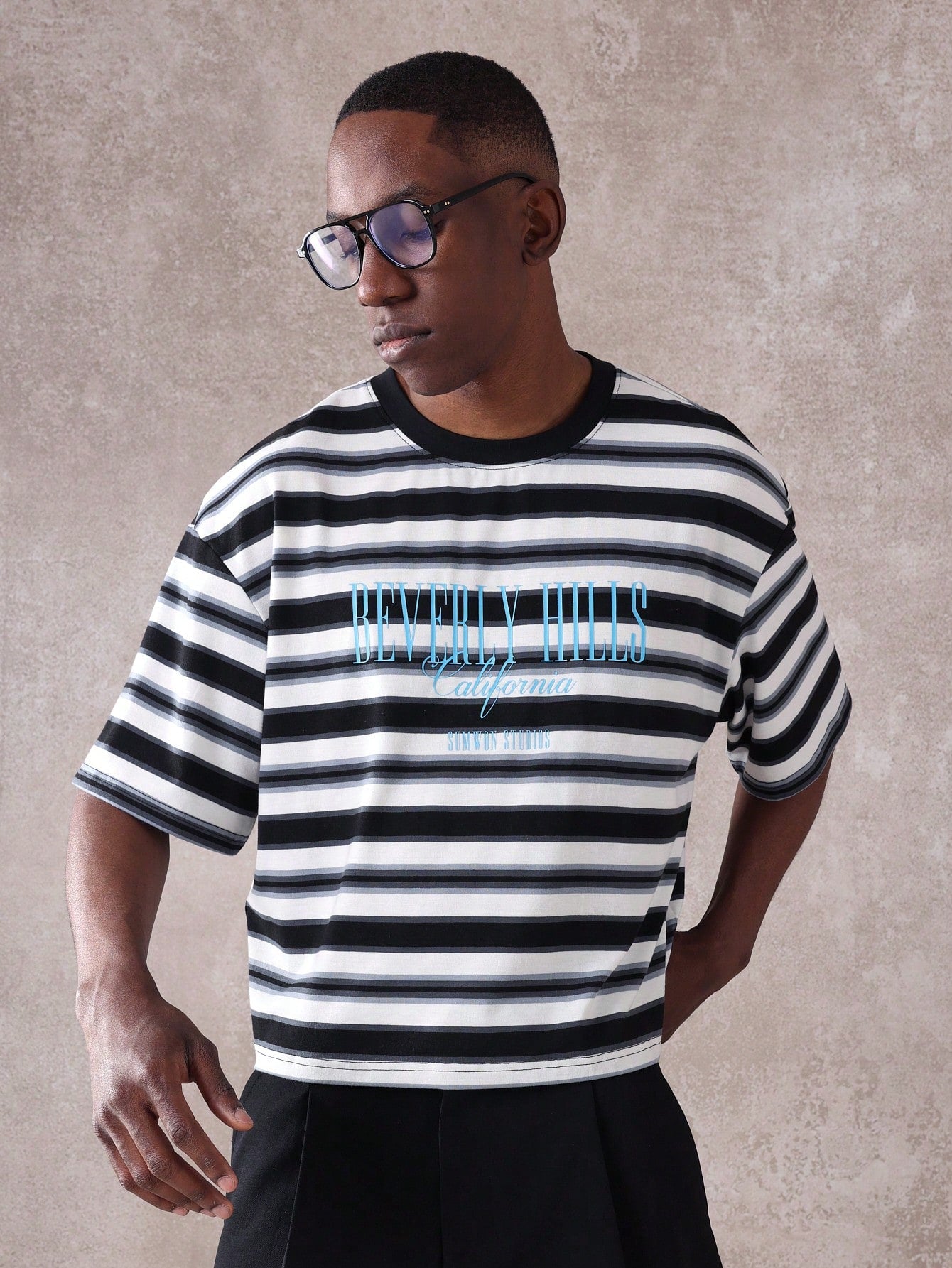 SUMWON Beverly Hills California Studios Striped T-Shirt Retro Aesthetic Summer Casual Streetwear Short