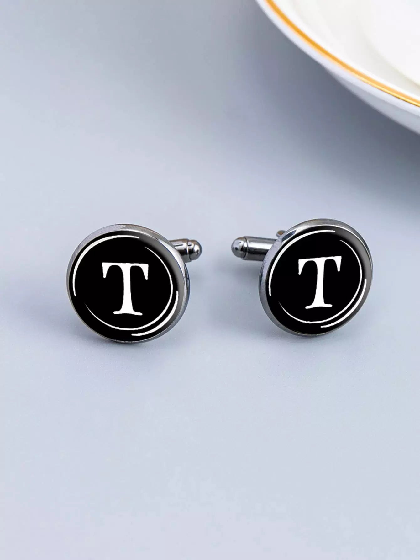 1pair Men Letter Graphic Cufflinks