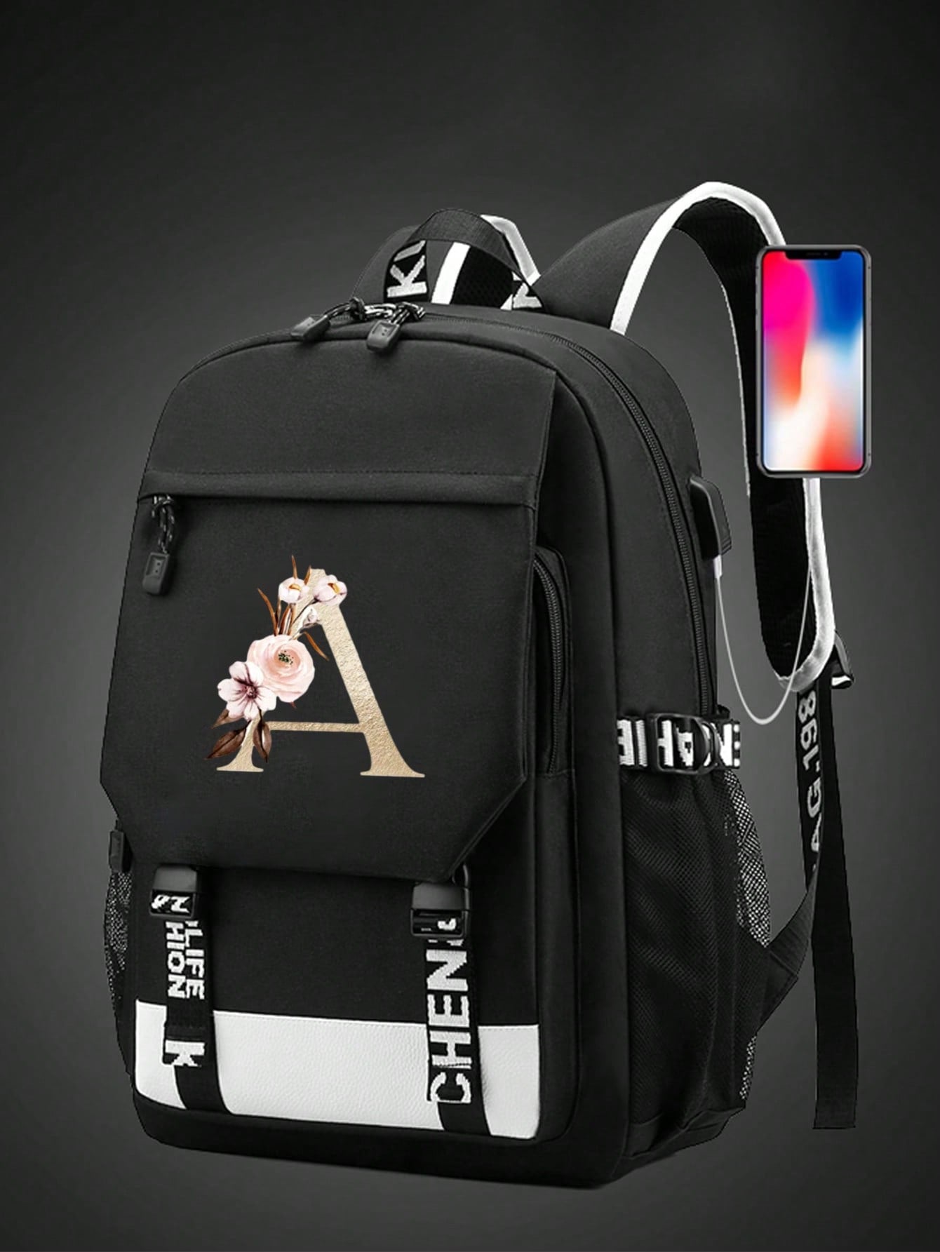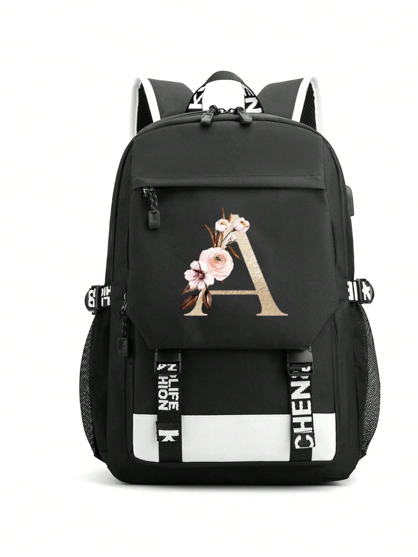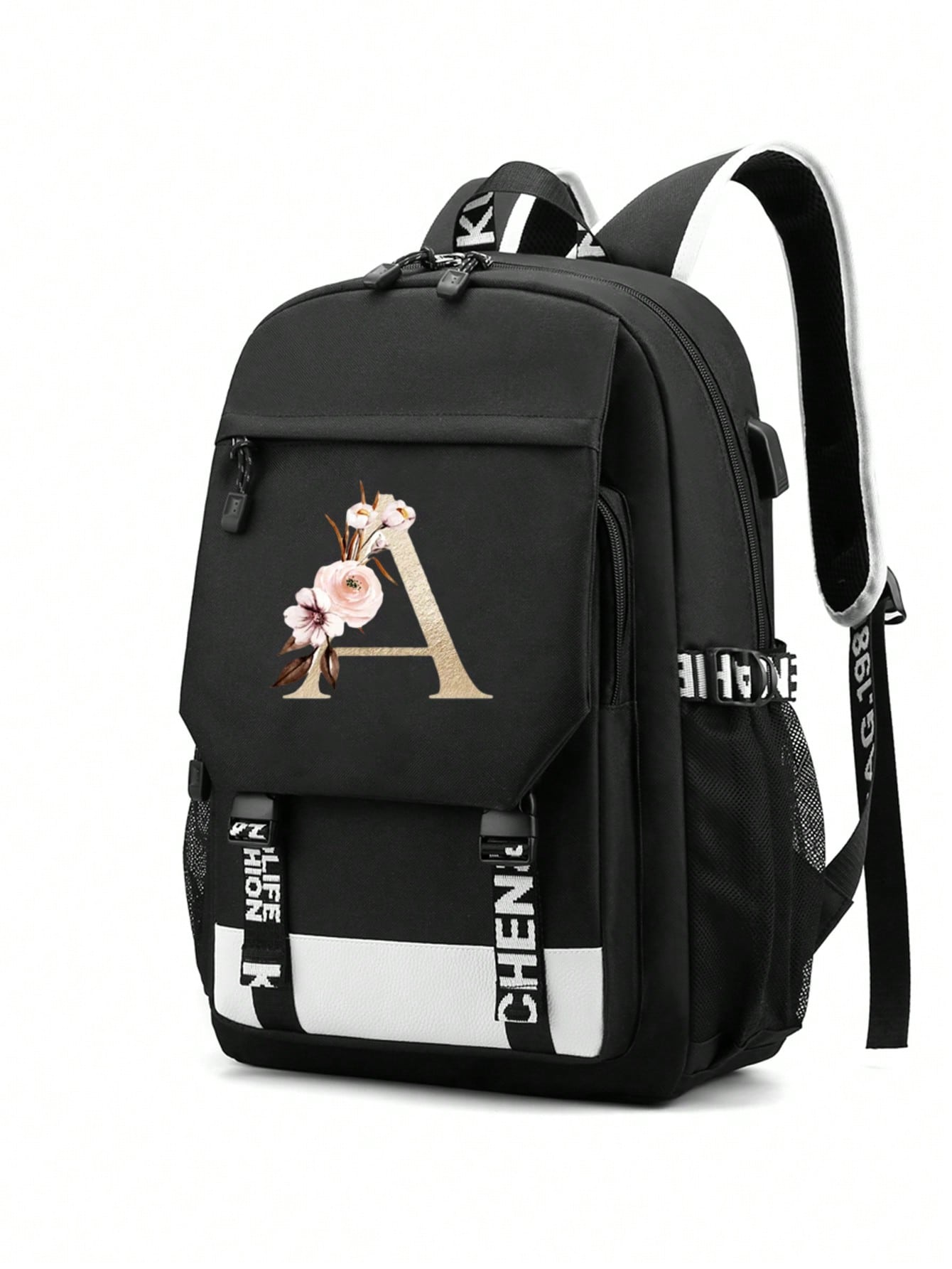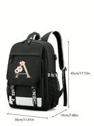 1pc Letter Printed Fashionable Functional Nylon Backpack With Extra Charging Port Suitable For Men