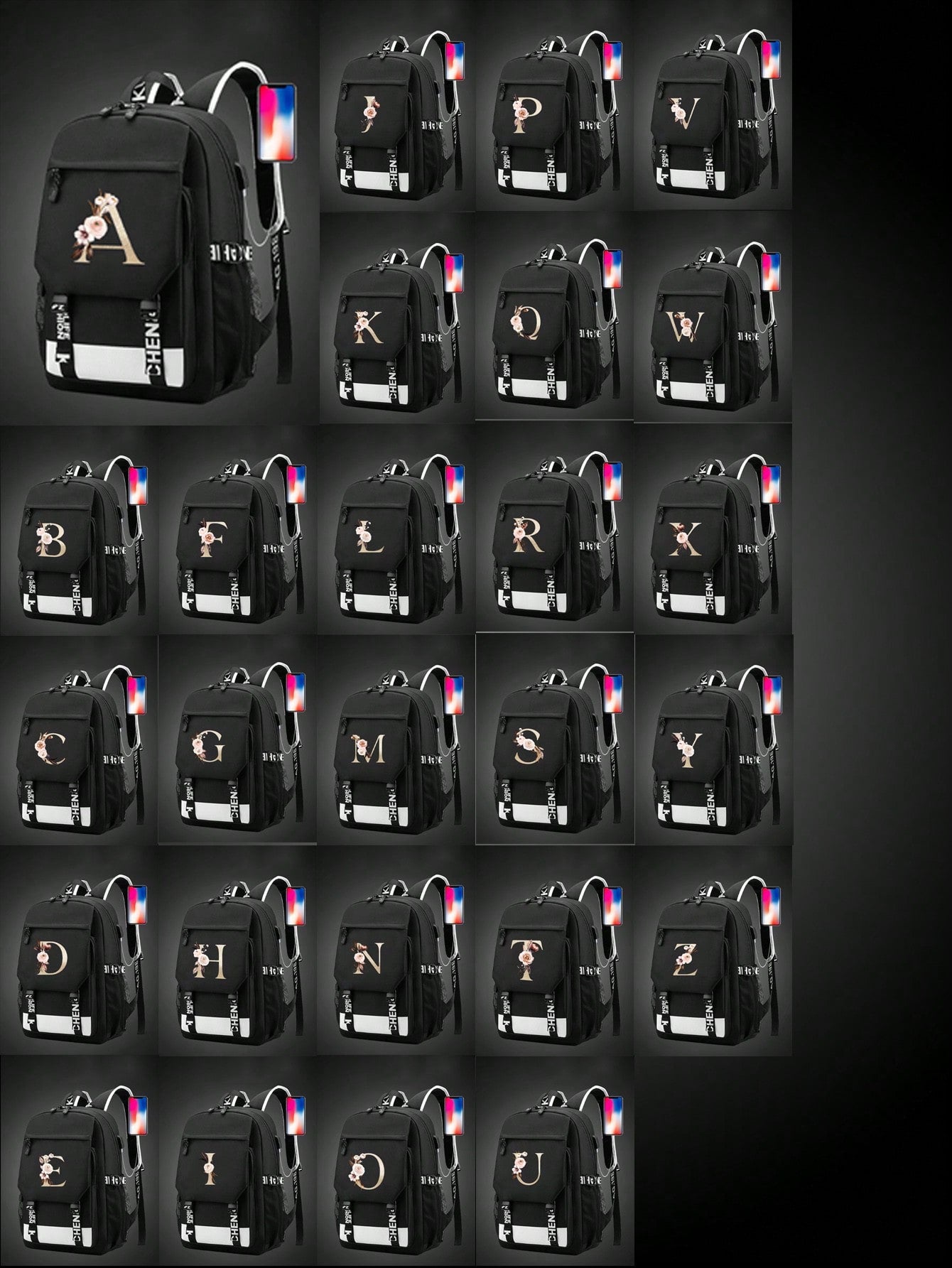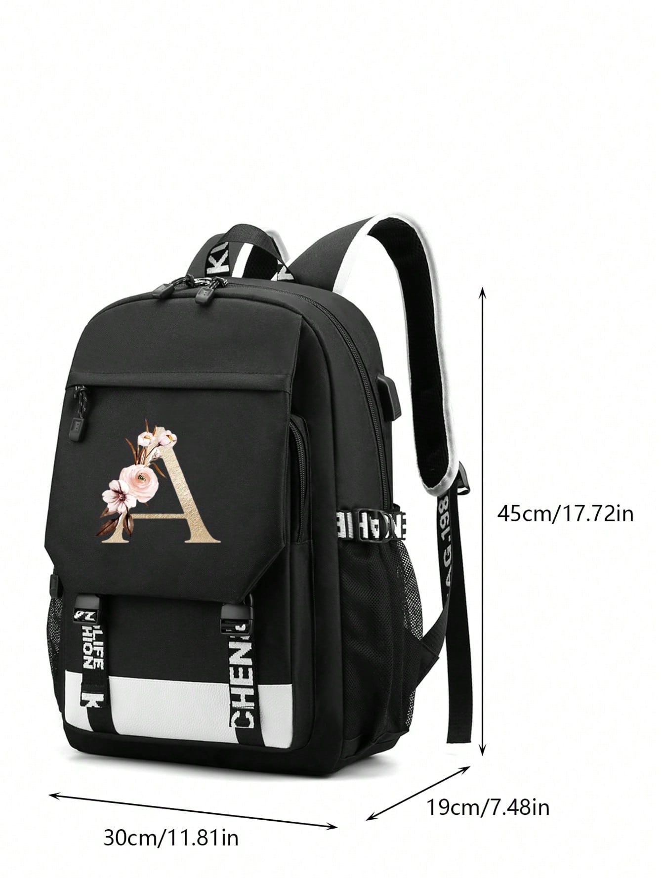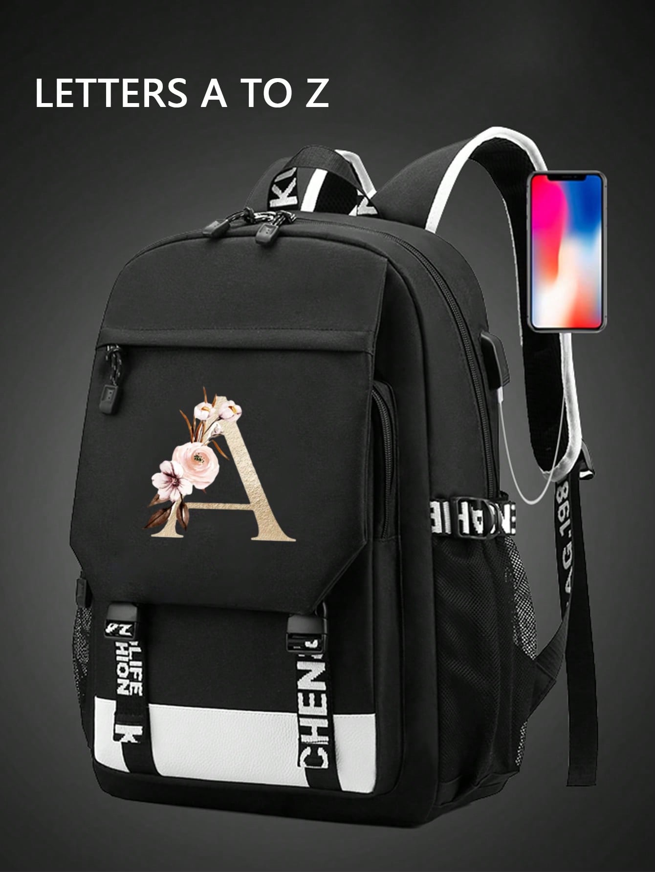 1pc Letter Printed Fashionable Functional Nylon Backpack With Extra Charging Port Suitable For Men