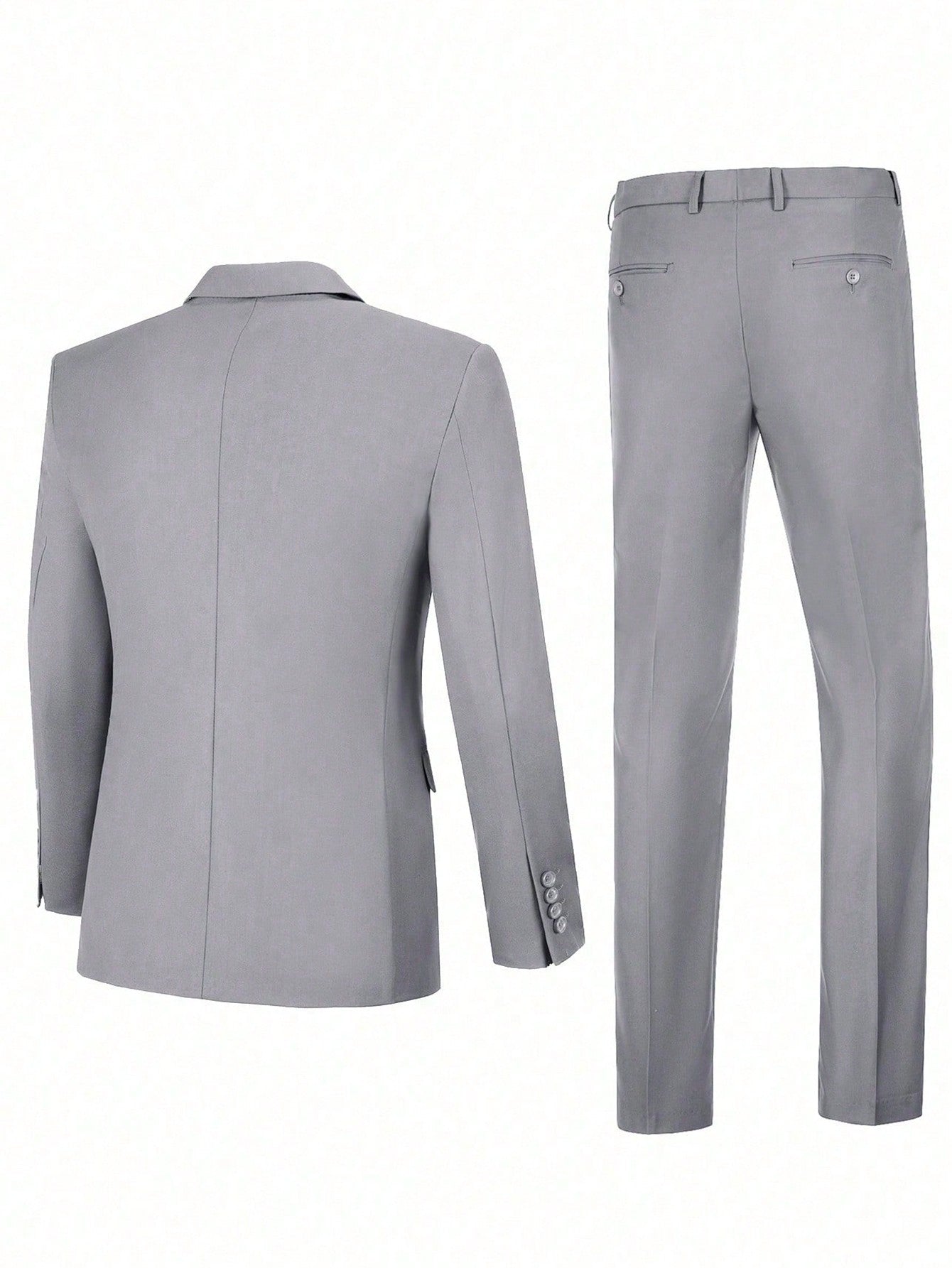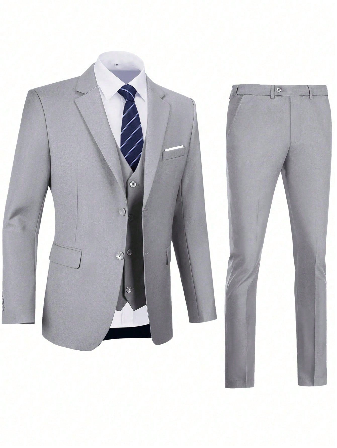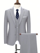 Furuyal Men's 3 PiecesElegant Suit Set - Men's Gentleman Solid Color Double-Breasted Slim-Fit Single-Breasted Wedding Suit Jacket