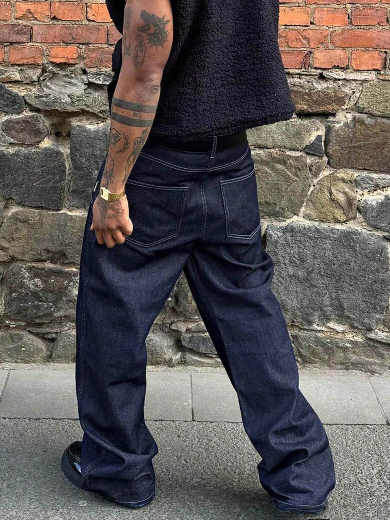 GlobeSwift Men's Relaxed Straight Washed Blue American Style Denim Jeans