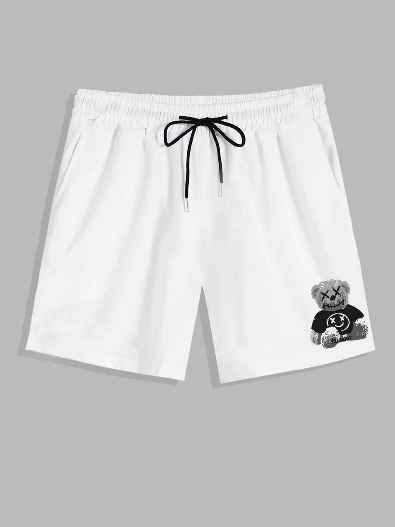 Guys Cartoon Bear Graphic Drawstring Shorts 7''