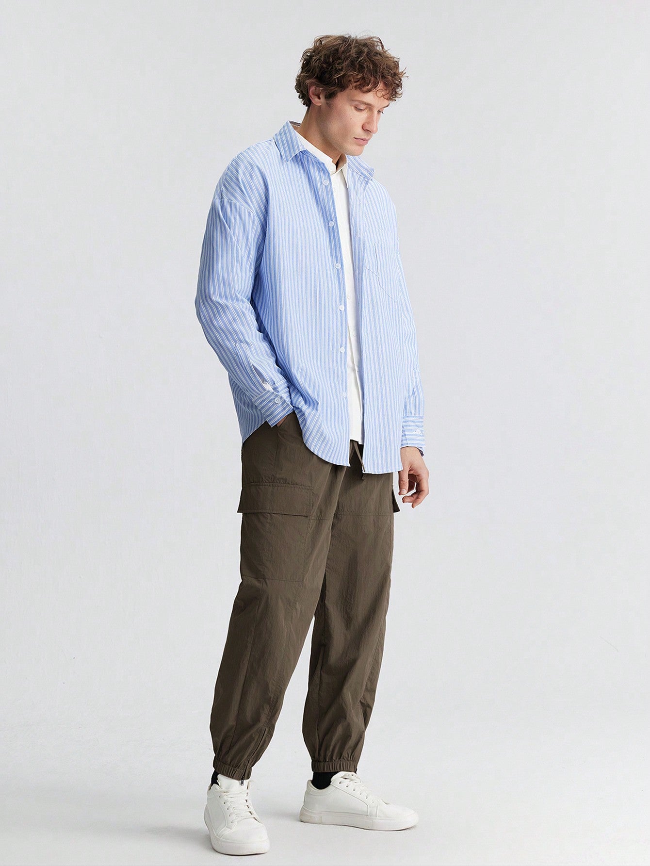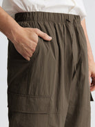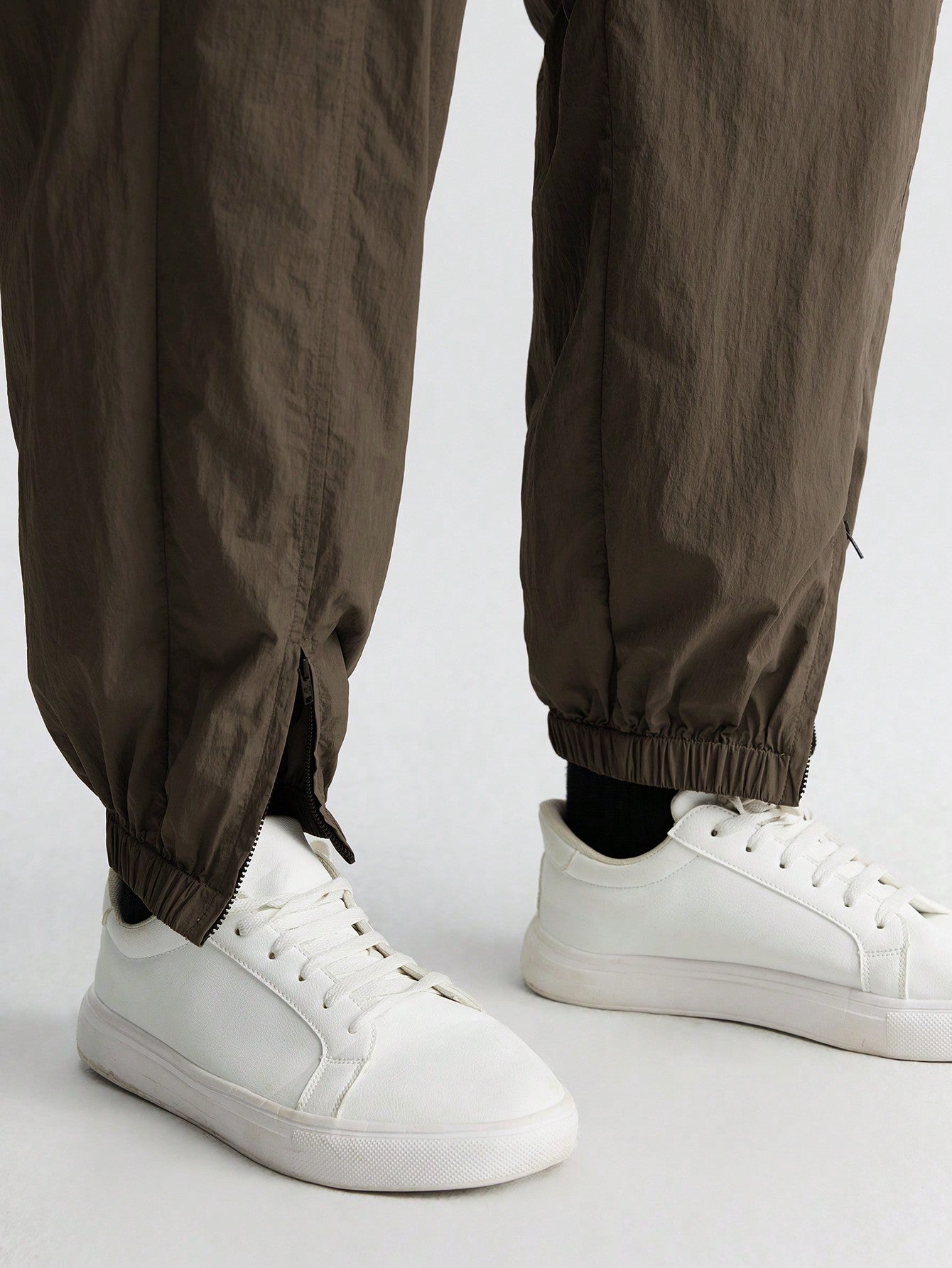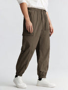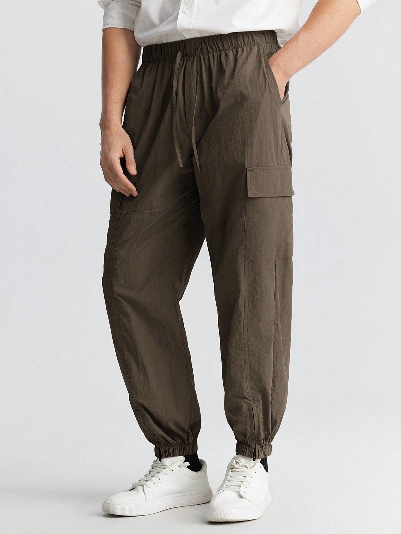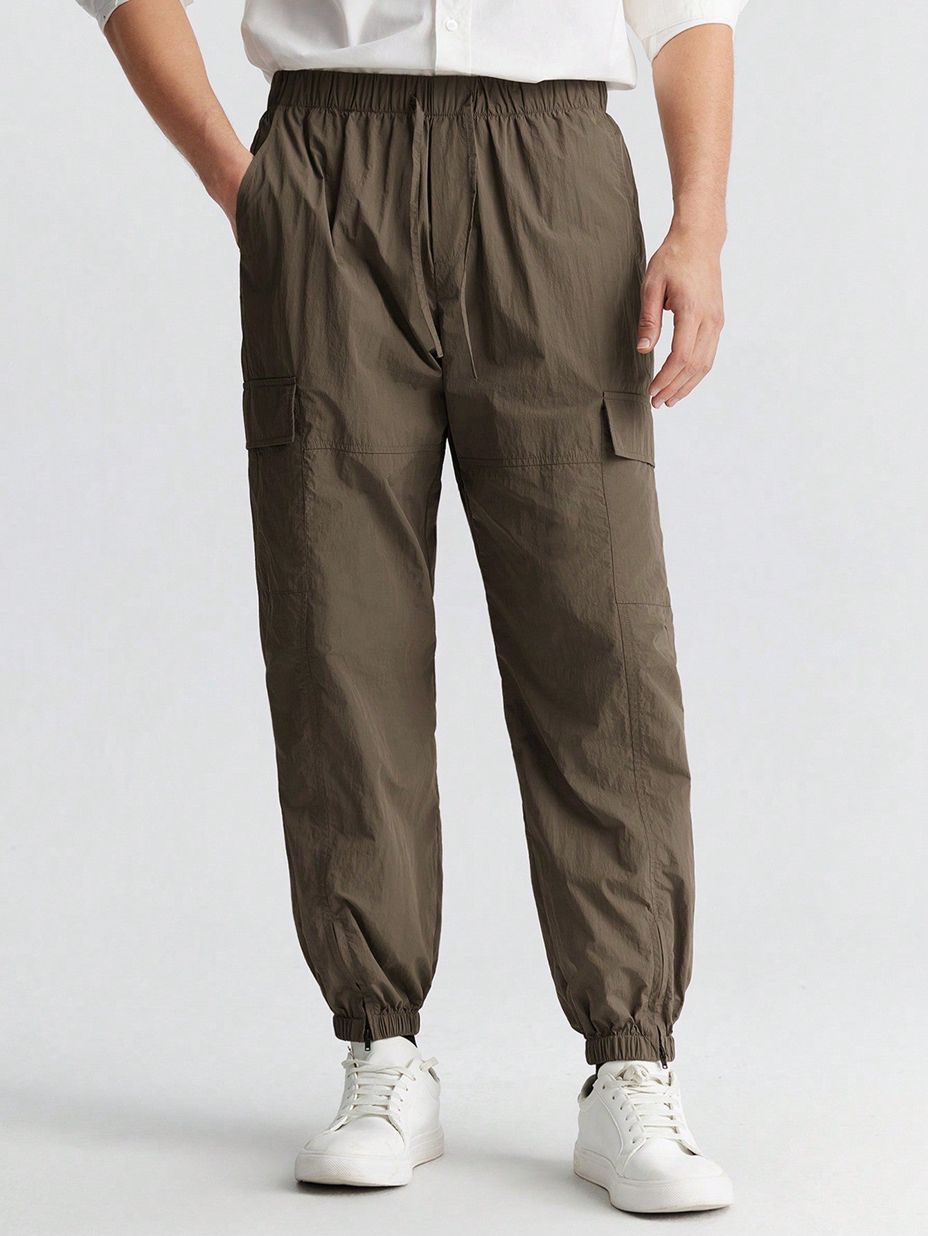 Maija Men's 2025 Spring Brown Solid Color Zipper Pocket Front Tie Elastic Waistband Drawstring Casual Pants