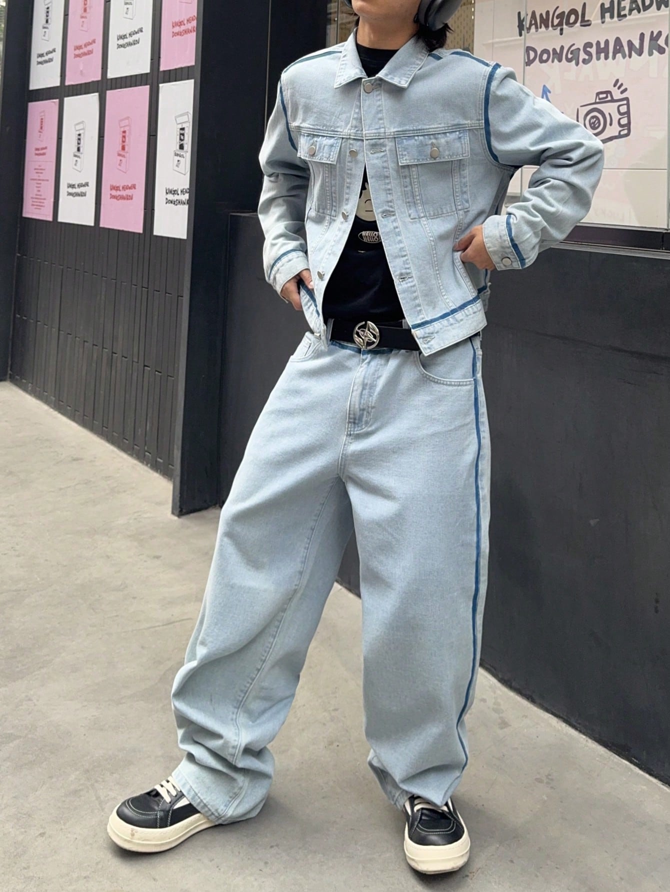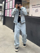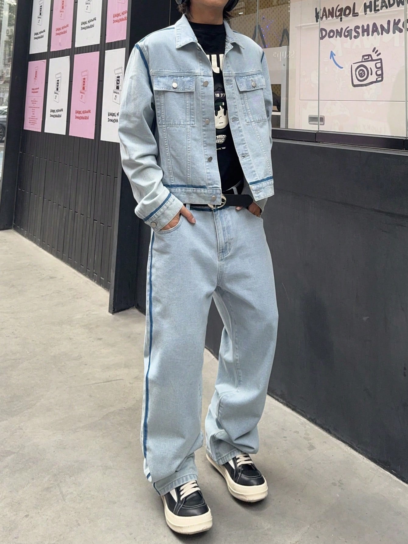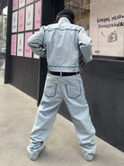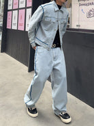 Manfinity Hypemode Men's Casual Distressed Contrast Trim Denim Jacket And Pants Suit Set