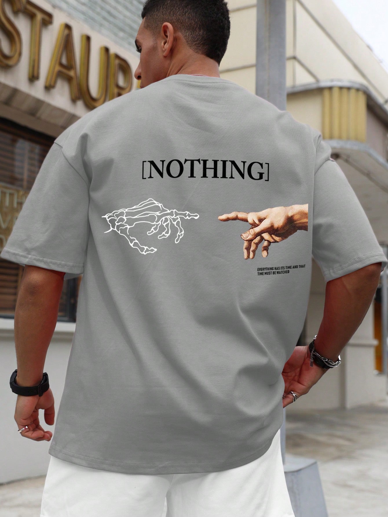 Manfinity LEGND Men Summer Short-Sleeved Casual T-Shirt With Letter And Gesture Print Round Neck