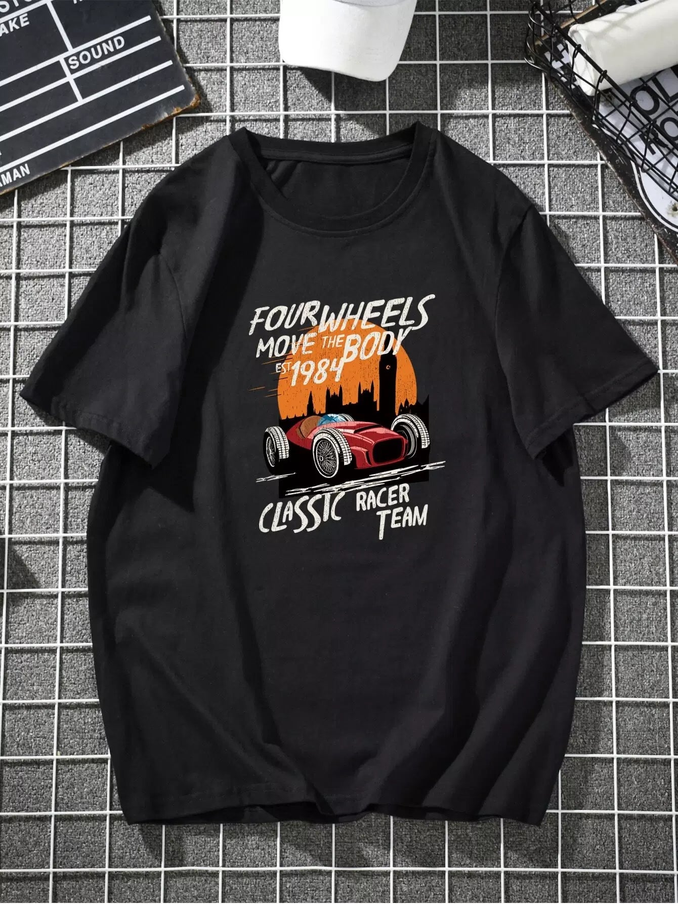 Men Car And Letter Graphic Tee