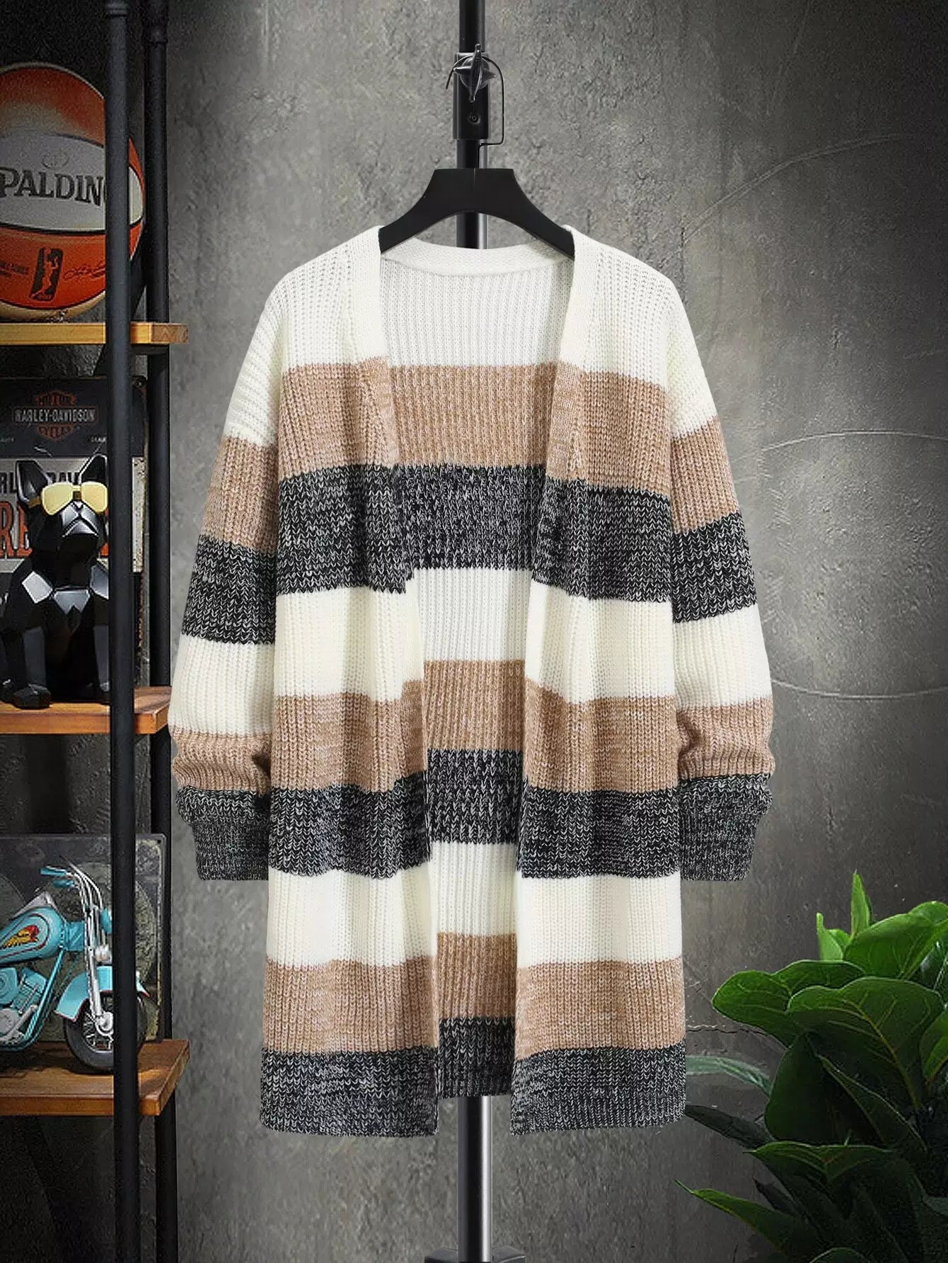 Men Color Block Drop Shoulder Open Front Cardigan