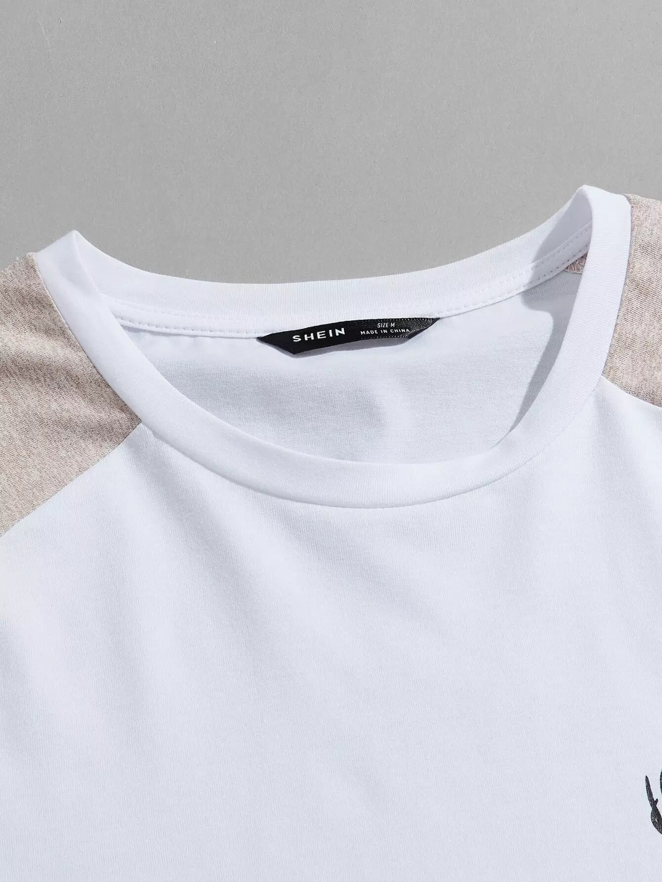 Men Colorblock Raglan Sleeve Graphic Print Tee