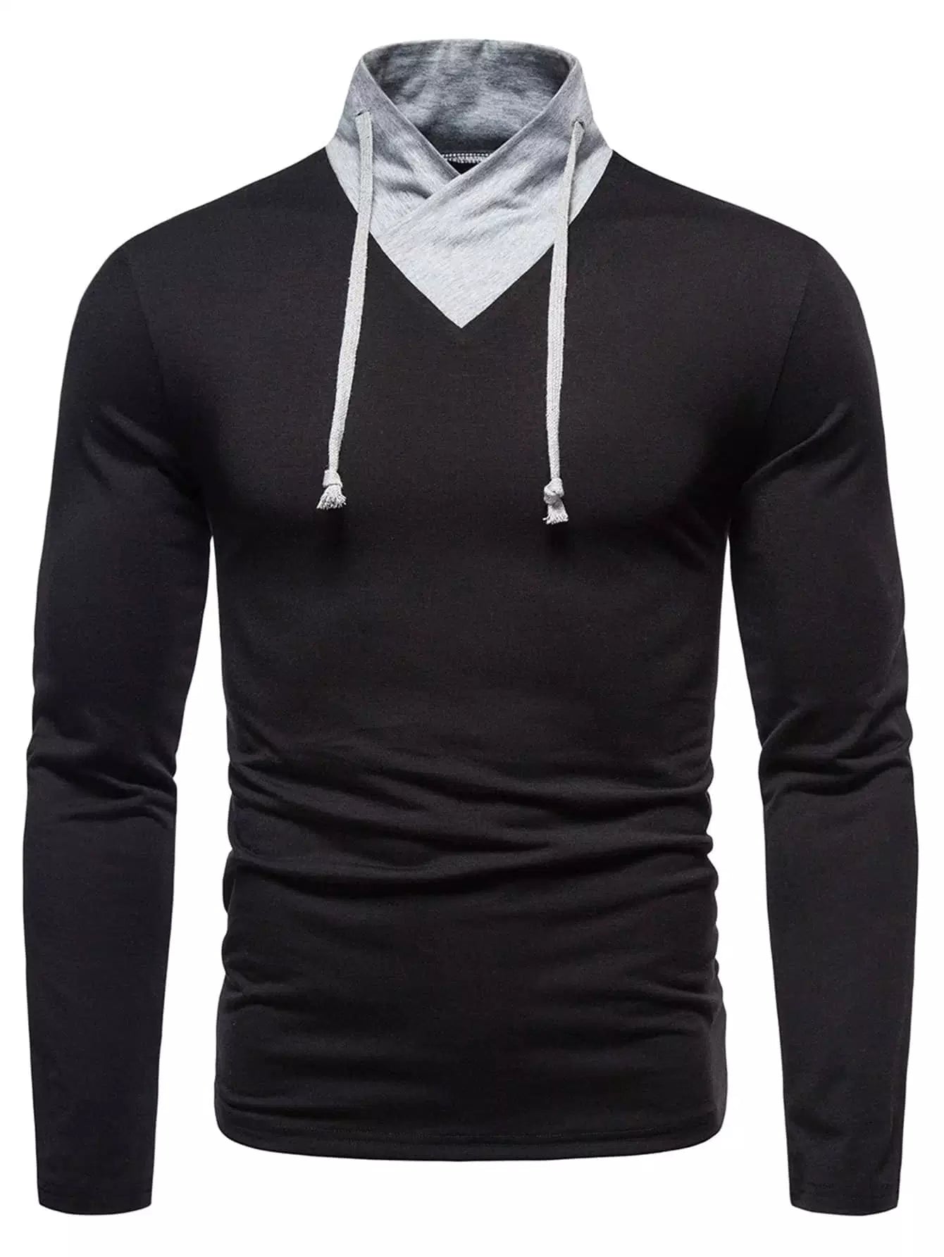 Men Contrast Collar Drawstring Tee