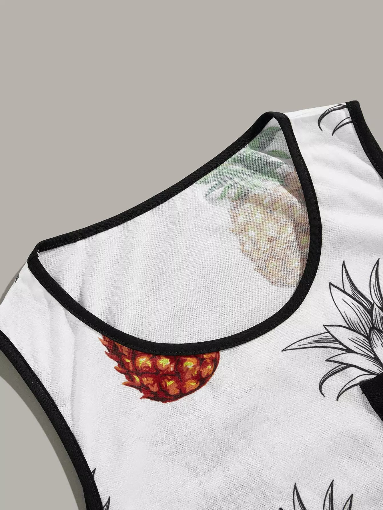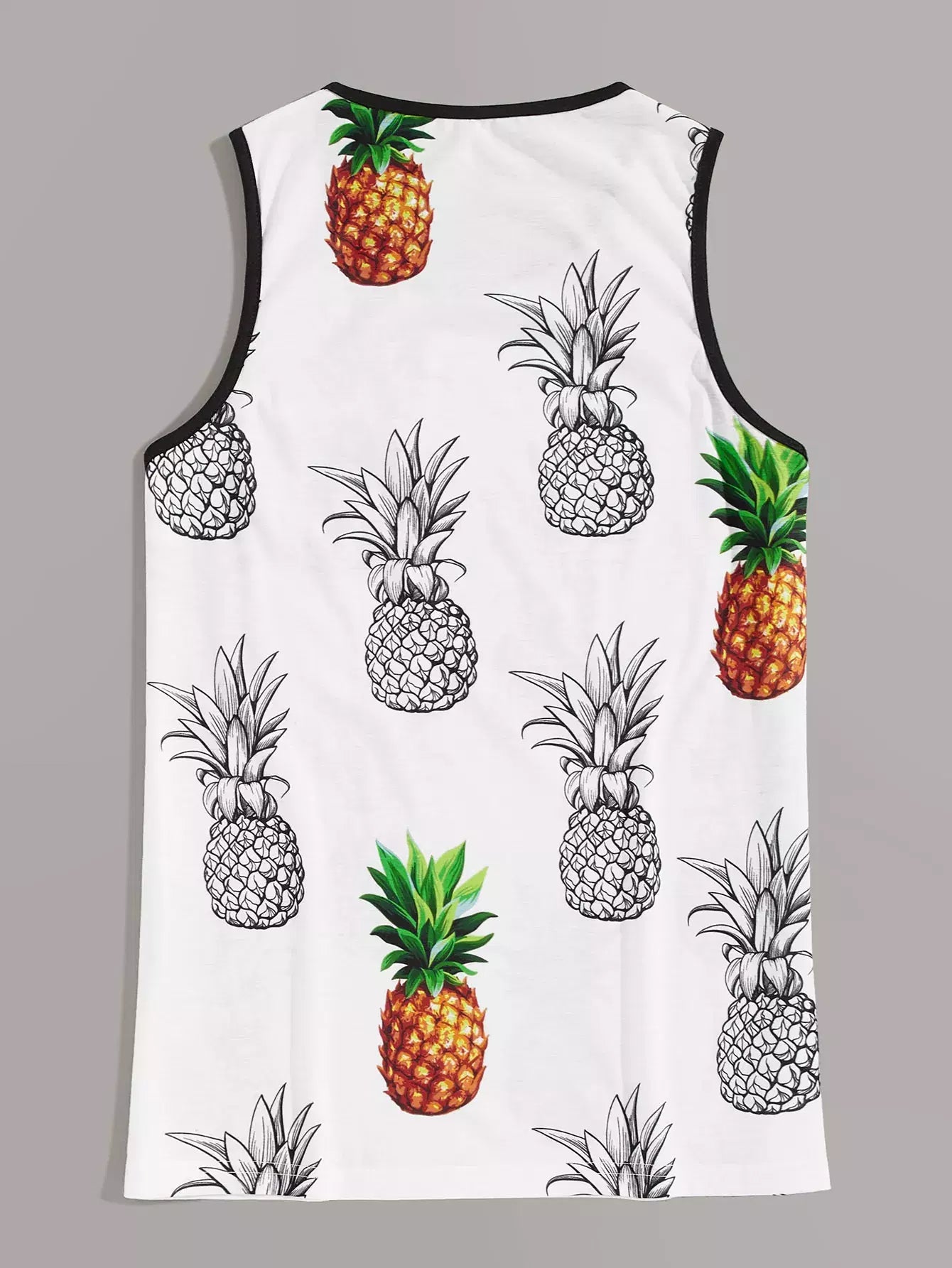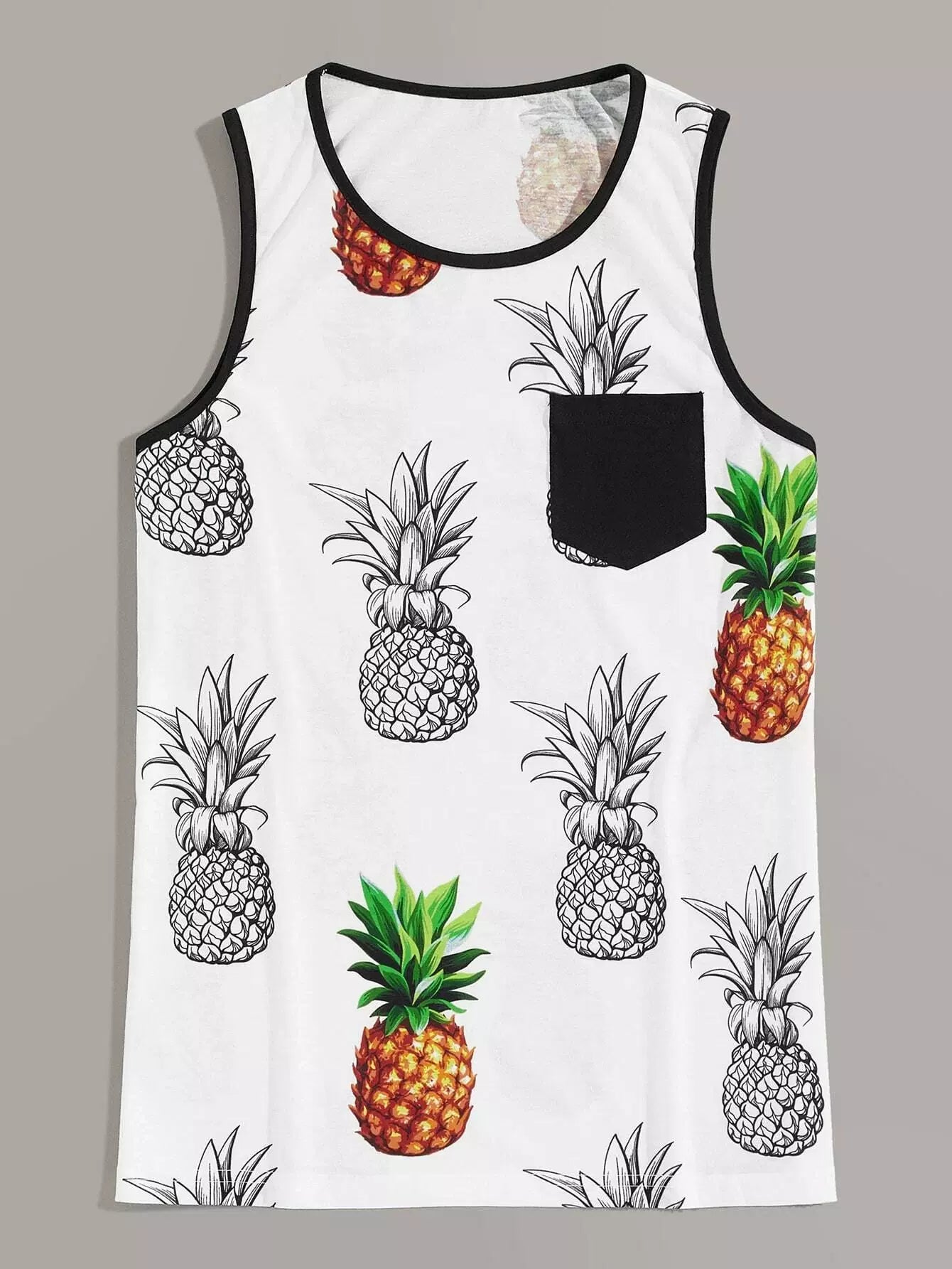 Men - Men Contrast Pocket Pineapple Print Tank Top