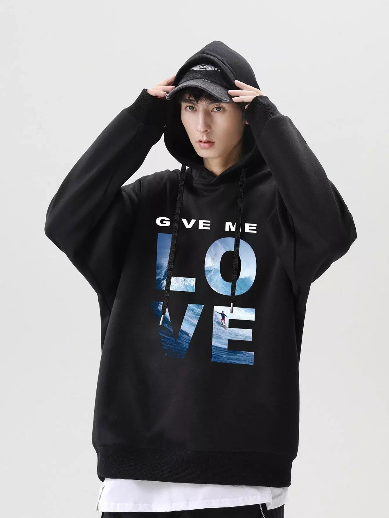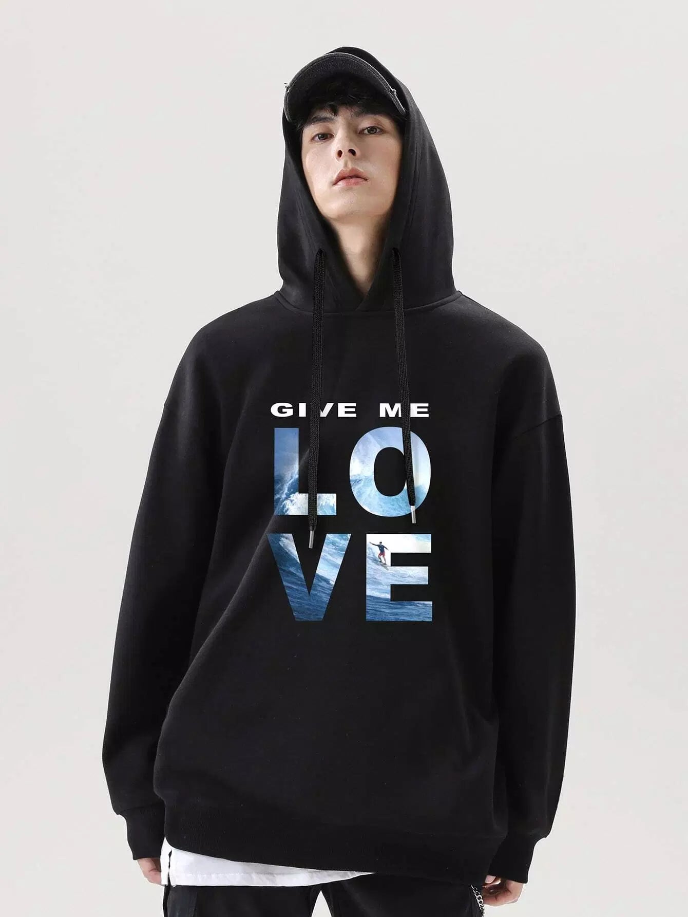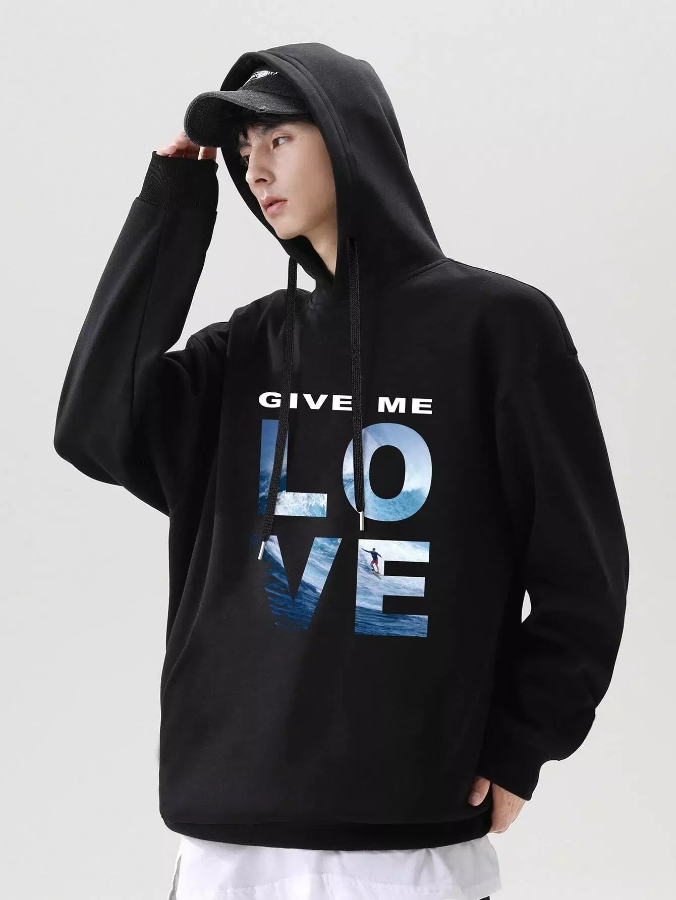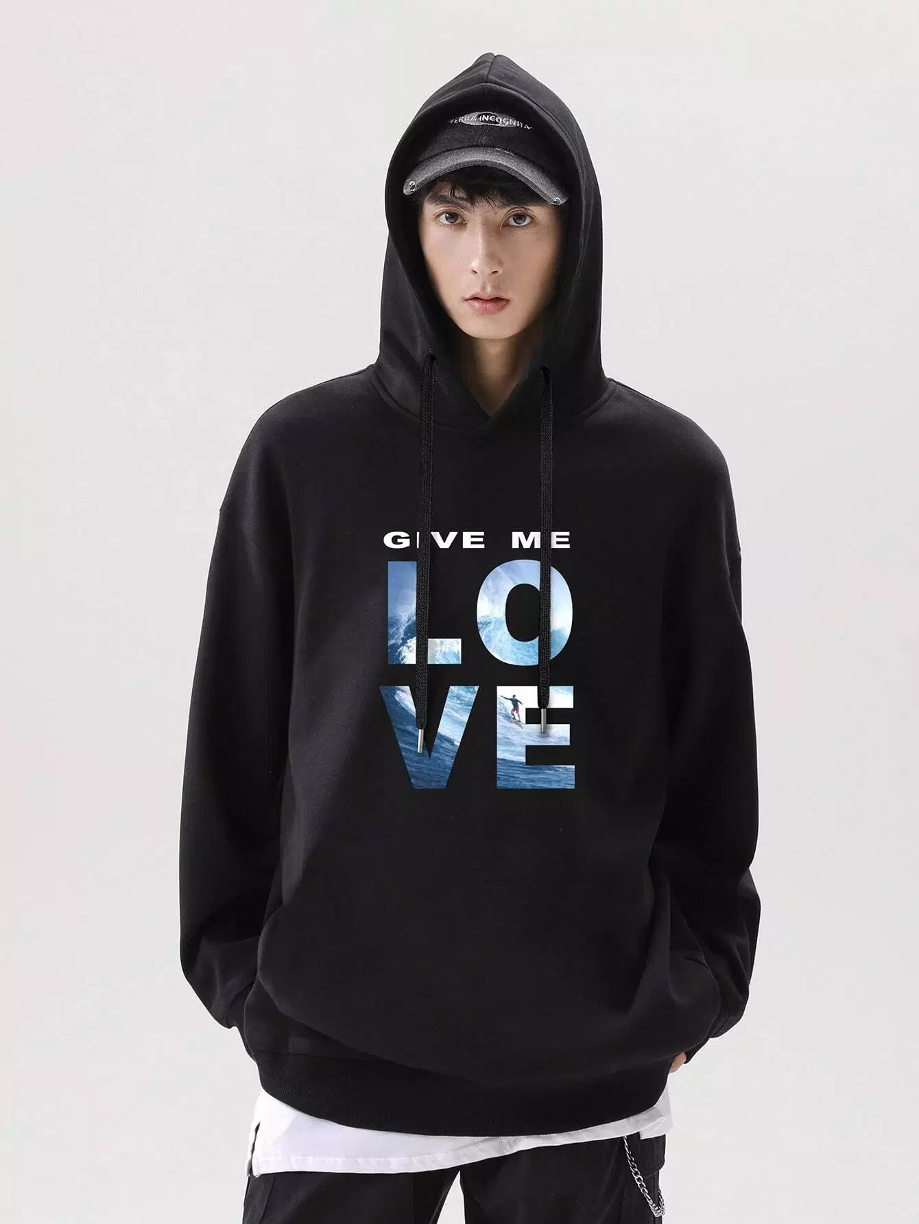 Men Drop Shoulder Letter Pattern Drawstring Hoodie