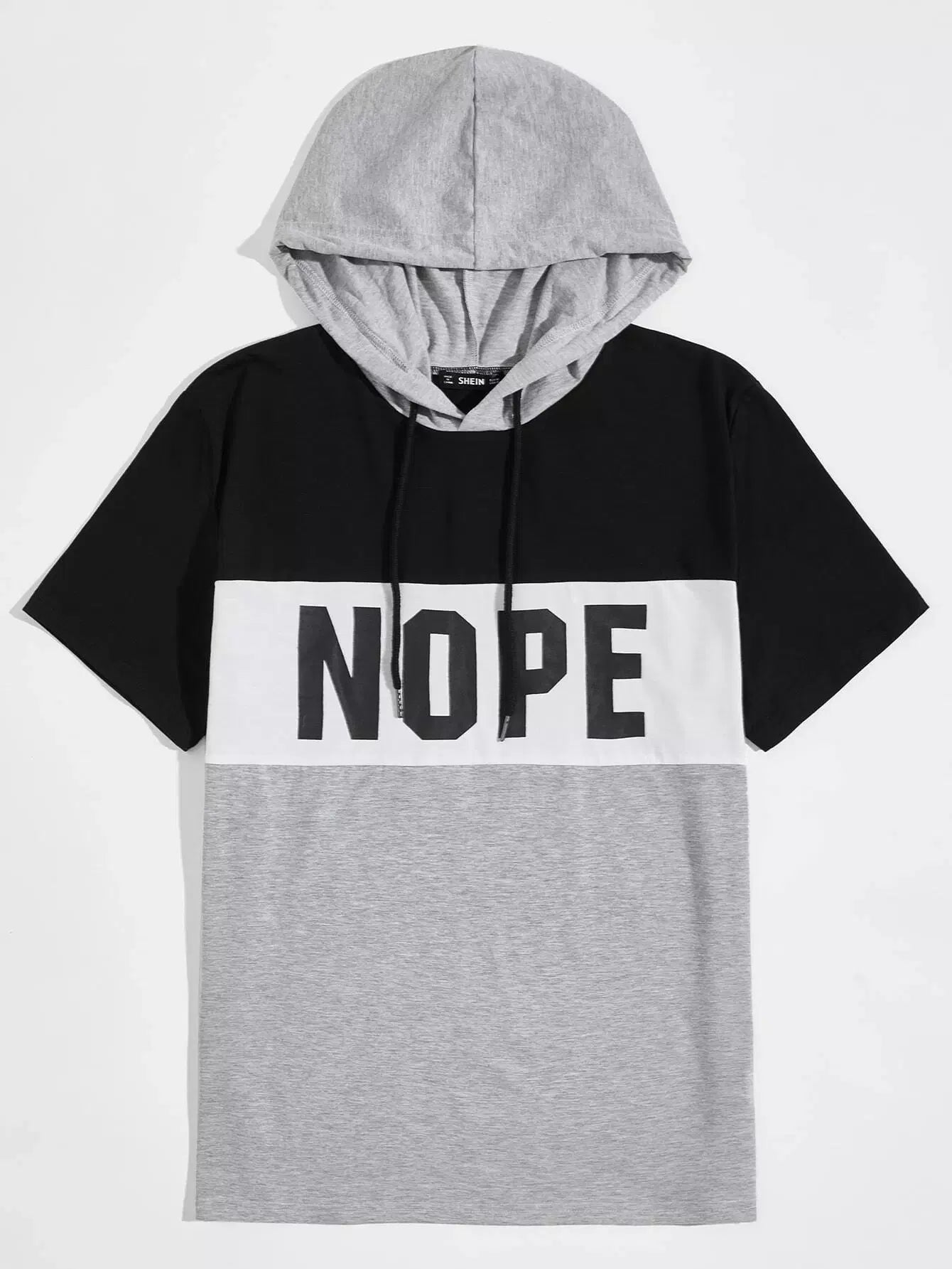 Men Letter Graphic Colorblock Hooded Tee