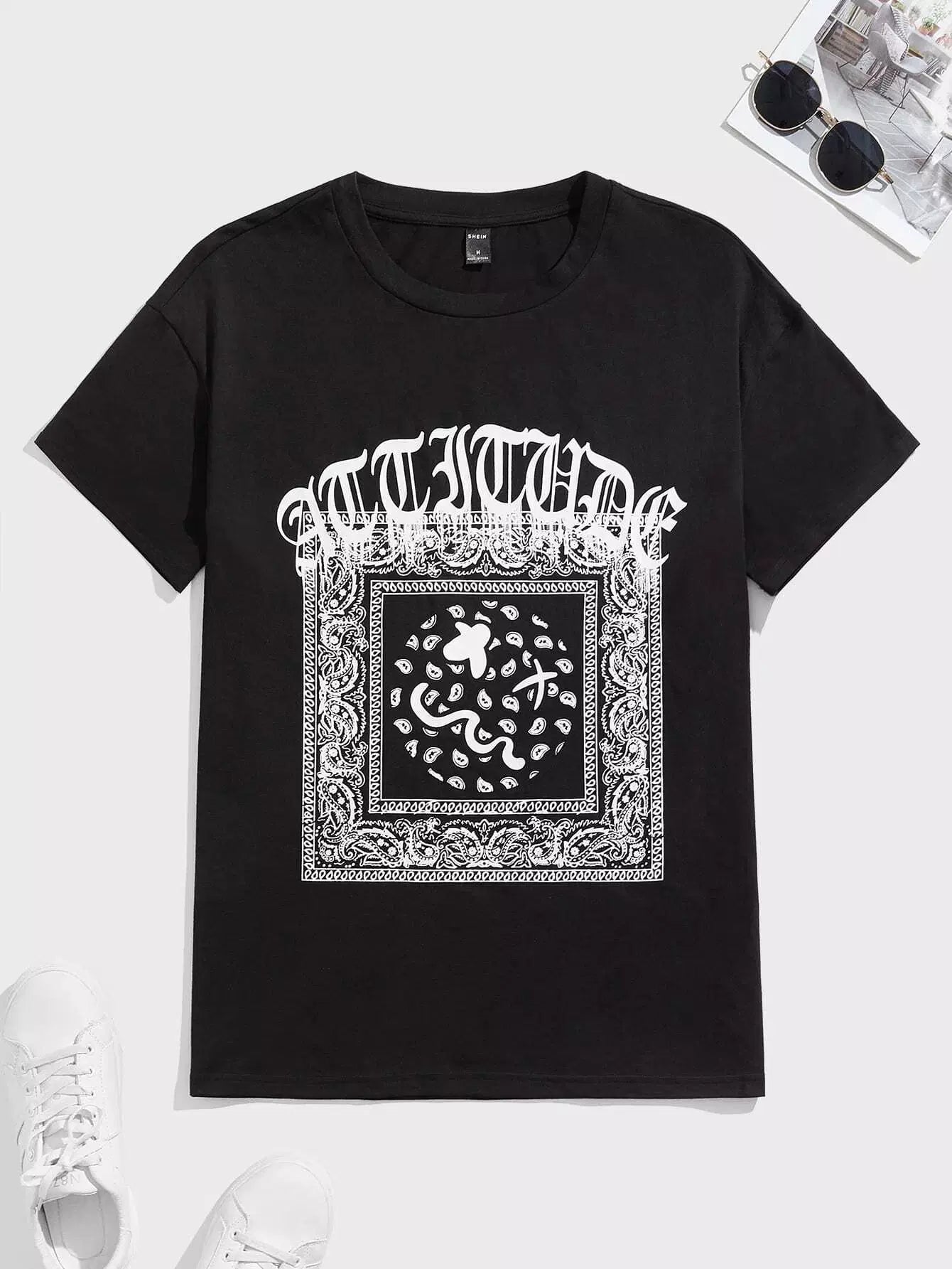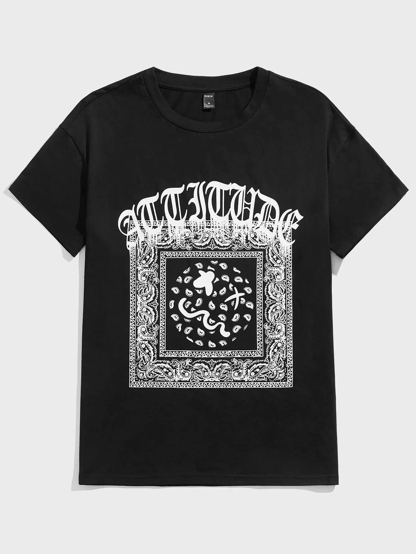 Men Letter & Paisley Print Tee