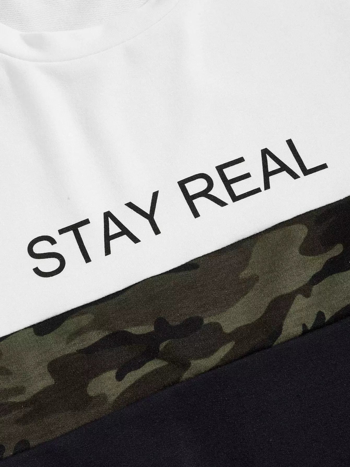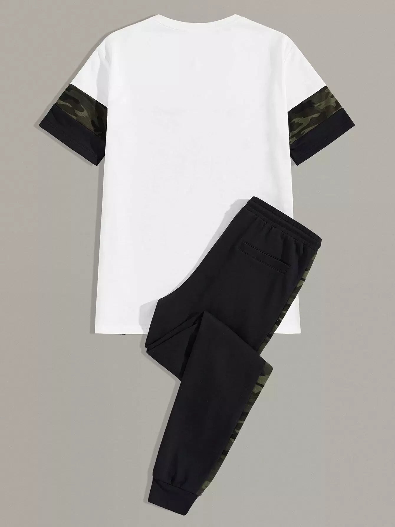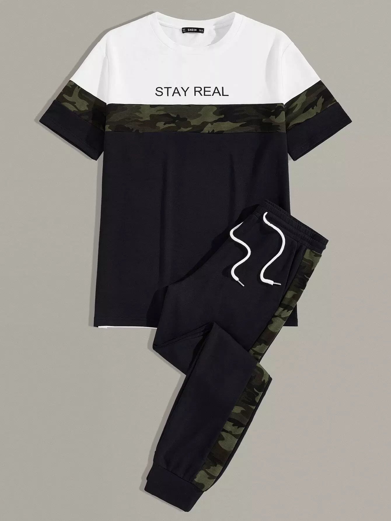 Men - Men Slogan Graphic Color Block Tee & Sweatpants Set