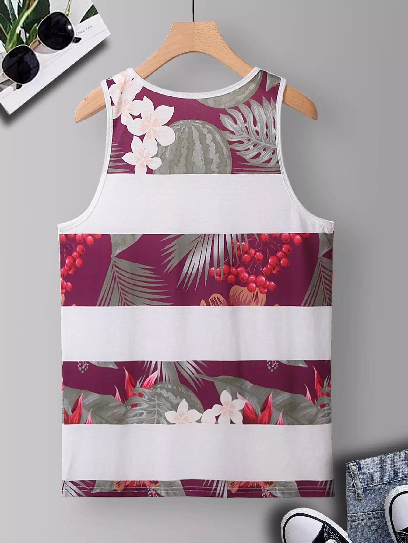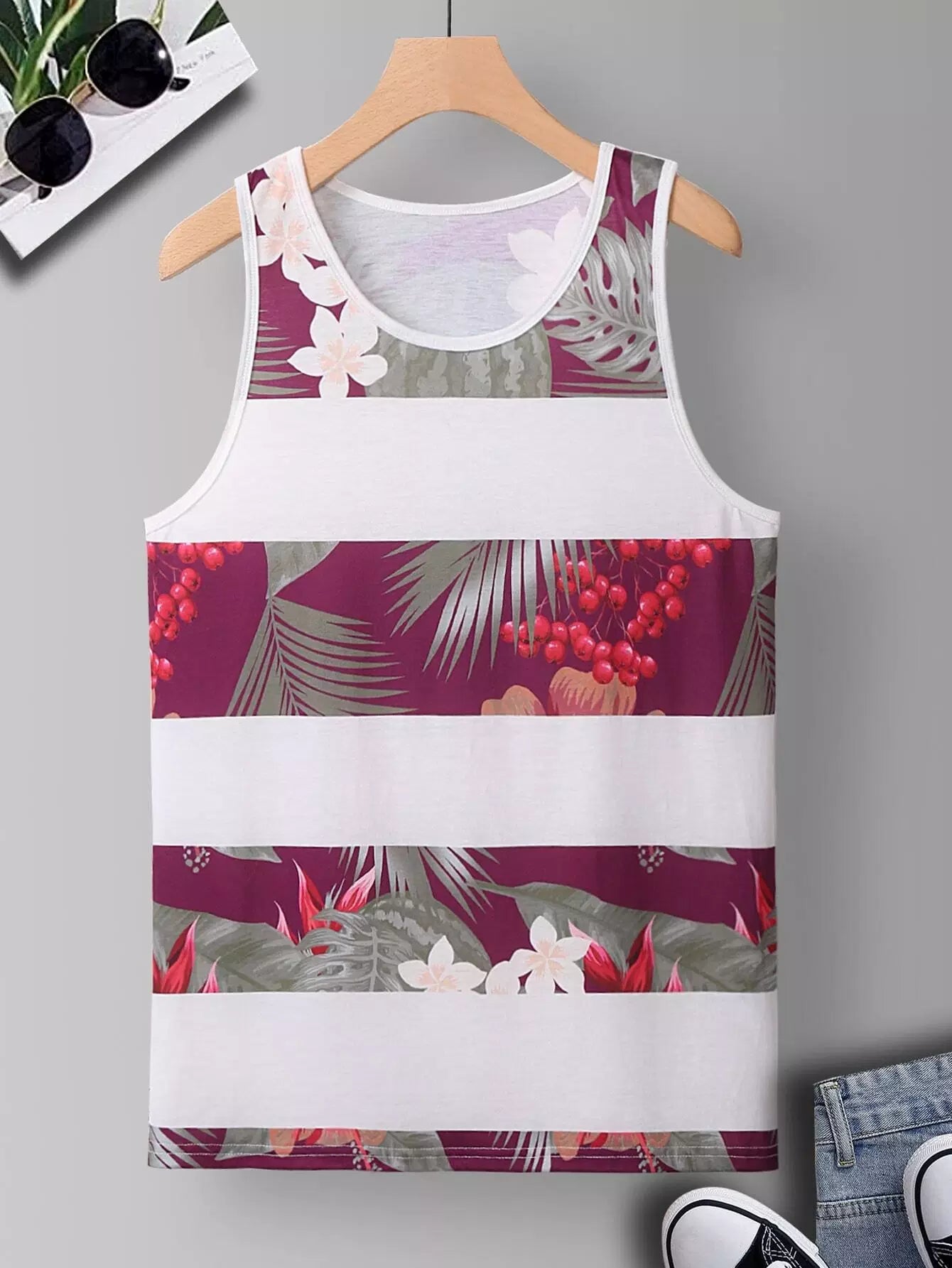 Men Tropical Print Tank Top
