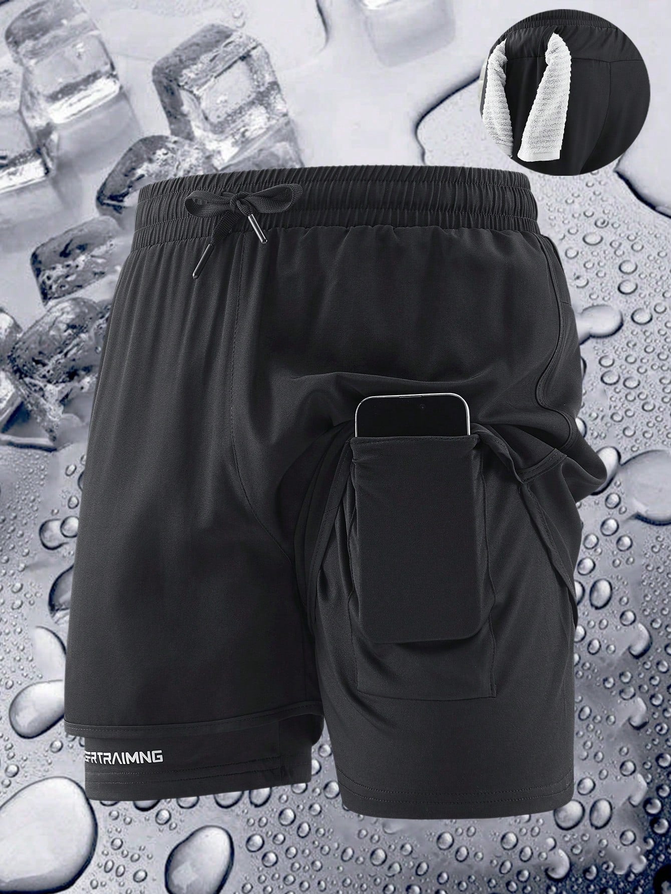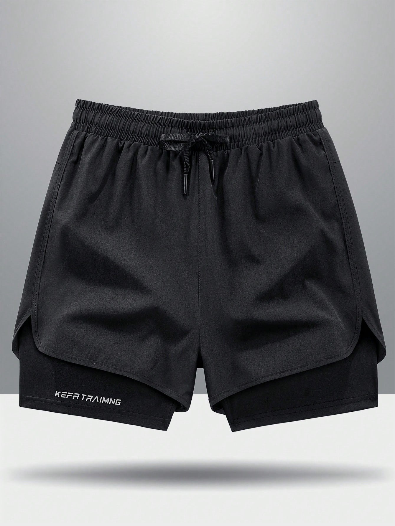 Men's Fashion Printed & Solid Quick Dry Shorts - 2 In 1 Layered, Breathable & Stretchy, Suitable For