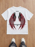 Men's Minimalist Angel Wing Printed Round Neck Short Sleeve White T-Shirt, Summer