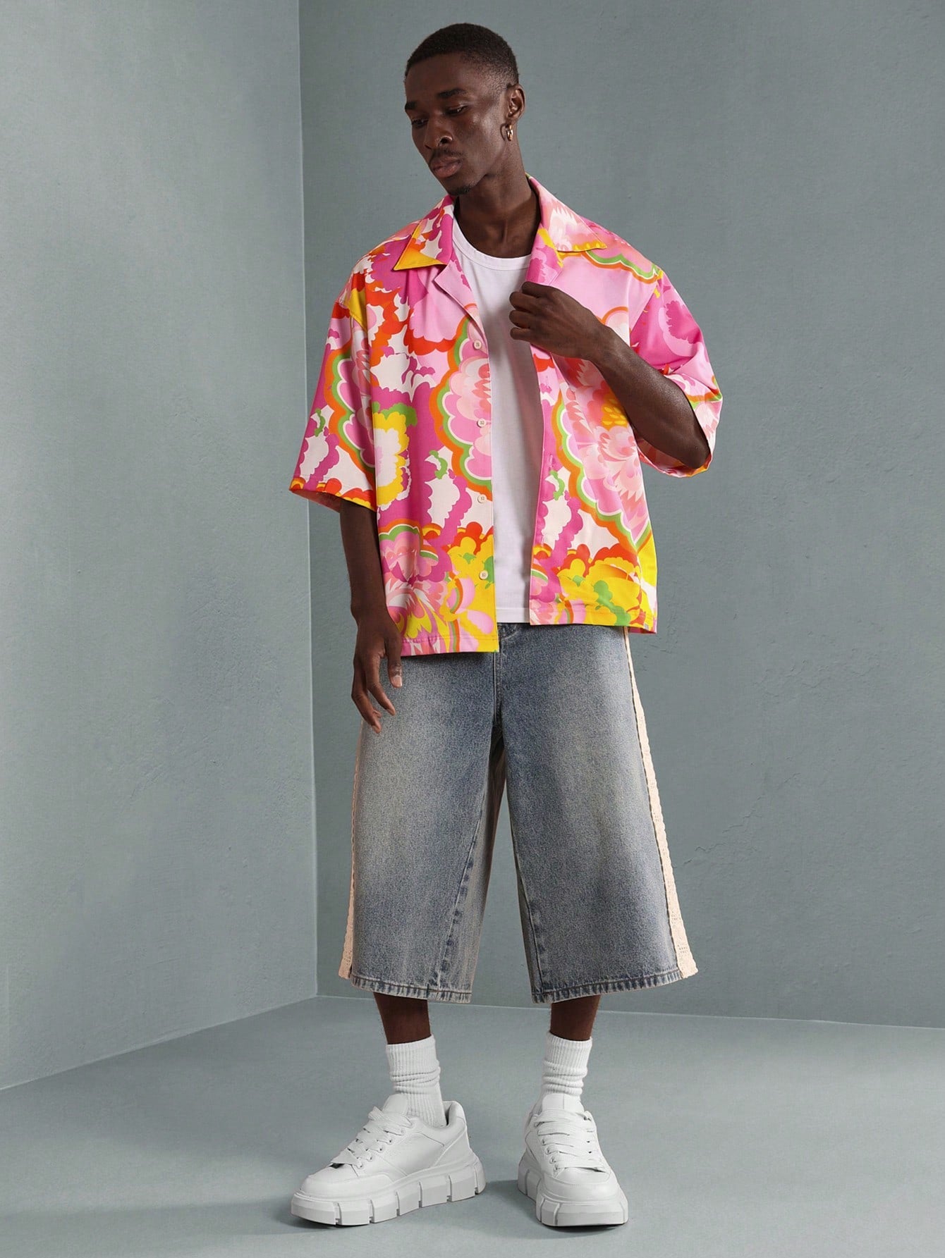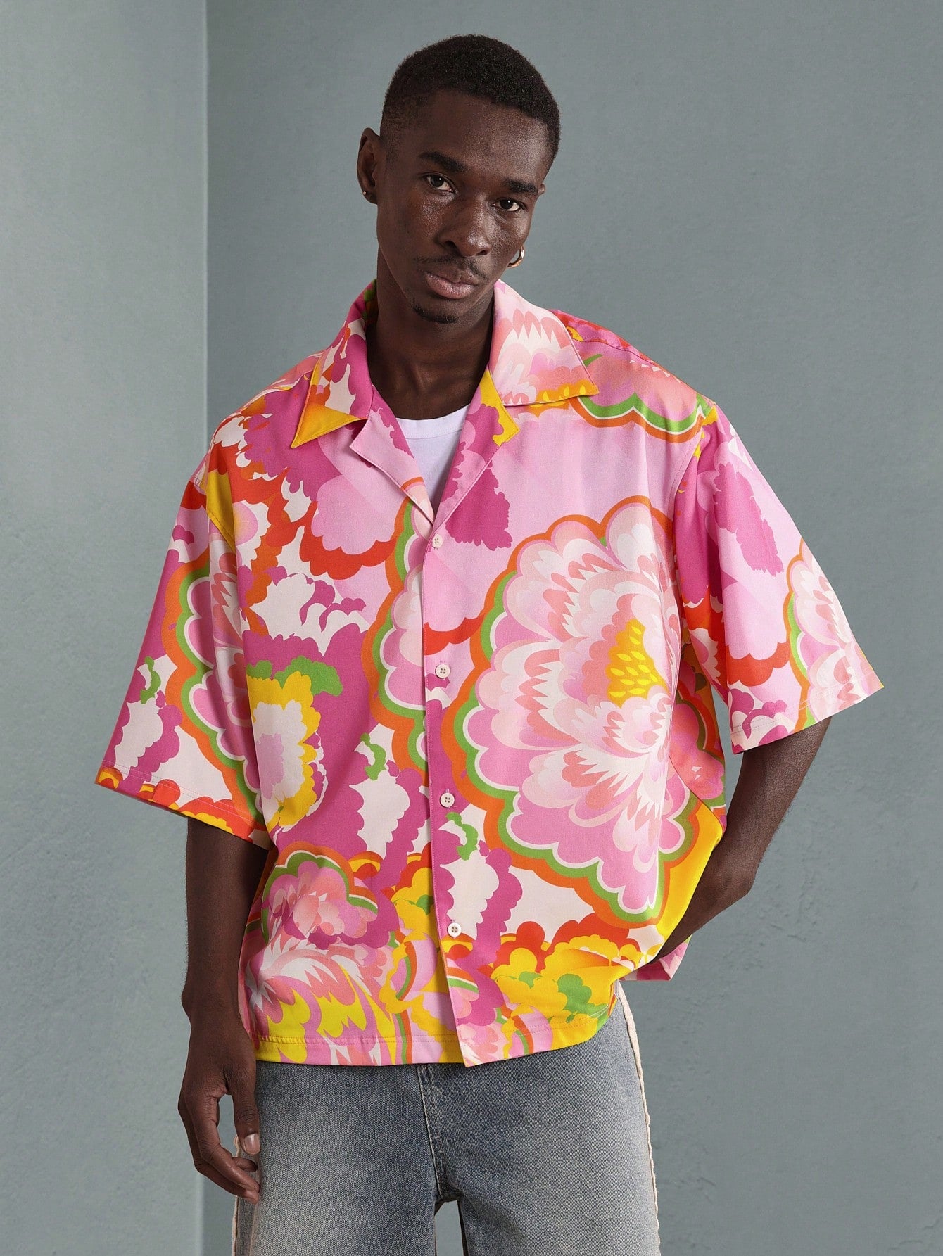 men SUMWON Retro Floral Resort Shirt Boxy Fit Hawaiian Style Button Down Summer Beach Vacation Camp Shirt Festival Short Sleeve Relaxed Holiday Party Casual