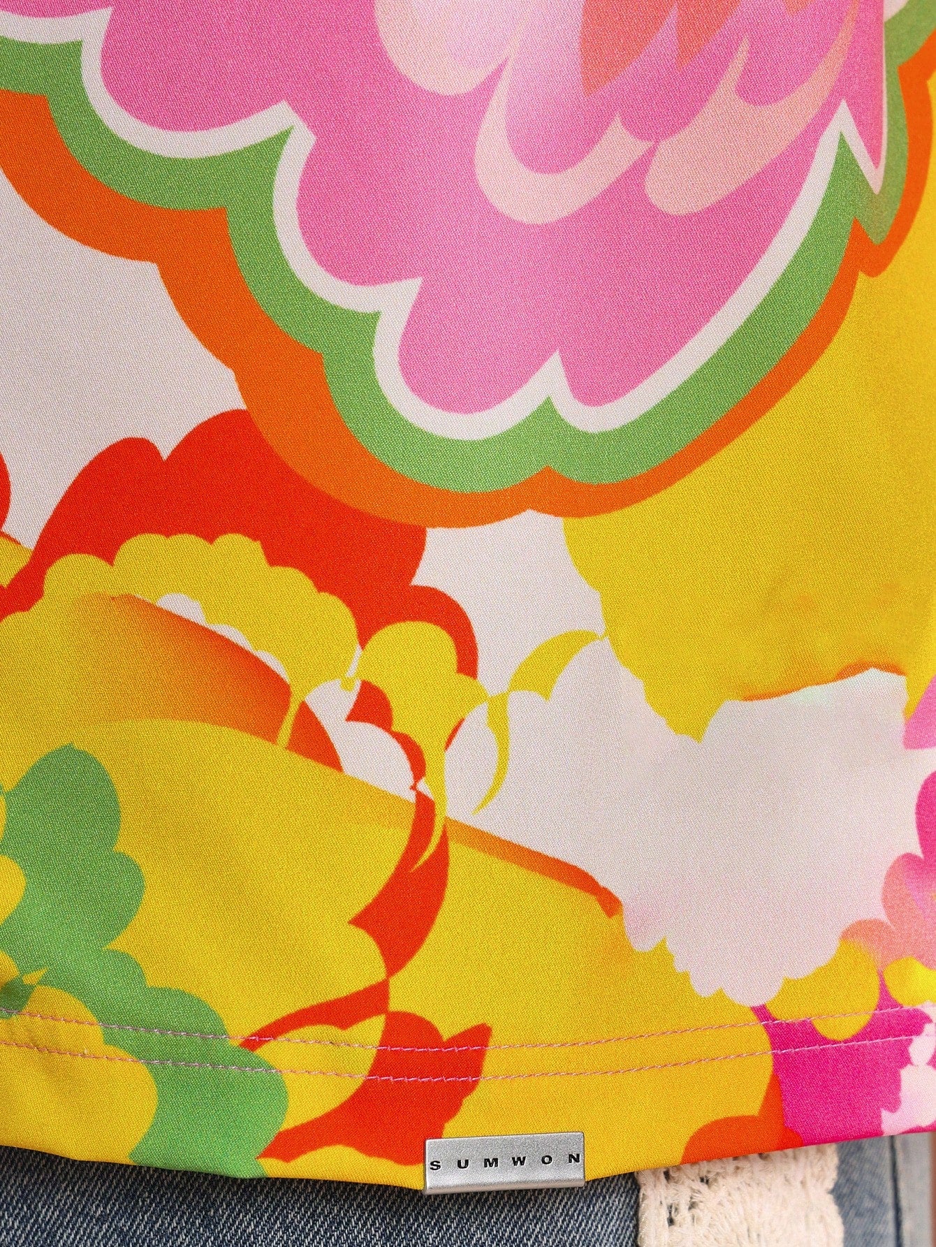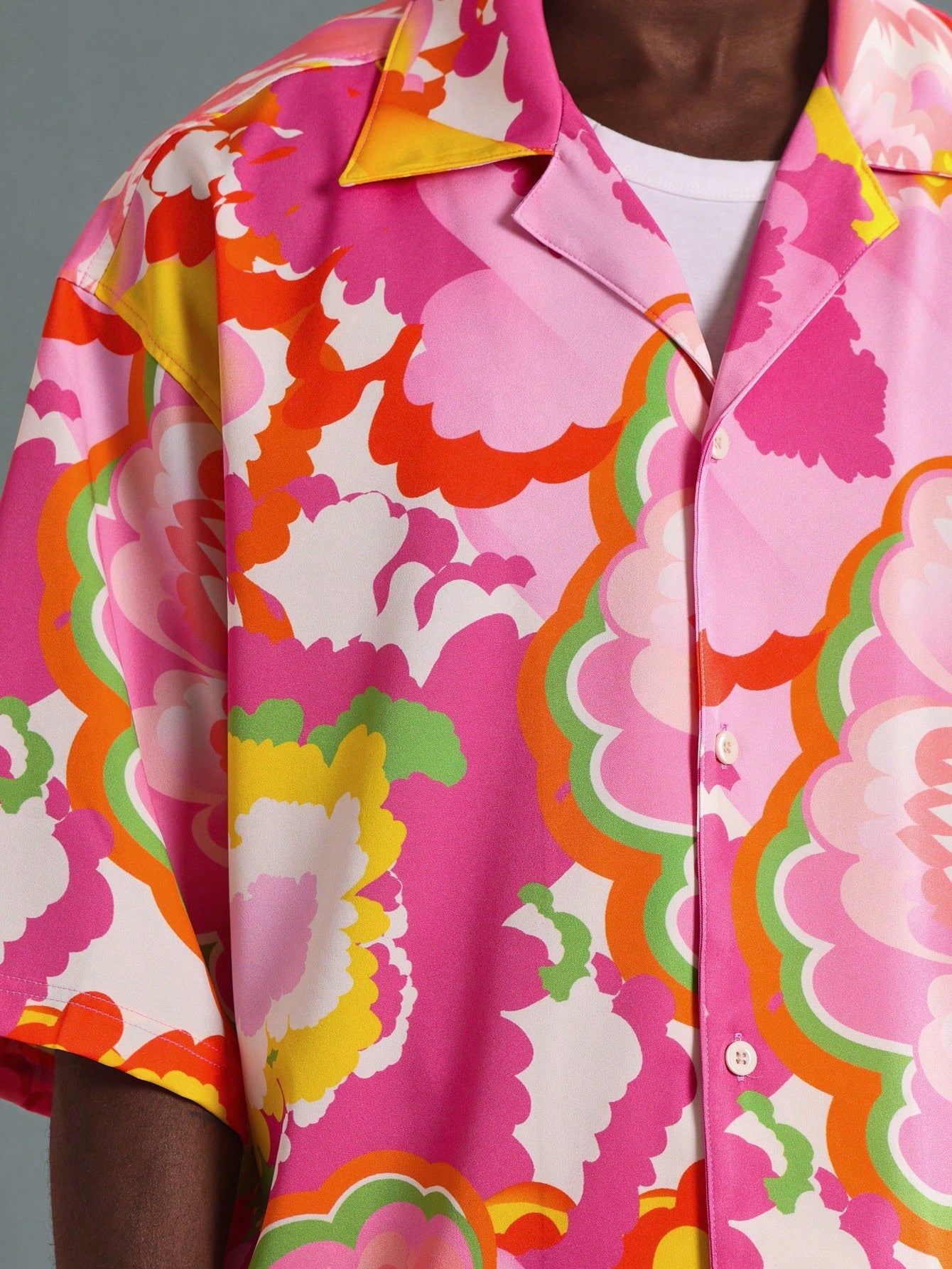 SUMWON Retro Floral Resort Shirt Boxy Fit Hawaiian Style Button Down Summer Beach Vacation Camp Shirt Festival Short Sleeve Relaxed Holiday Party Casual