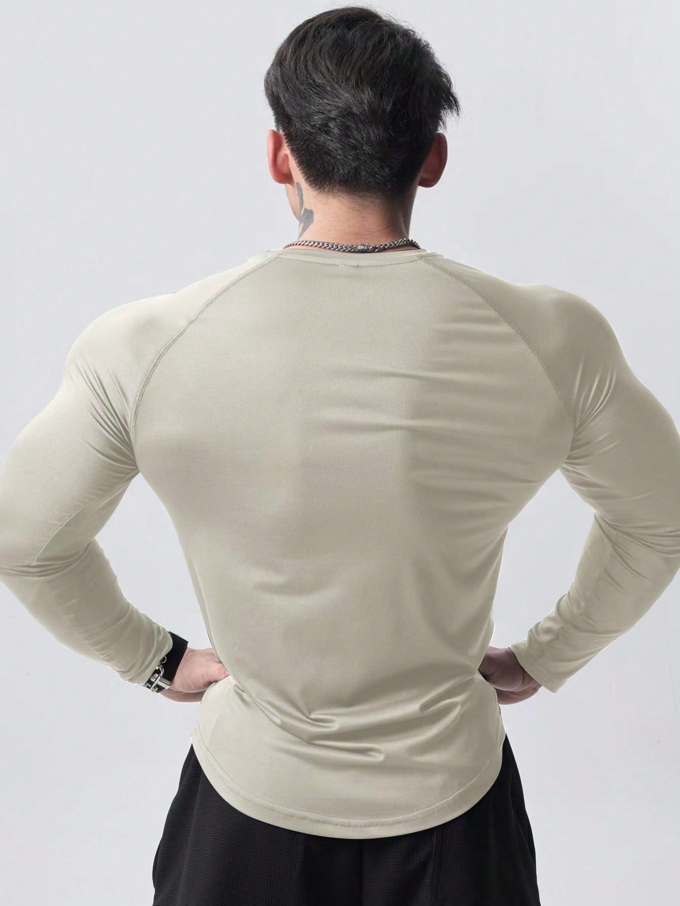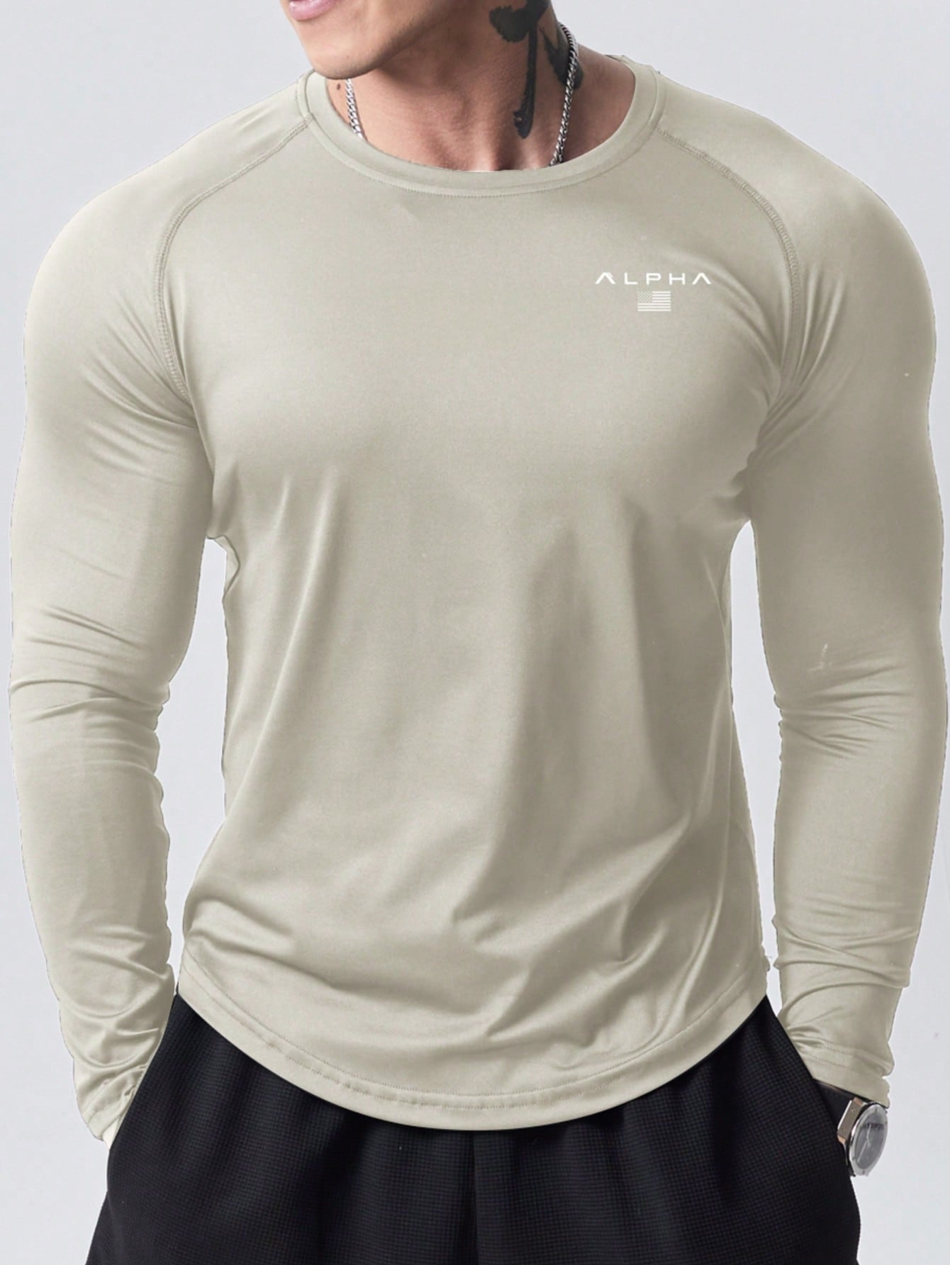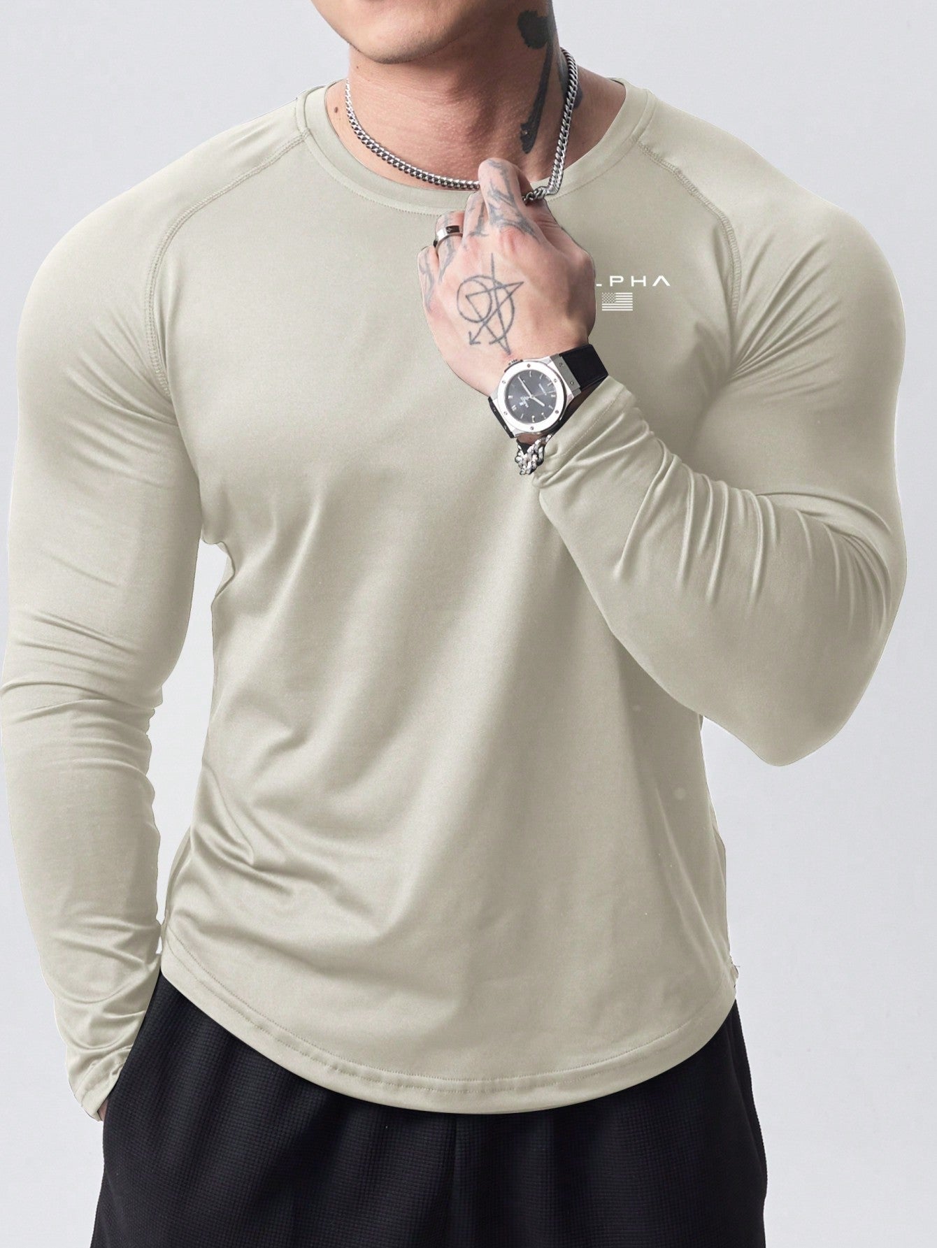 Manfinity Fitness Men's Letter Print Raglan Sleeve Sports T-Shirt Fitted Shirt Fall Crew Neck