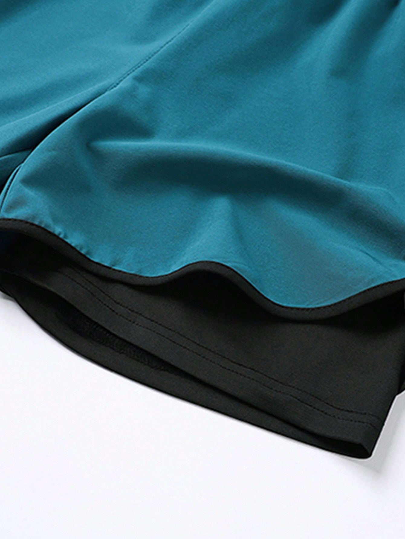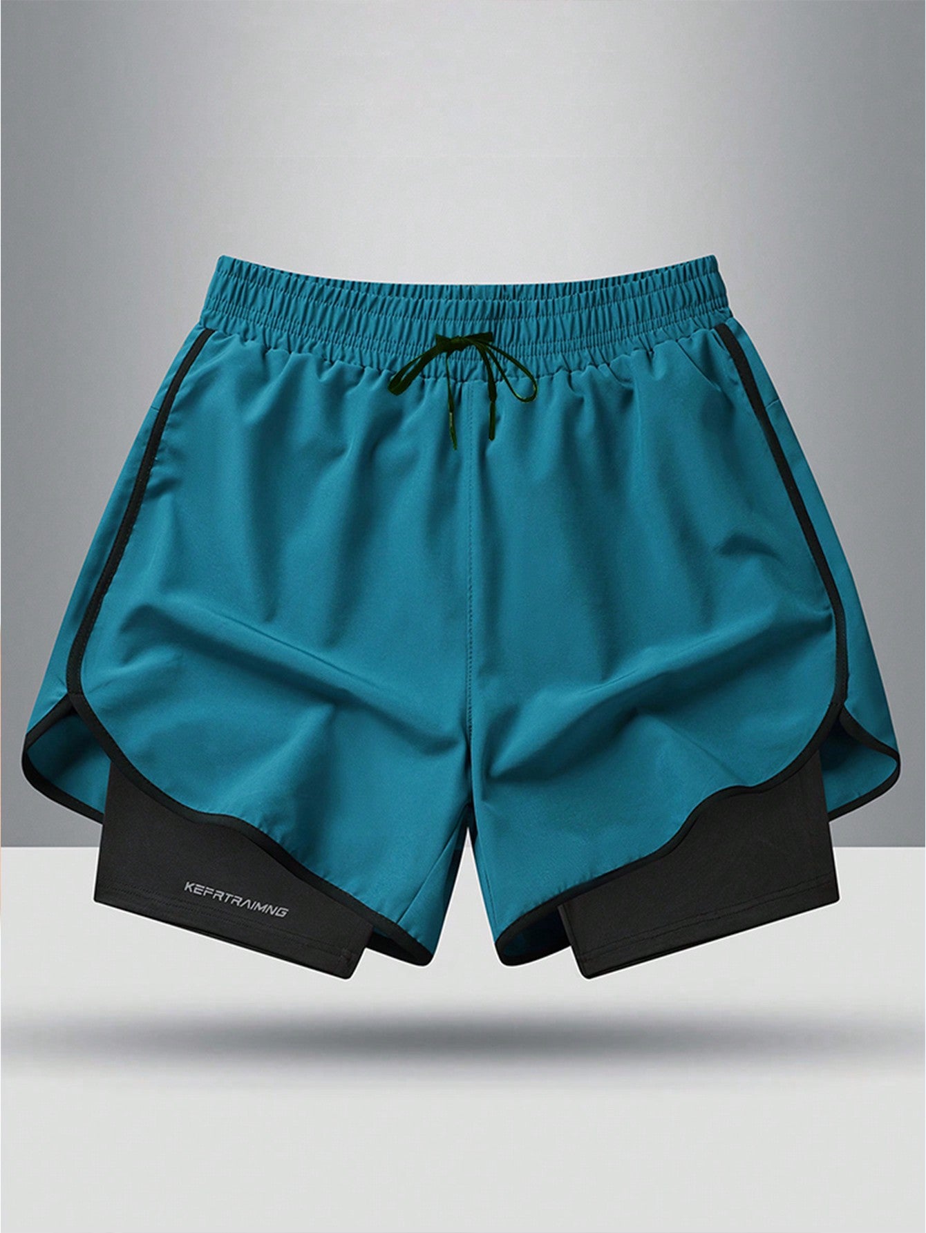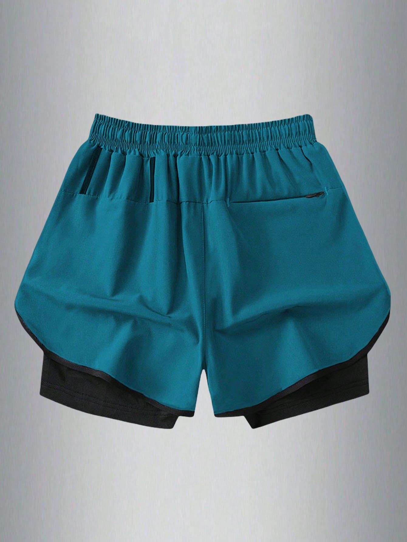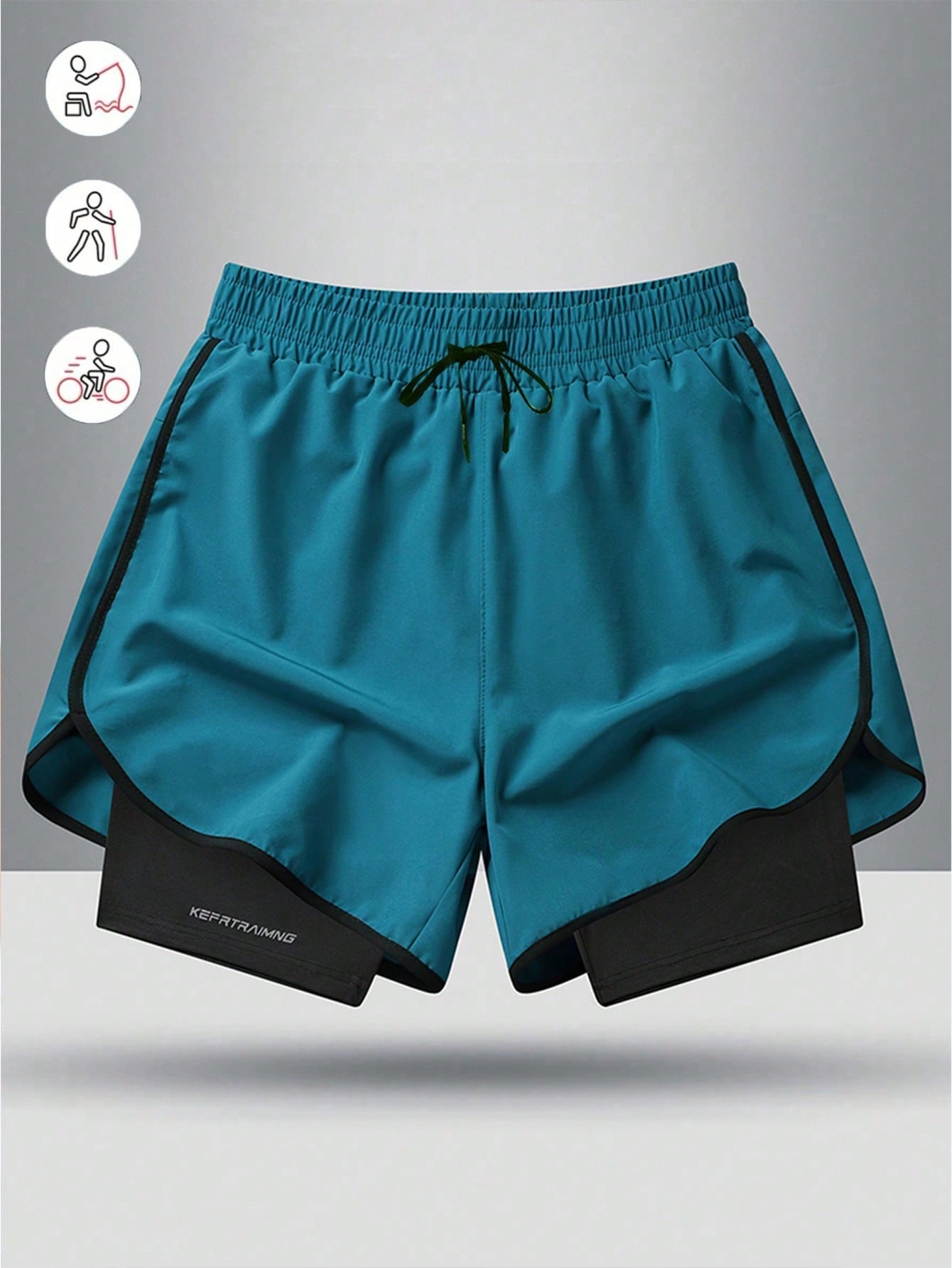 Men's Summer Drawstring Waist 2 In 1 Casual Sports Shorts, Suitable For Hiking, Cycling, Basketball,